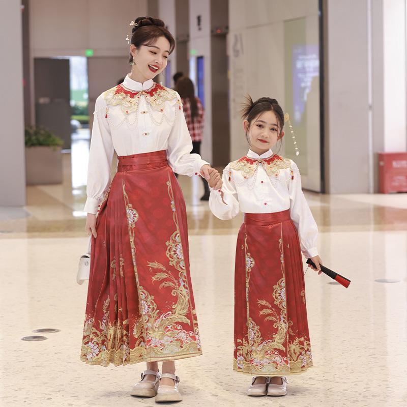 Traje chaleco falda para padres e hijos 2024 nuevo Hanfu infantil ropa de mujer falda hombro nube traje Ming Tang primavera y otoño