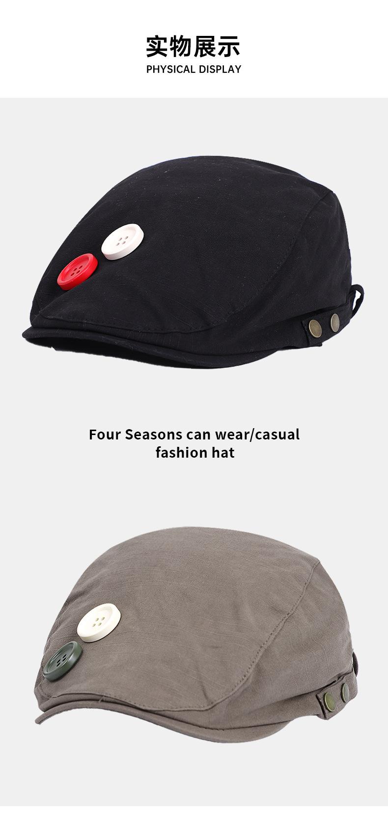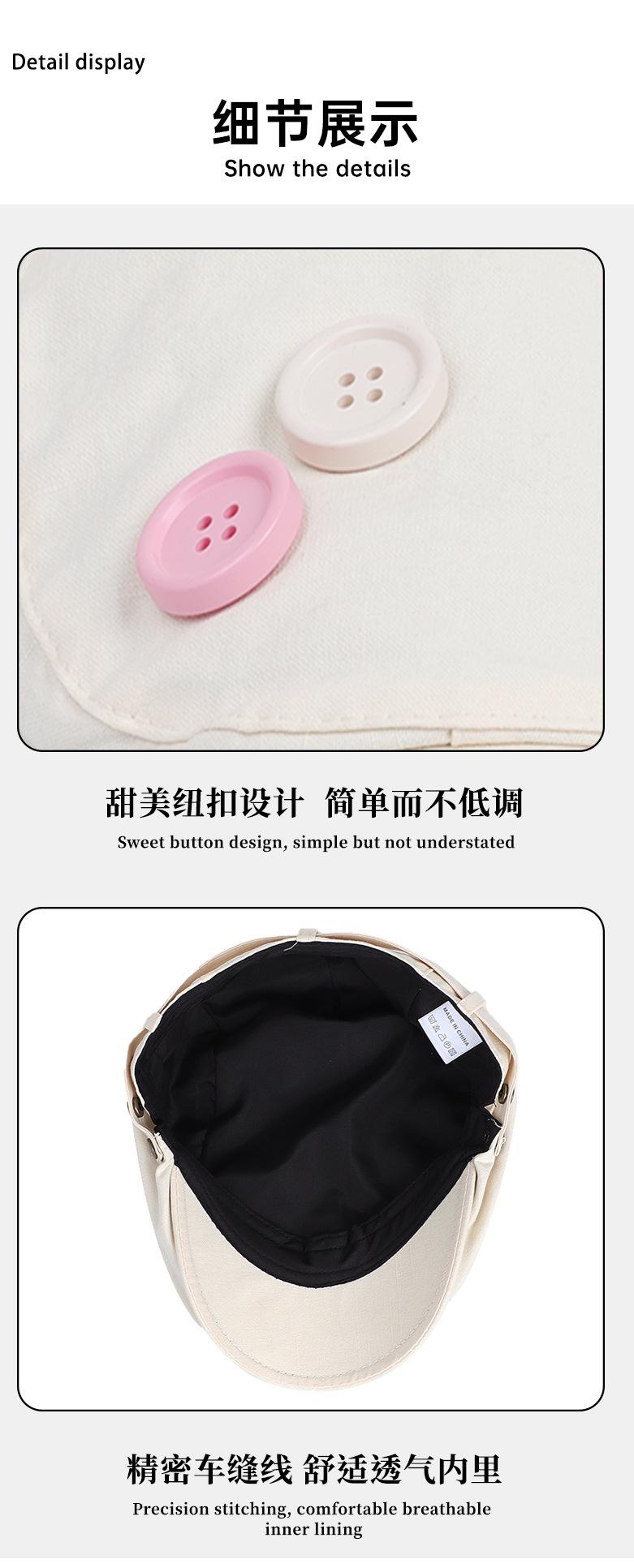 Boina con botones estilo coreano retro de estilo japonés a la moda de primavera y otoño para mujer, sombrero de pintor a la moda de todo tipo de combinaciones.