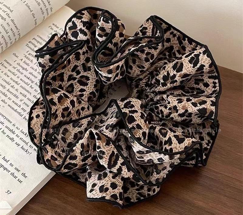 Blogger Leopardo Intestino Grueso Anillo para el Cabello Flor para el Cabello de Alta Gama Estilo Occidental Cuerda Grande para el Cabello Cuerda para Atar Cola de Caballo