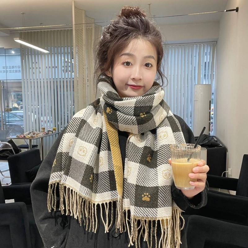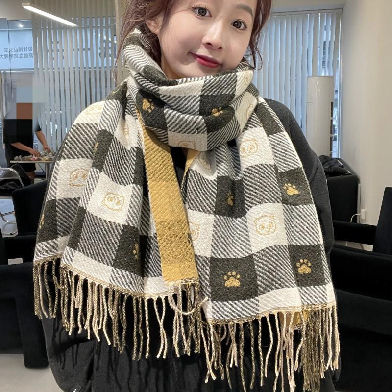 Bufanda de cachemira para mujer, otoño e invierno, nueva, a cuadros, a la moda, combina con todo, de doble cara, gruesa, cálida y chal para parejas.