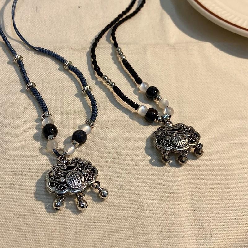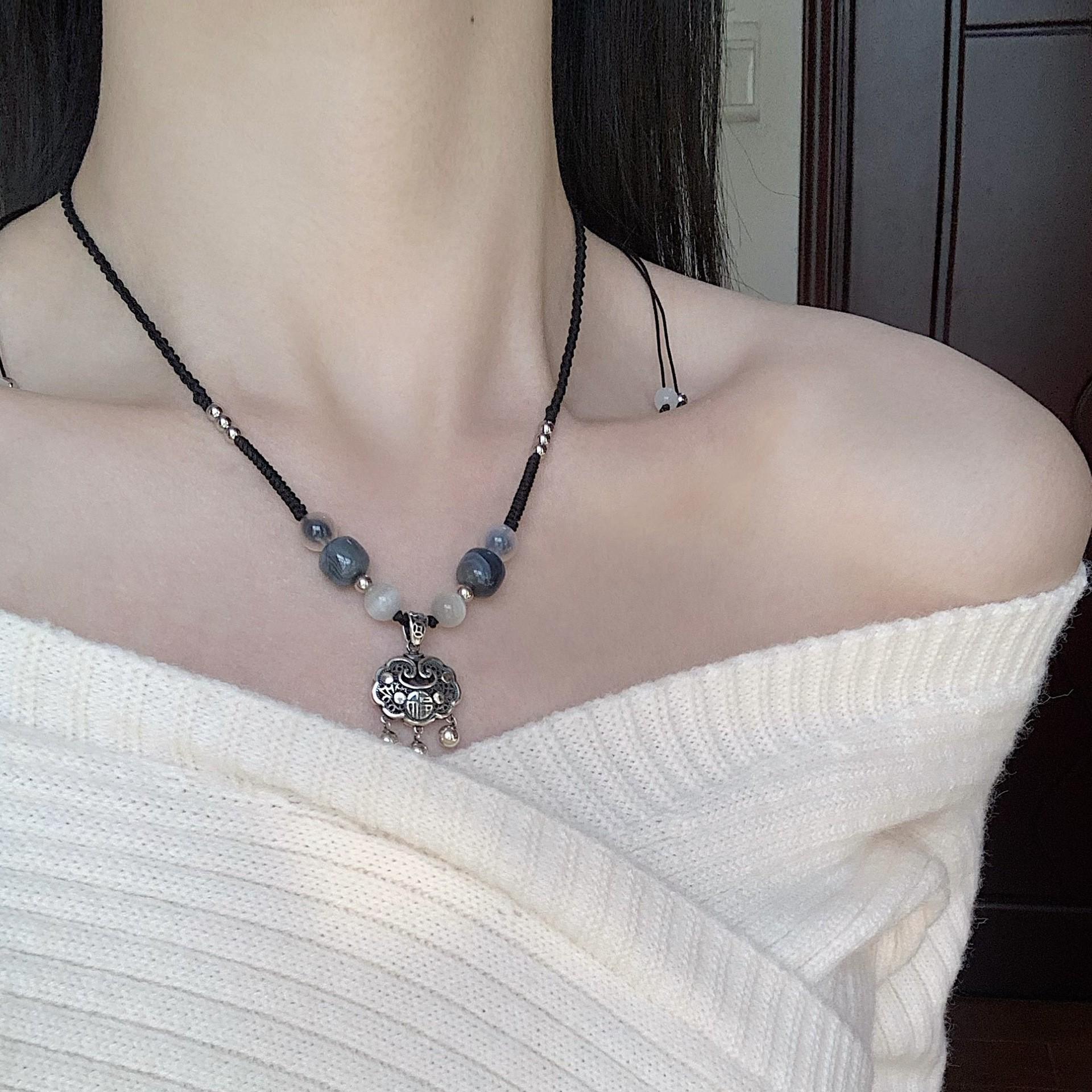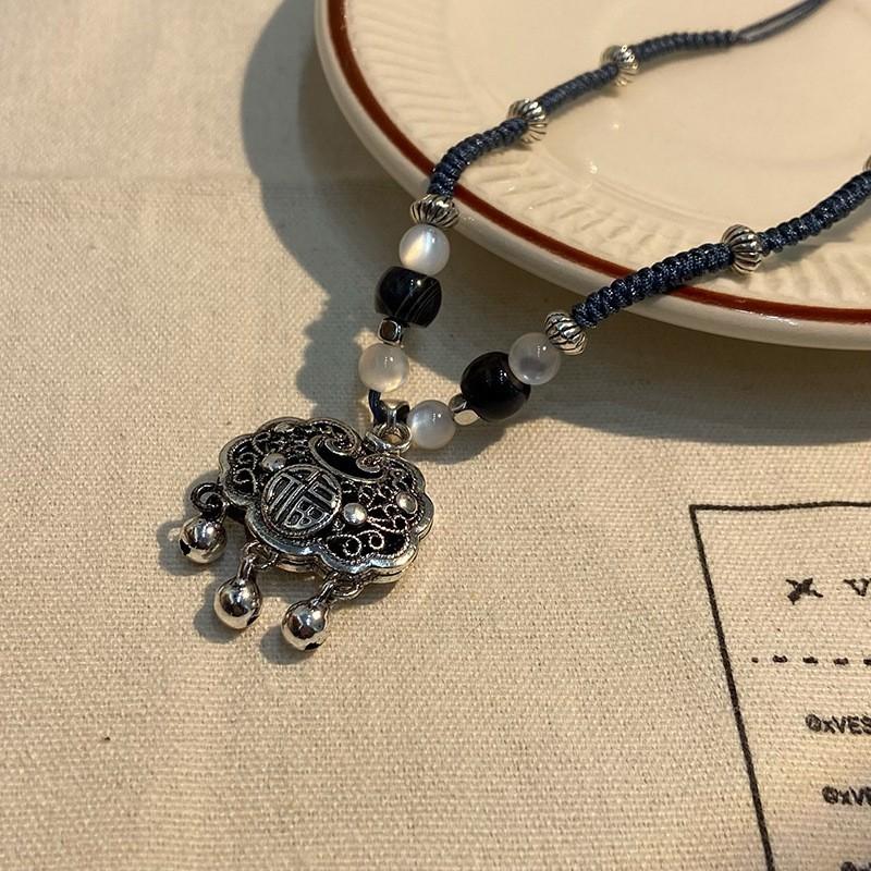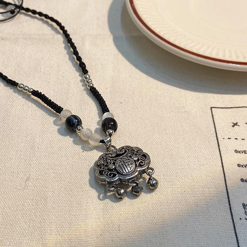 Nuevo collar con candado de paz retro chino, diseño de nicho, personalidad de alto sentido, temperamento de Joker, cadena para el cuello, cadena para clavícula, venta al por mayor