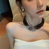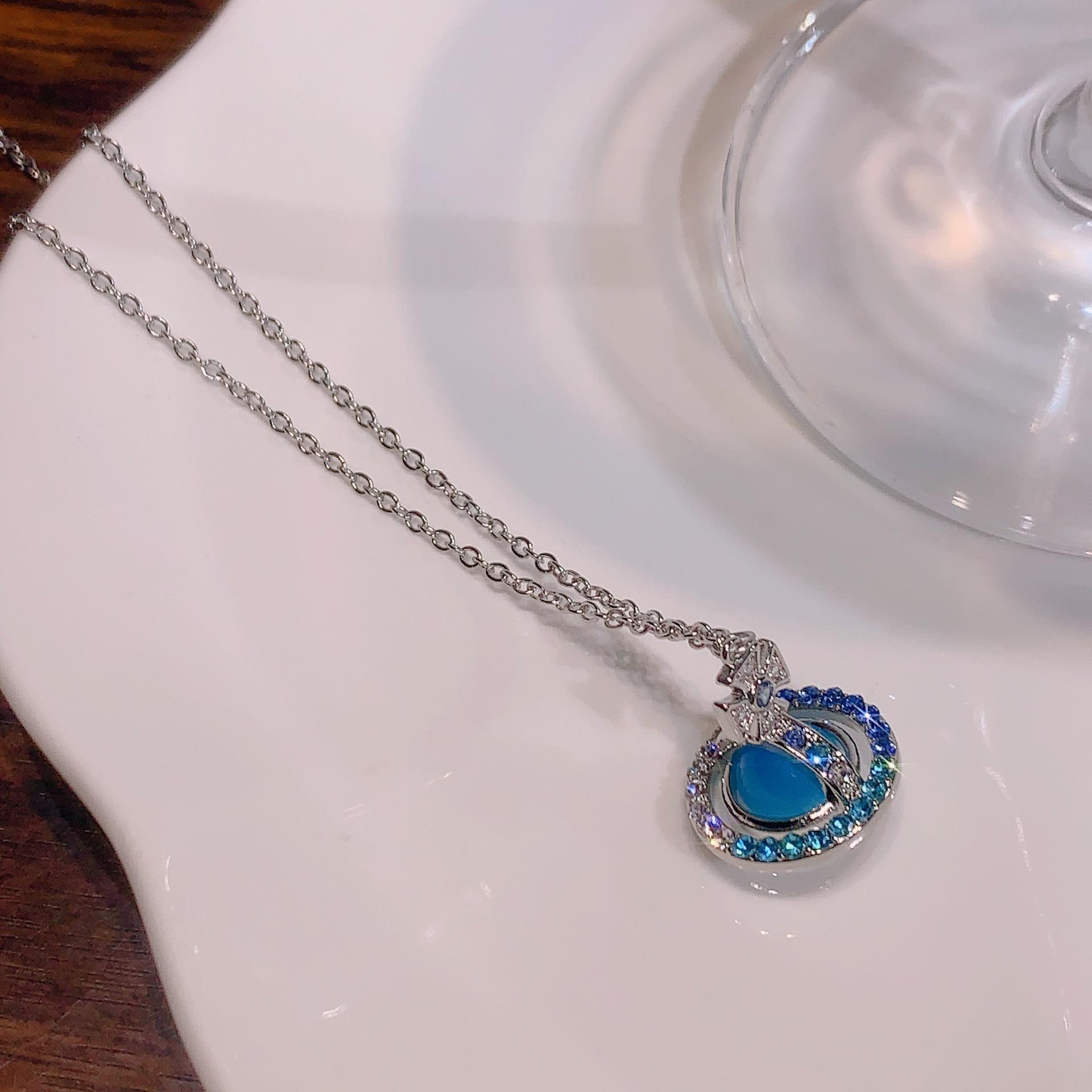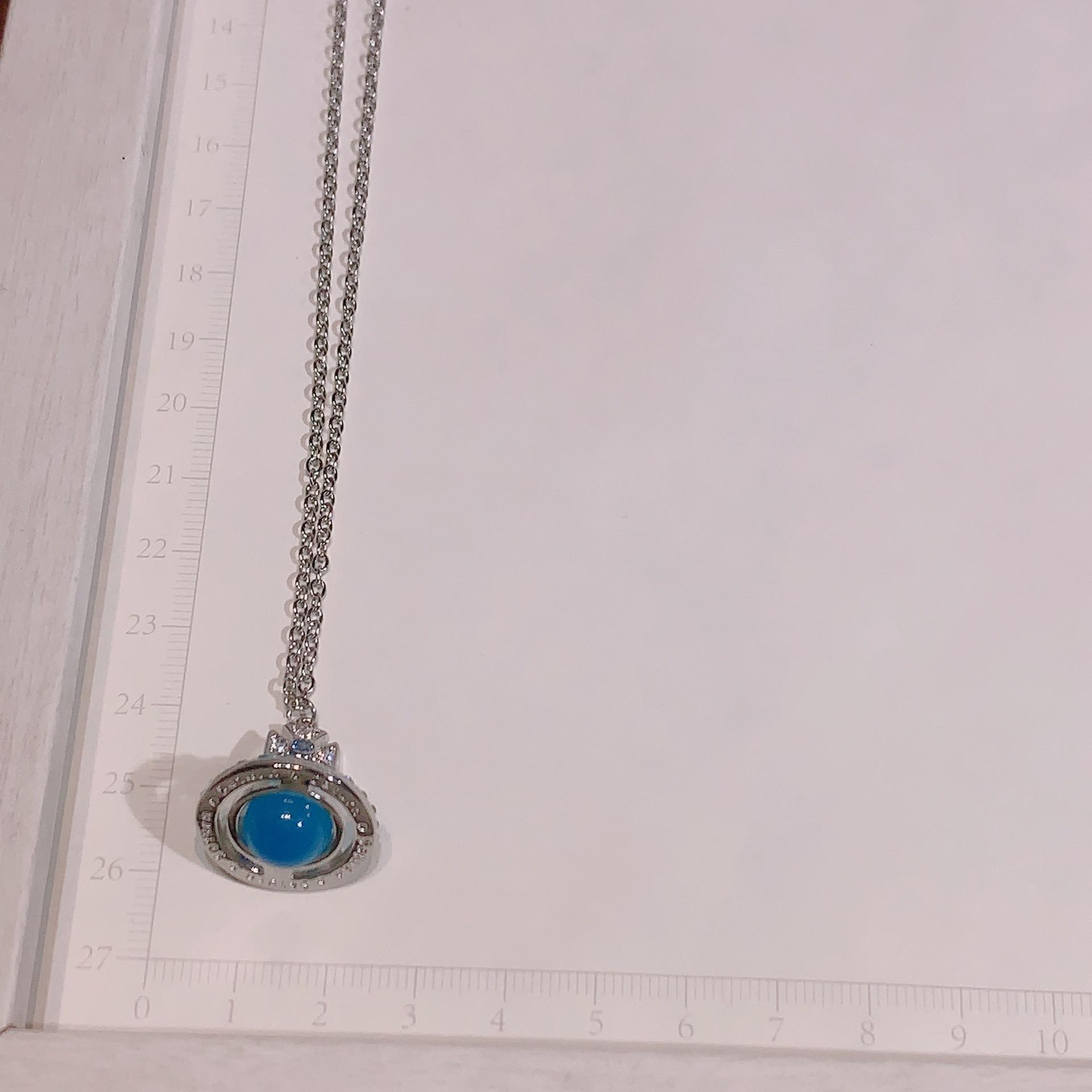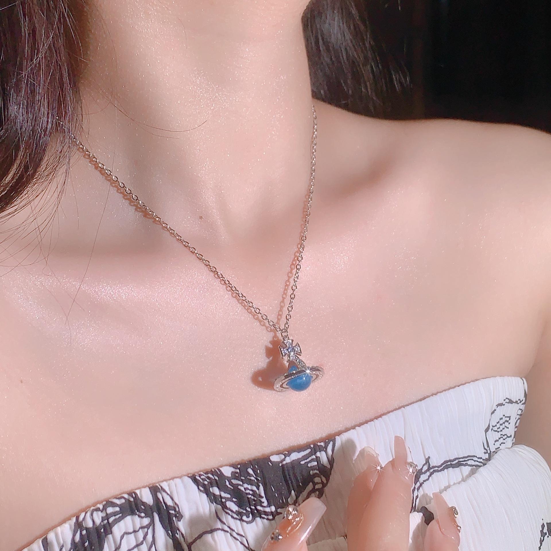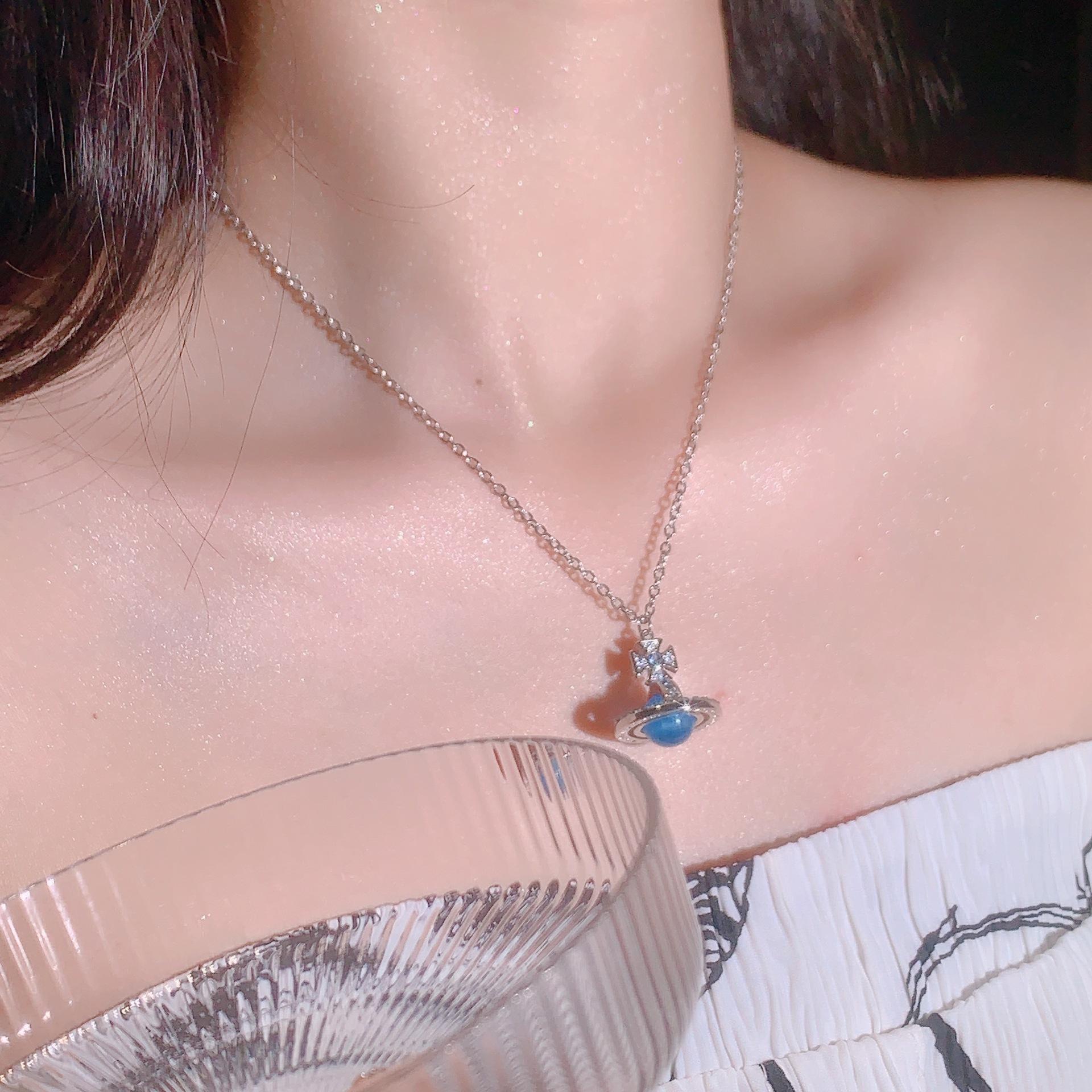 Collar Planeta Saturno Aretes para Mujer Cristal Colorido Diseño Nicho de Alta Gama Aretes Planeta Diamante Completo Cadena Clavícula