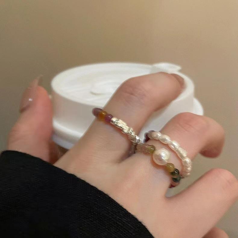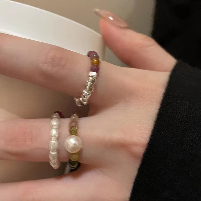 Anillo de turmalina con imitación de perla natural, diseño de nicho ligero y lujoso para mujer, anillo de plata con cuentas de alta calidad.