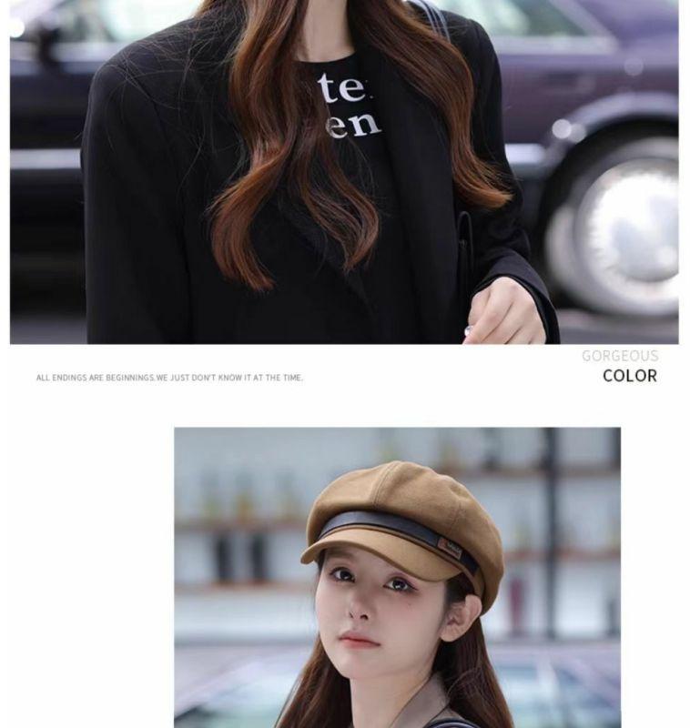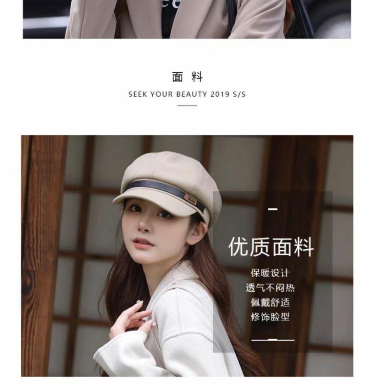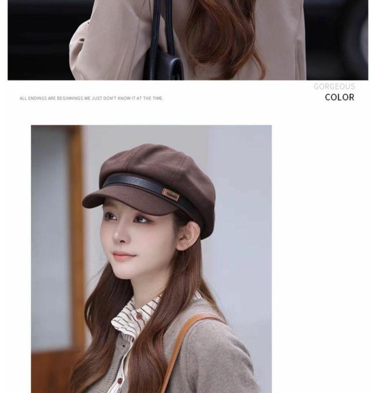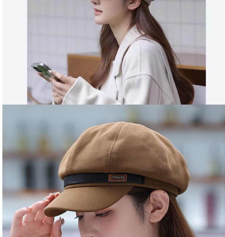 C leather edge octagonal hat-black, C leather edge octagonal hat-beige, C leather edge octagonal hat-khaki, C ...
