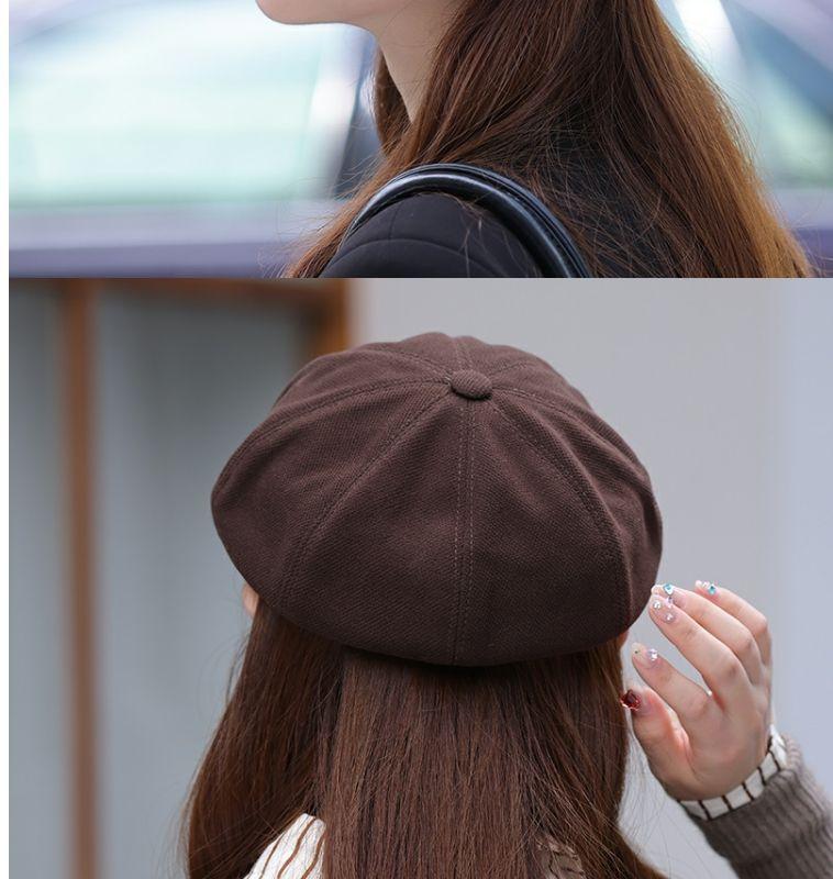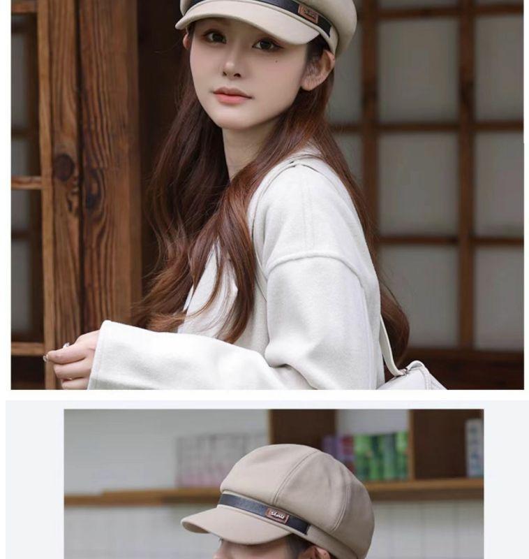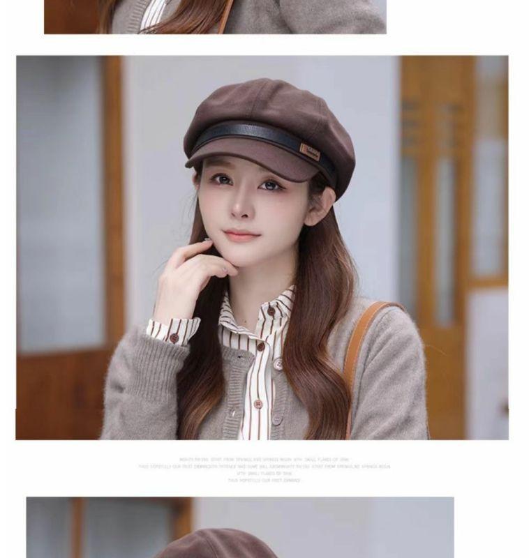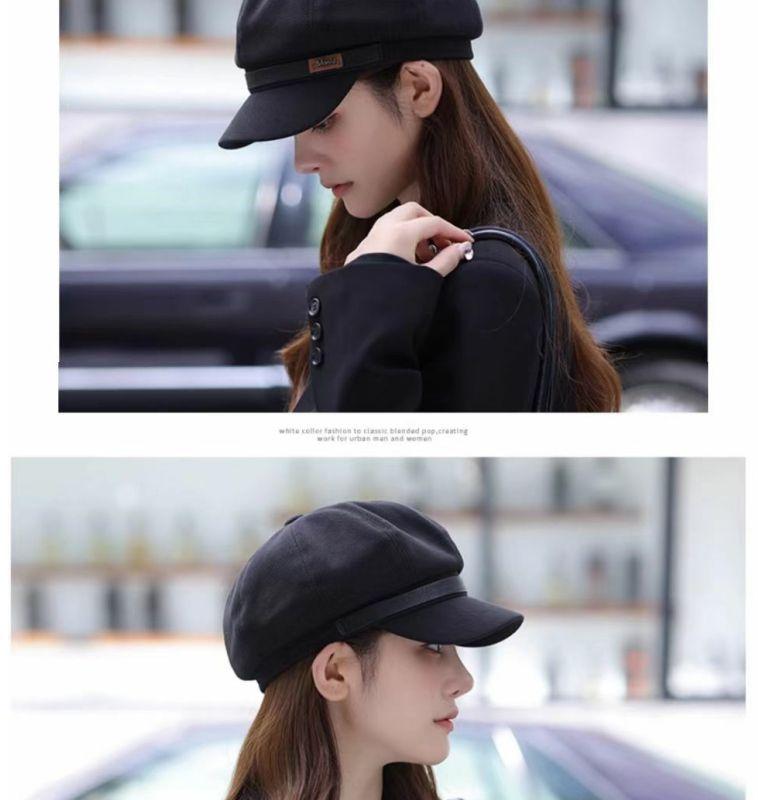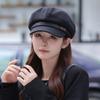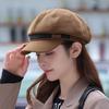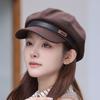 Boina de mujer estilo británico retro cibernético octogonal rojo, de primavera y otoño, informal, a la moda, con cara que combina con todo, en tono patito.