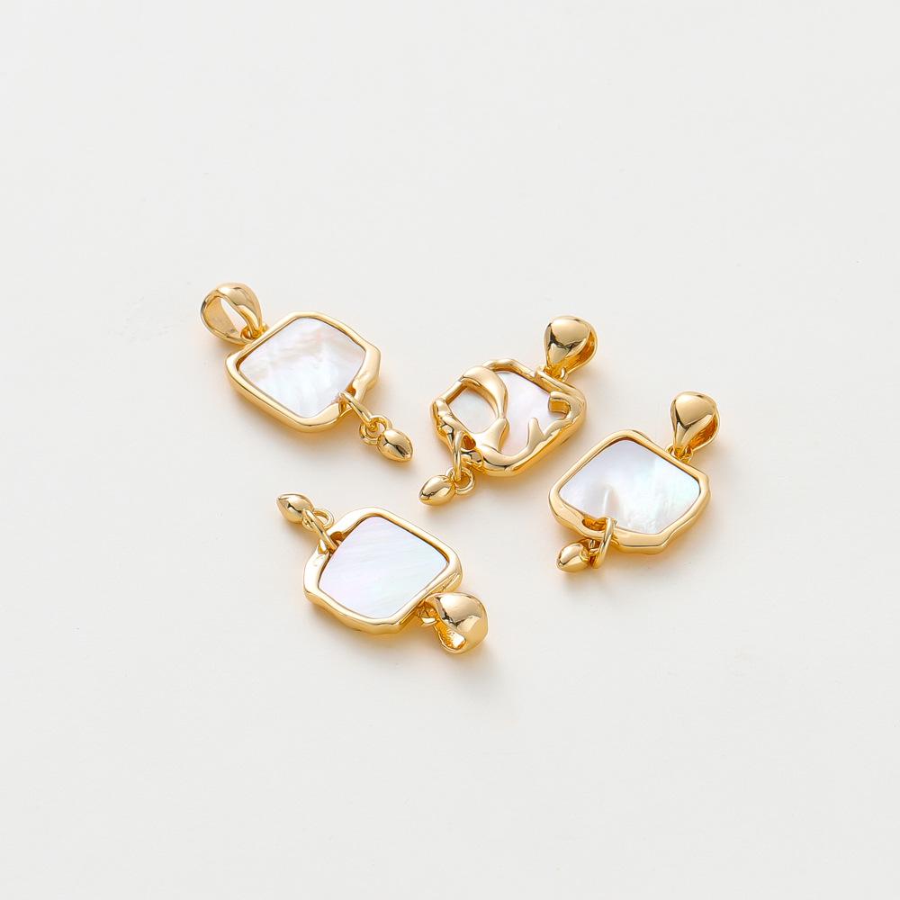 Colgante cuadrado de oro real hecho a mano con preservación del color, accesorios de joyería, pulsera, collar, doble colgante, pequeño colgante, accesorios al por mayor