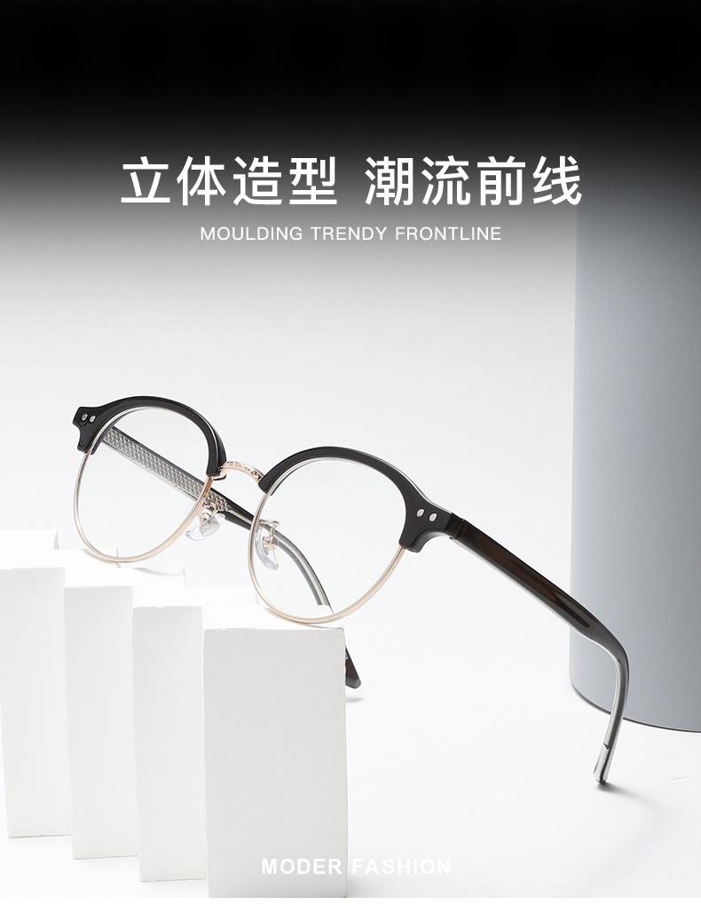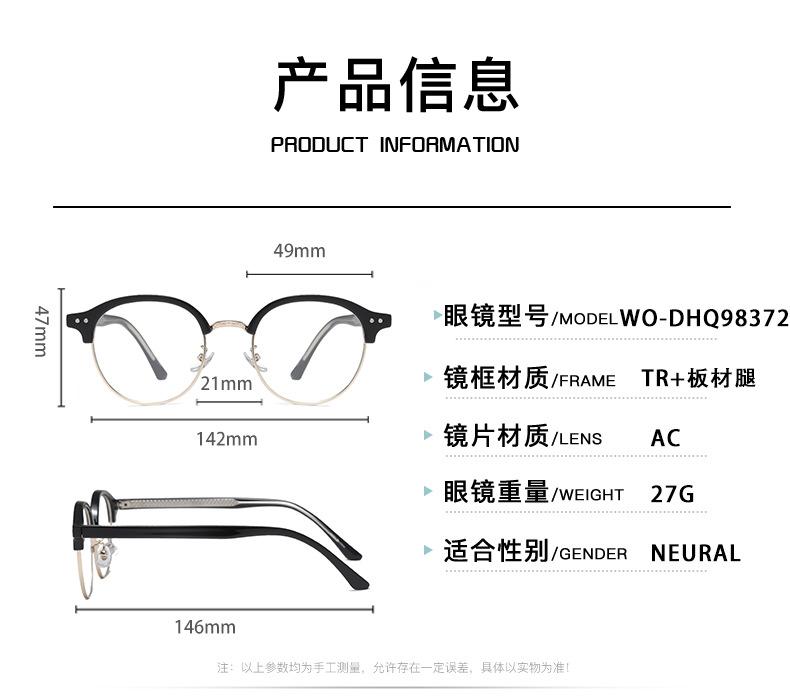 Gafas de Estilo Influencer de TikTok con Montura Redonda para un Look Natural, Gafas de Media Montura con Bloqueo de Luz Azul, Torre Blanca, Se Pueden Adaptar con Lentes de Prescripción