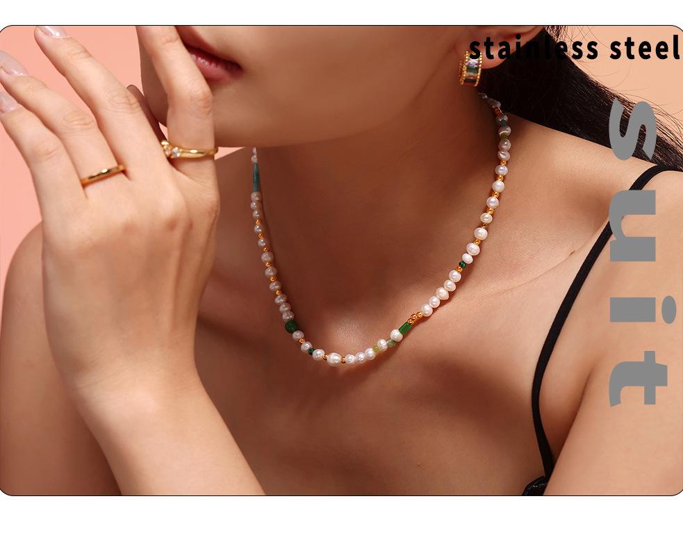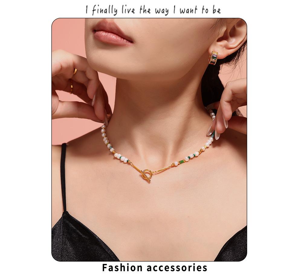 Collar de perlas naturales de agua dulce con hebilla OT, exquisito collar de cuentas, cadena de clavícula de acero de titanio de lujo, collar combinable, regalo para novia