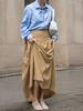 Falda plisada ajustada de cintura alta color caqui 2024, moda europea y americana de otoño e invierno, nueva falda larga al por mayor transfronteriza