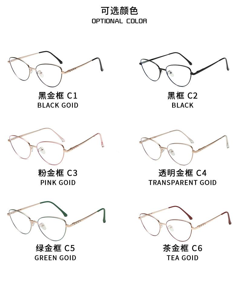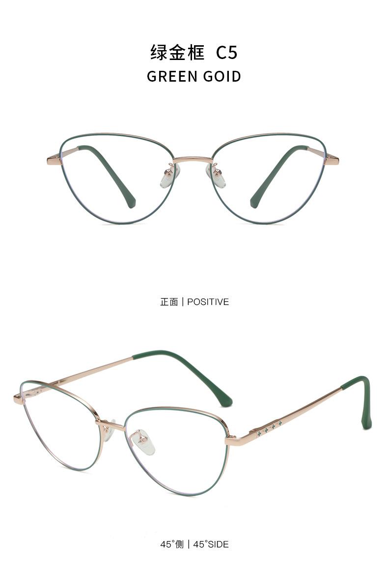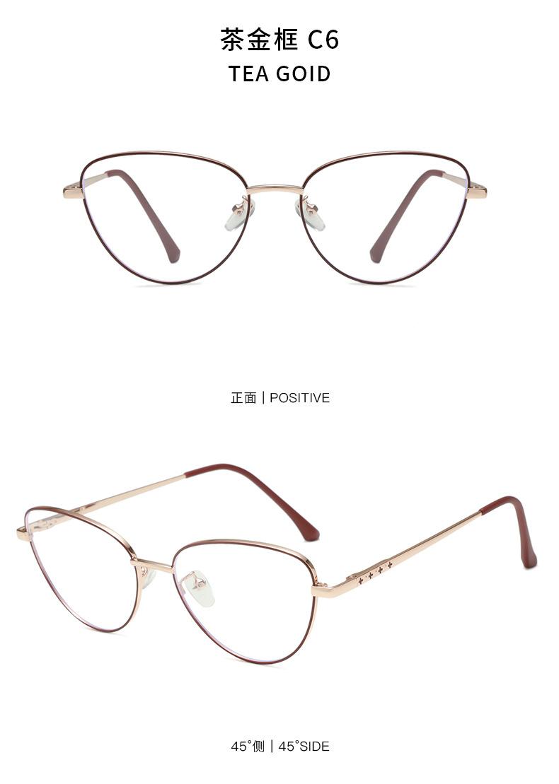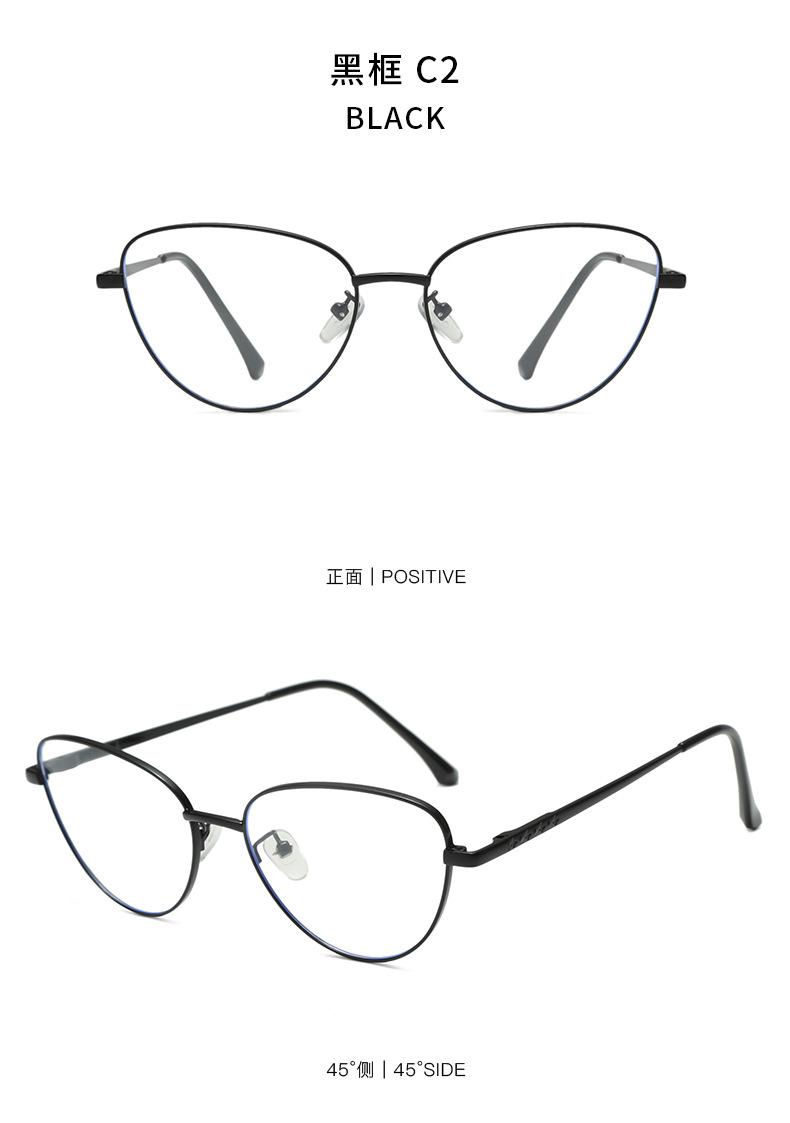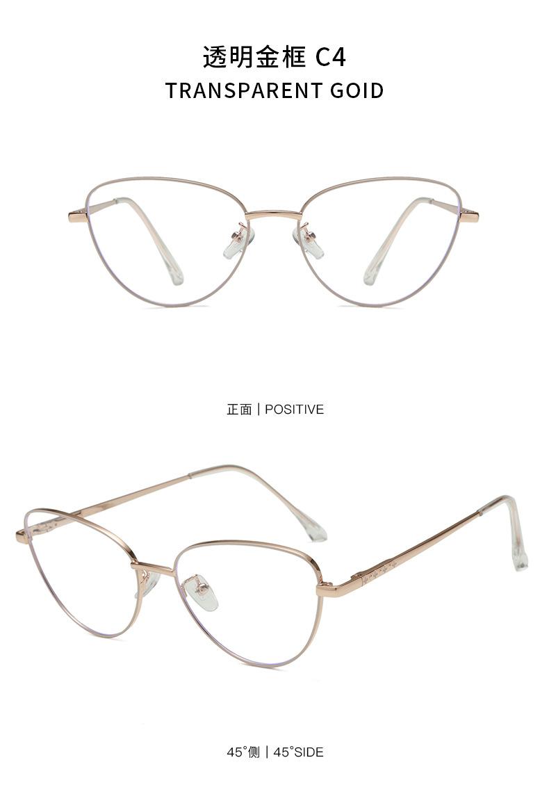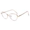 Nuevas gafas de sol estilo ojo de gato de estilo europeo y americano con montura metálica y resorte, de estilo transfronterizo, con cara lisa y espejo plano antiluz azul 25003