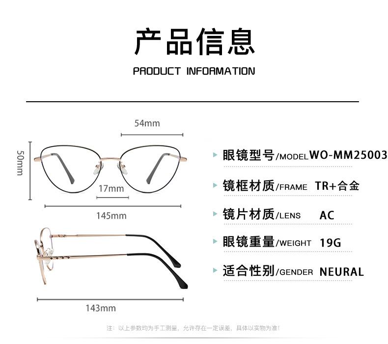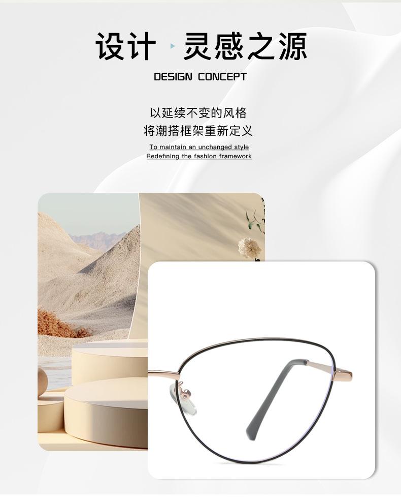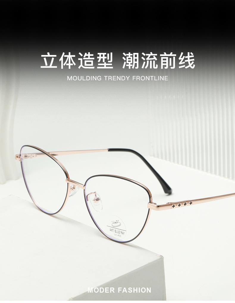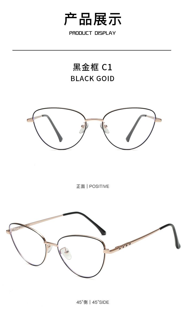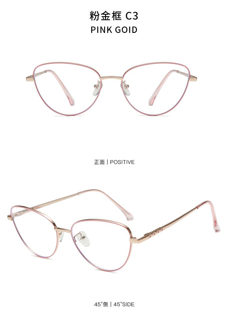 Nuevas gafas de sol estilo ojo de gato de estilo europeo y americano con montura metálica y resorte, de estilo transfronterizo, con cara lisa y espejo plano antiluz azul 25003