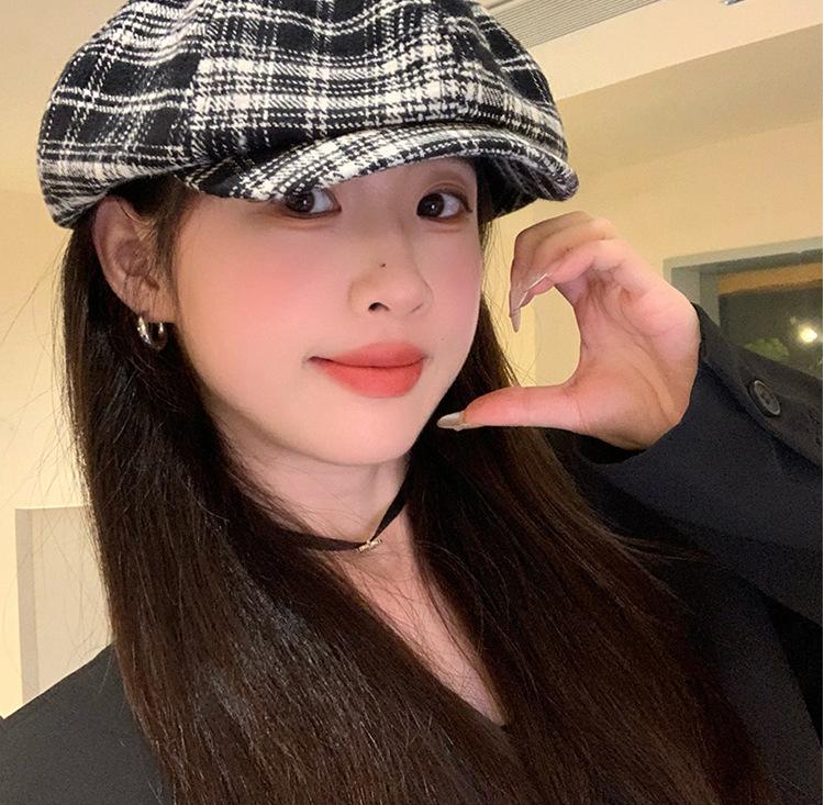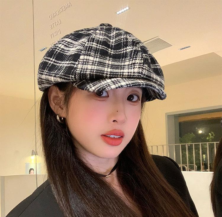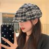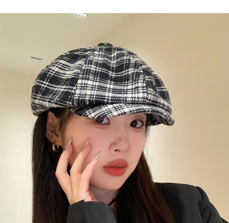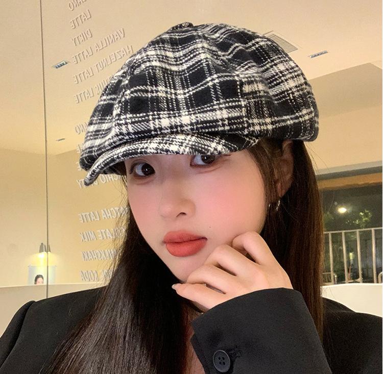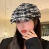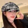 Sombrero Avanzado de Lana a Cuadros Estilo Chanel de Otoño e Invierno para Mujer, Muestra el Rostro Pequeño, Boina Anti-Desgaste, Coreano Vintage, Sombrero de Pintor