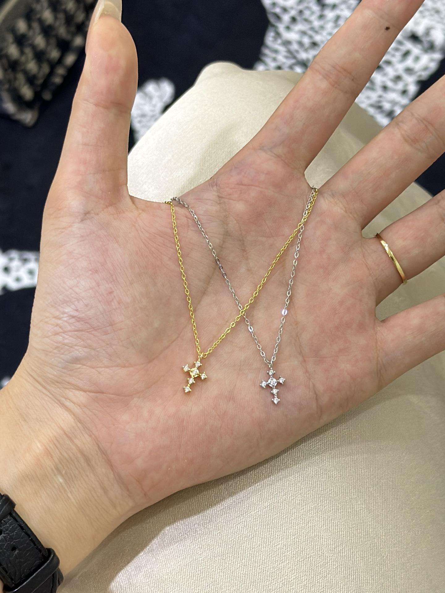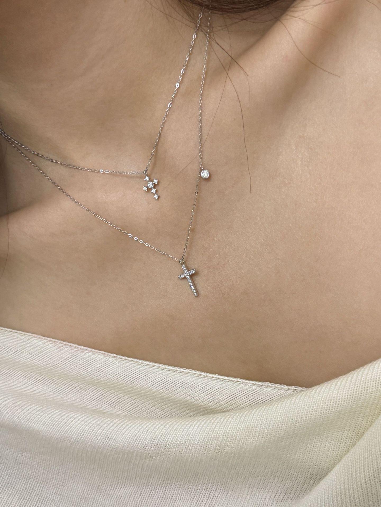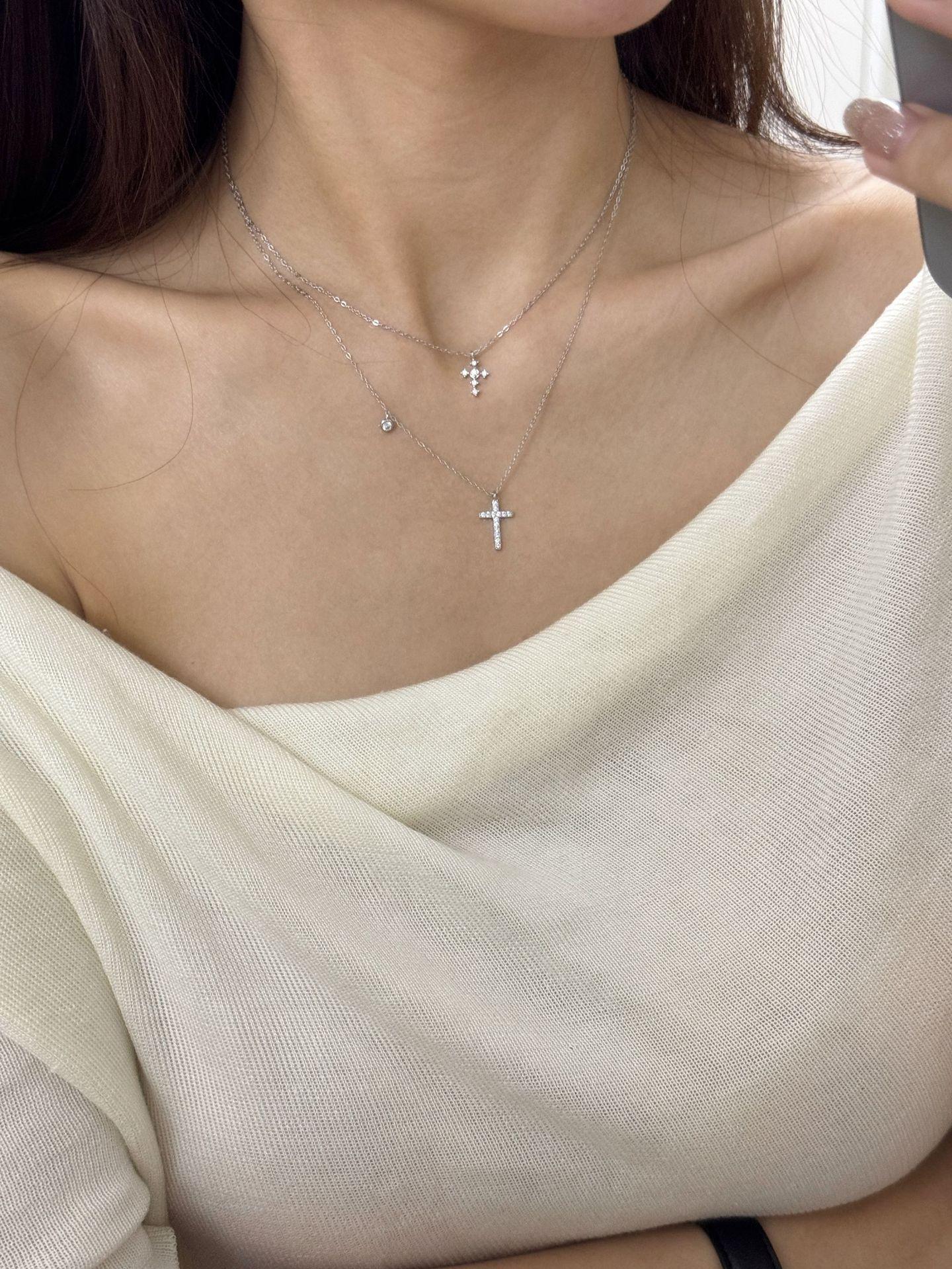 Collar elegante con mini cruz de circonitas apiladas y chapado en oro de 14 quilates en plata de ley S925 para mujer.