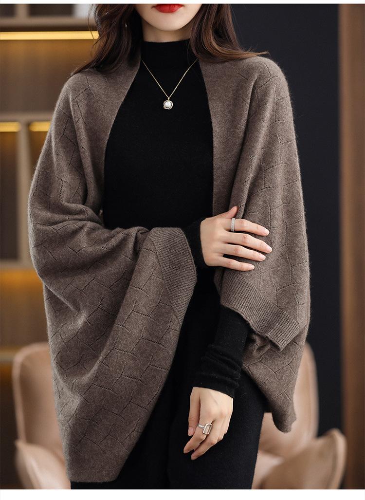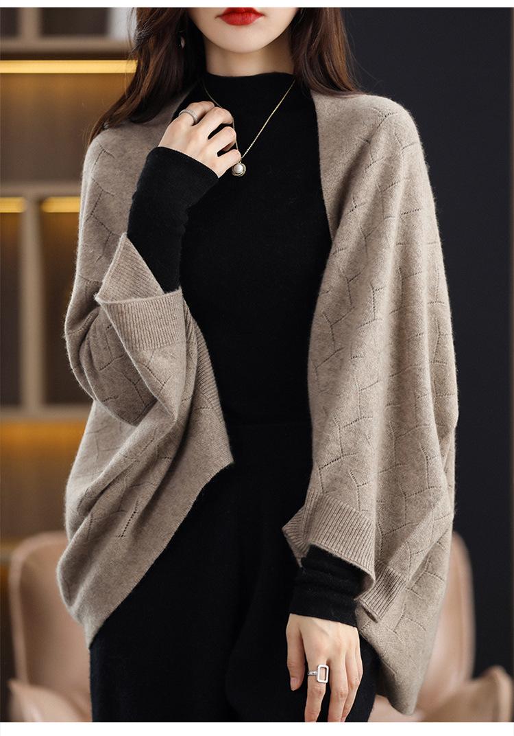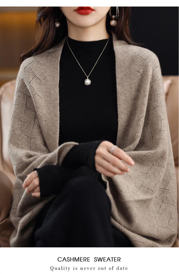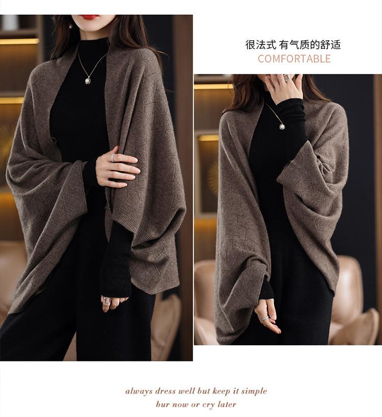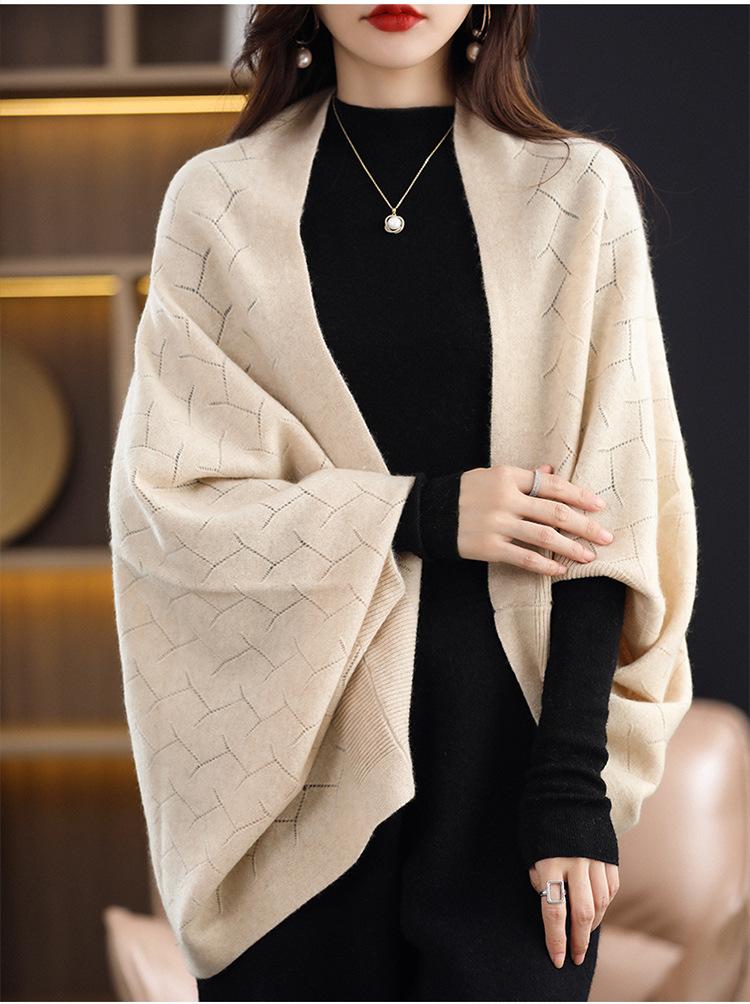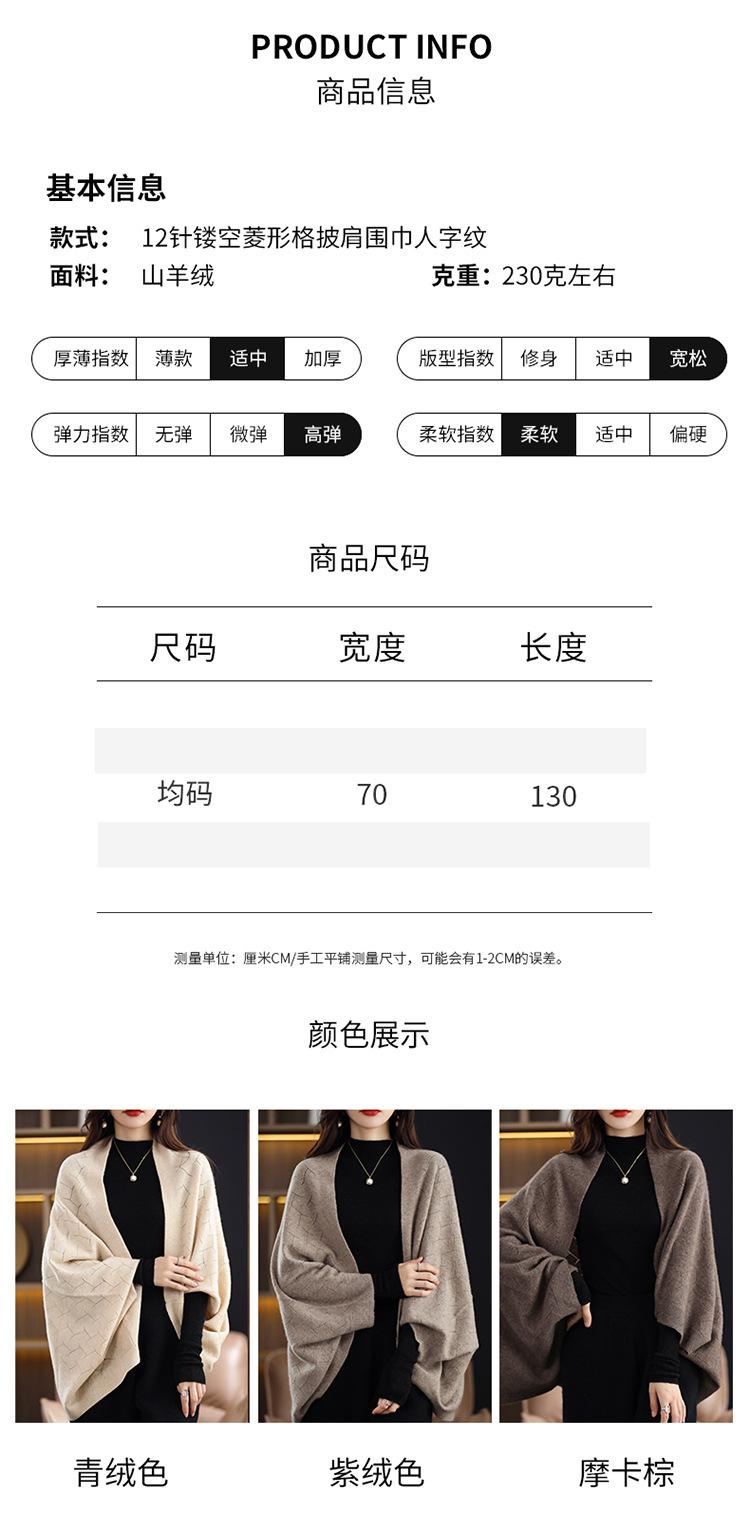 Cachemira Suave Otoño e Invierno Nuevo Tejido de Punto para Mujer con Patrón de Diamantes Calados Patrón de Espiga de Doble Propósito Elegante Chal Bufanda