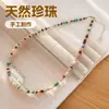 Collar de Clavícula de Perla de Dopamina Natural con Cuentas de Piedra Colorida Nicho de Lujo Ligero Verano Colgante