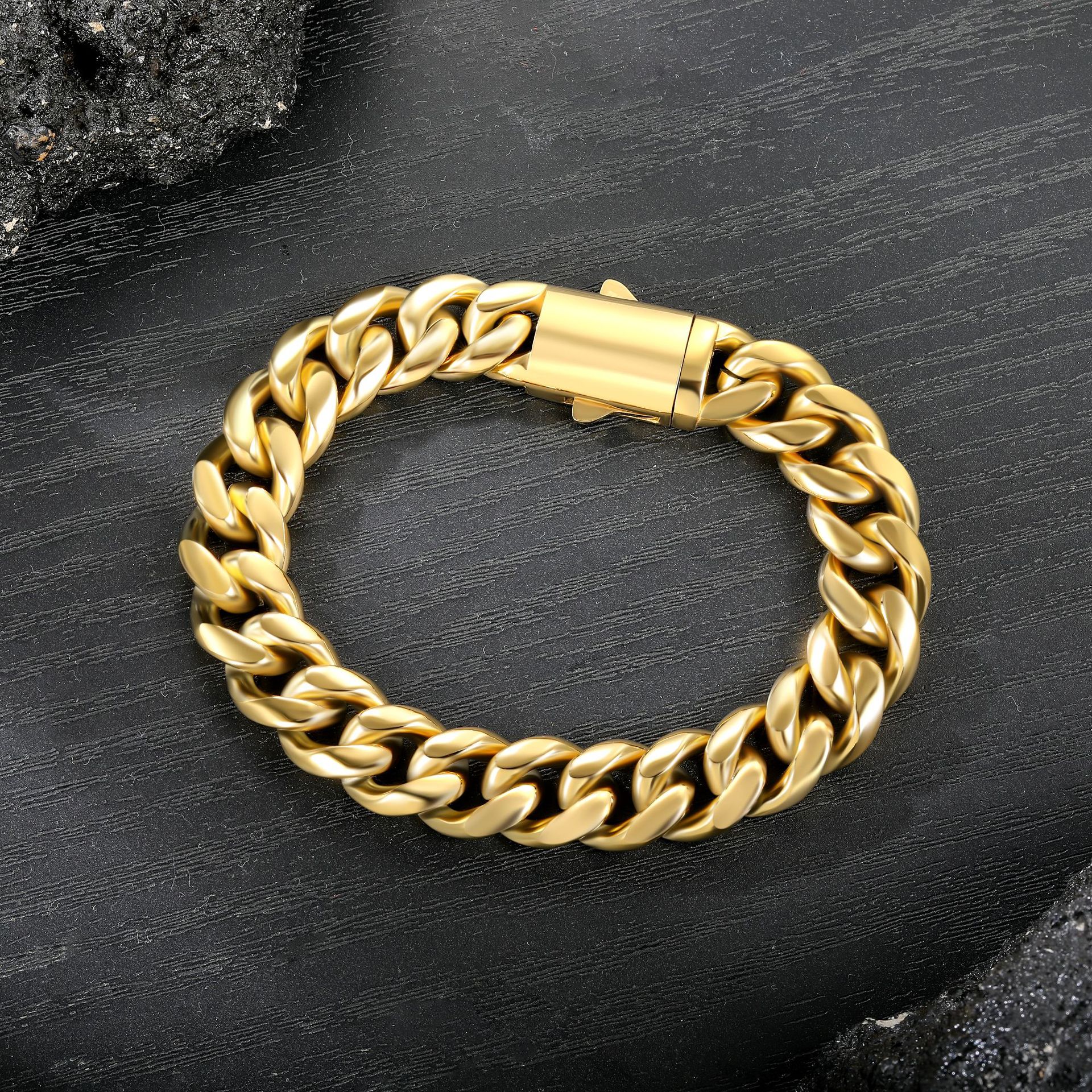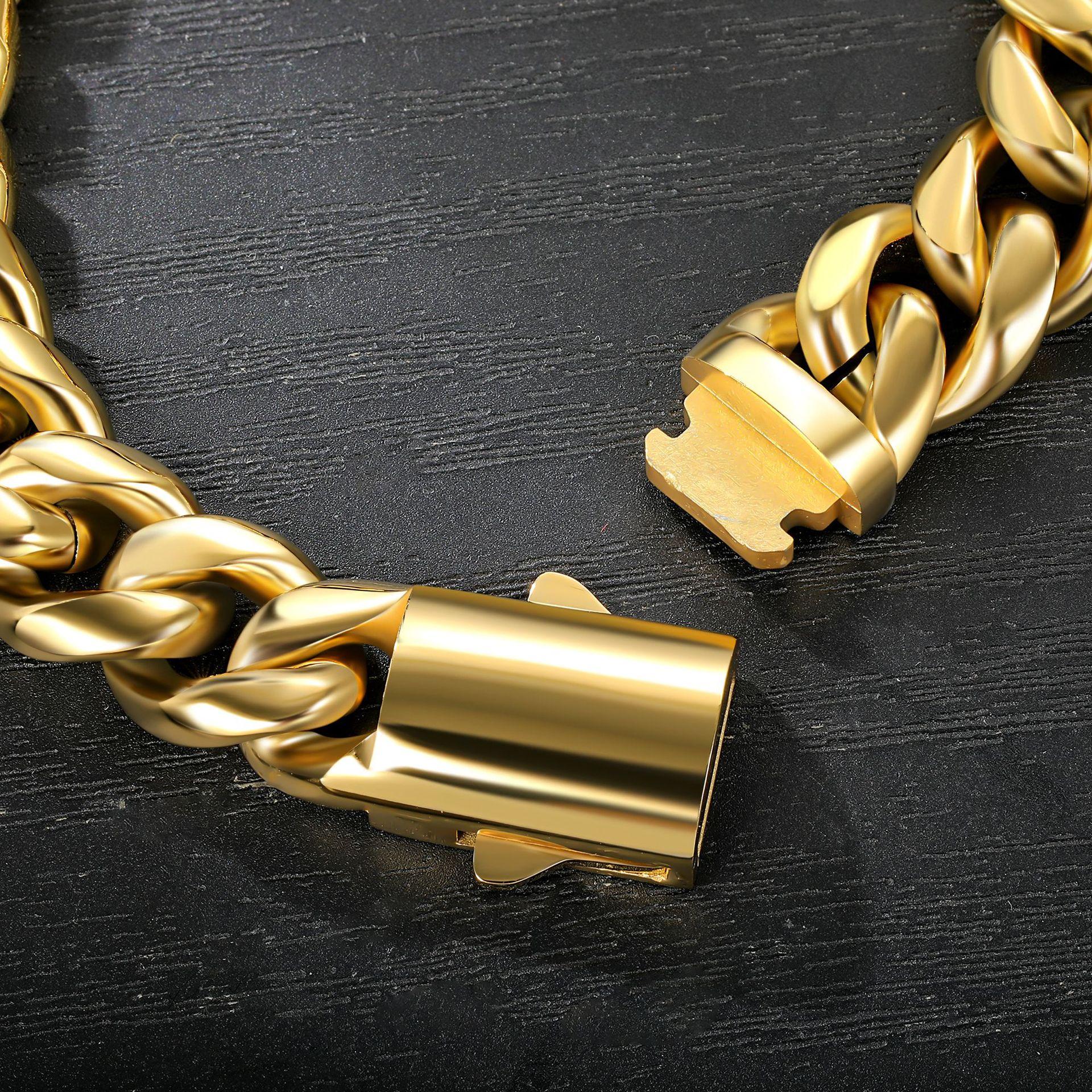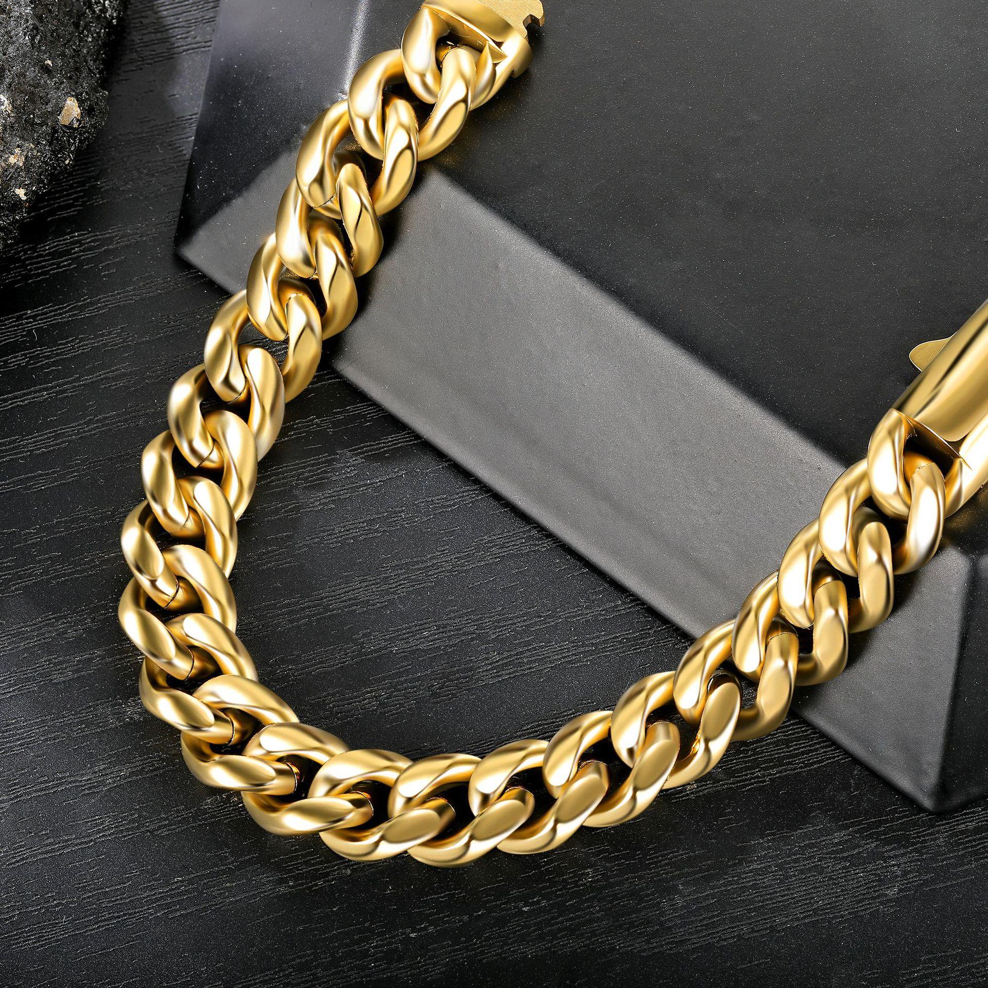 Pulsera Cubana de Acero Inoxidable 304 de 12 mm Moda Personalidad Europea y Americana Calle Trendy Pulsera para Hombre Oro Oro Blanco Negro