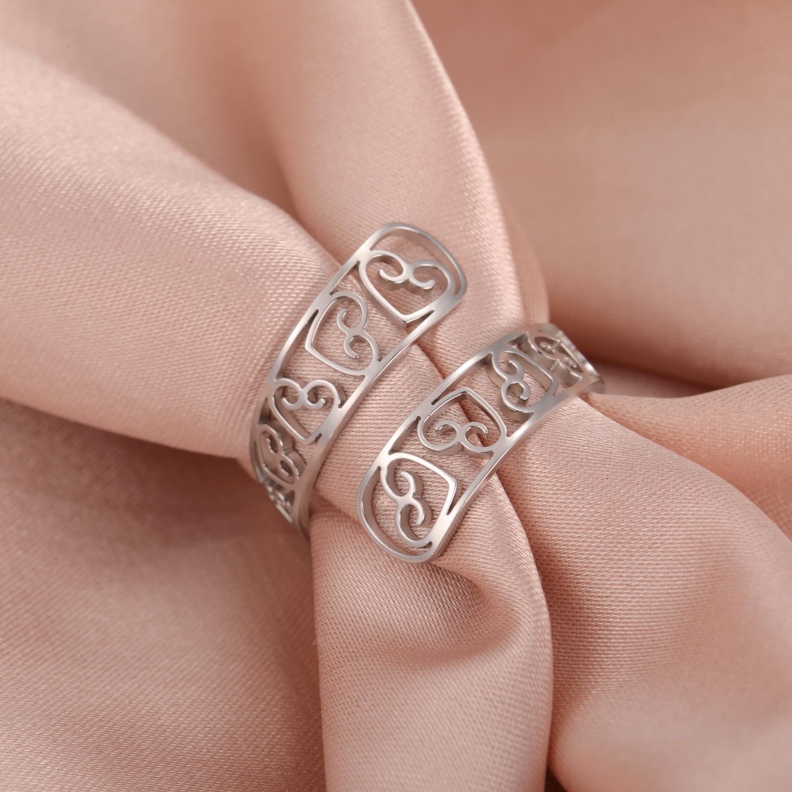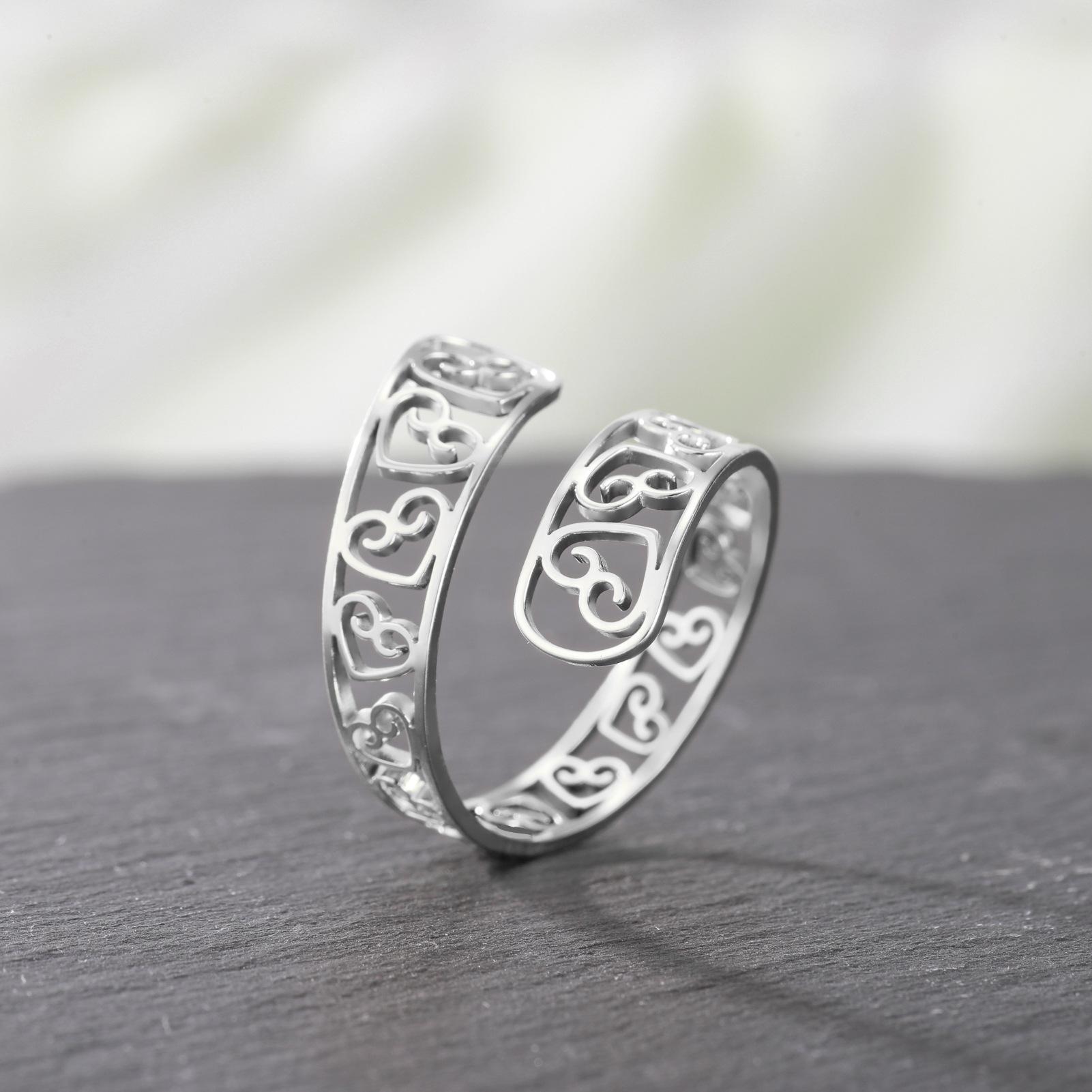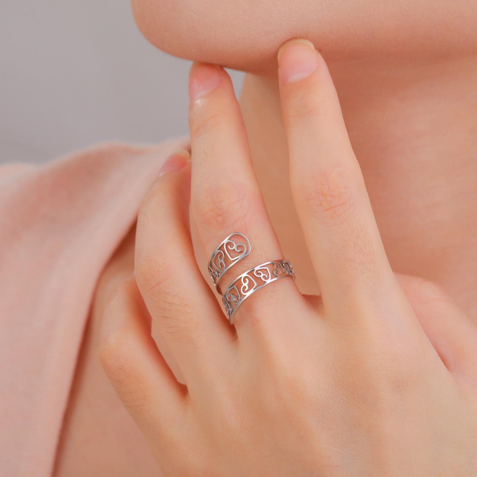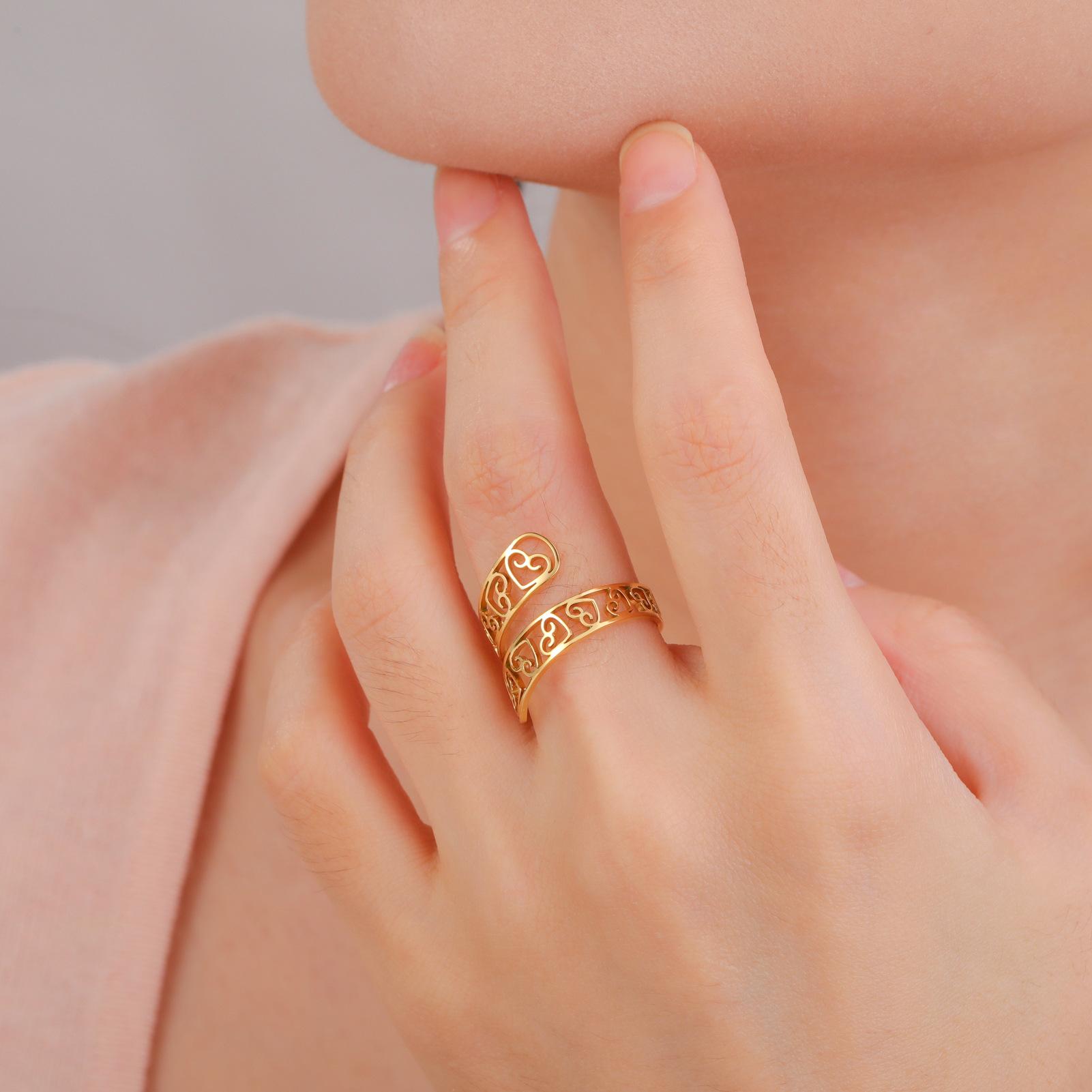 Anillo de acero de titanio dorado con corte de moda simple transfronterizo, amor hueco arriba y abajo, apertura envolvente irregular, acero inoxidable