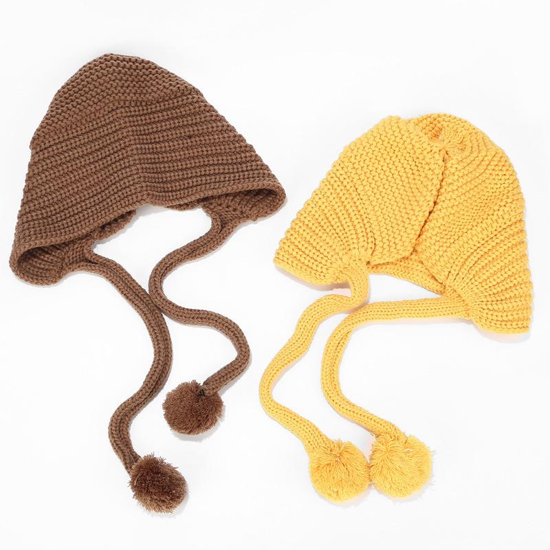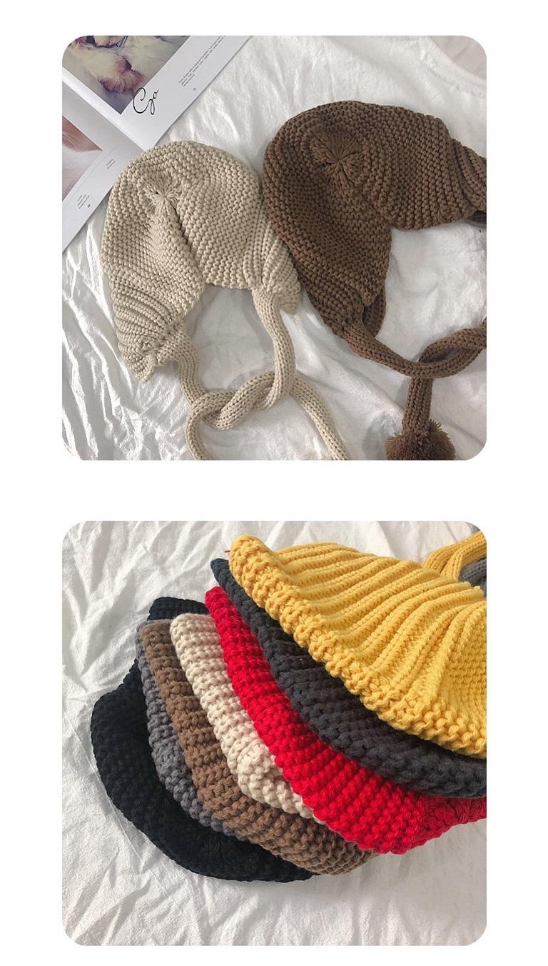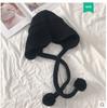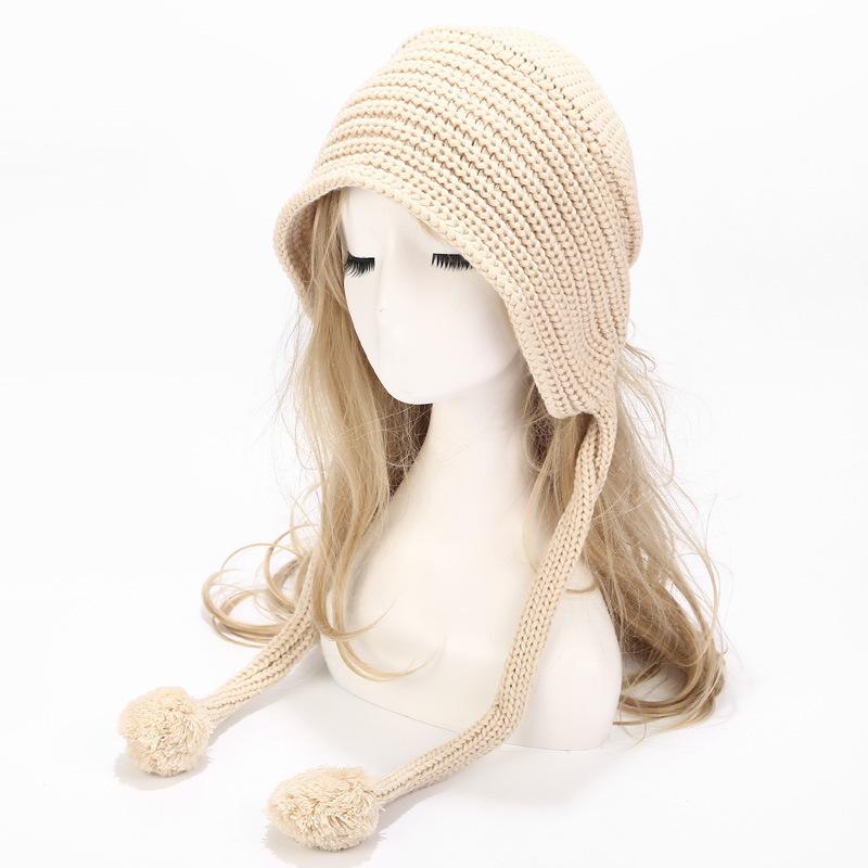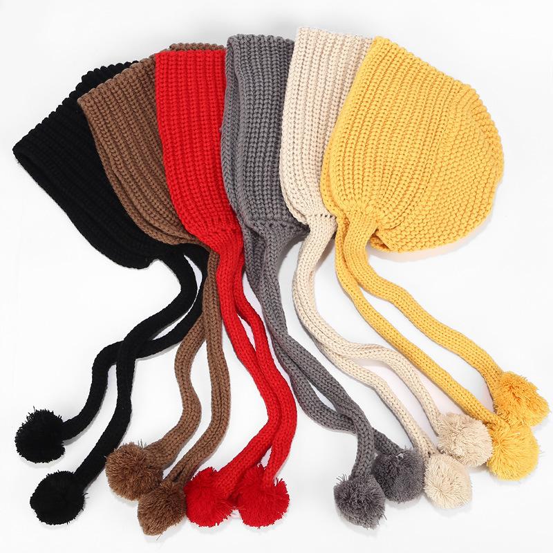 Gorro de lana bonito, hecho a mano y popular en Internet, de Corea del Sur, de color liso, tejido con trenza larga, para mujer, de invierno, coreano, con protección para las orejas, resistente al viento.