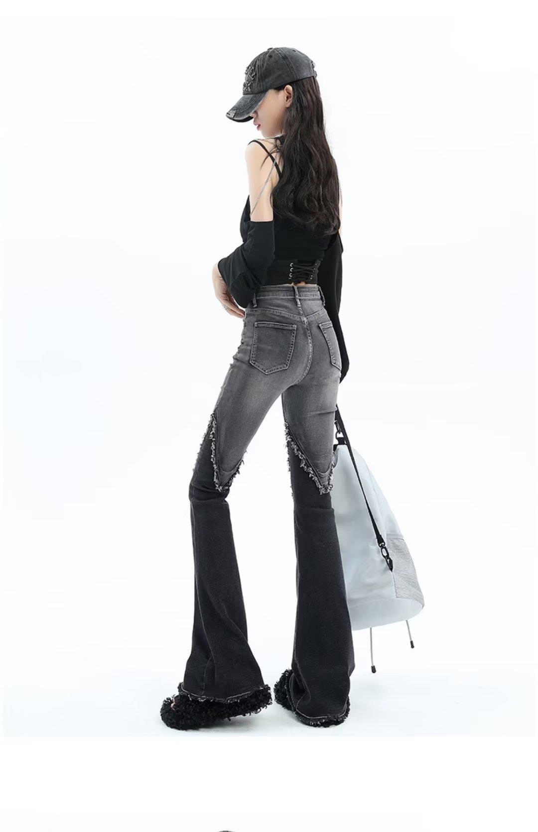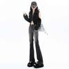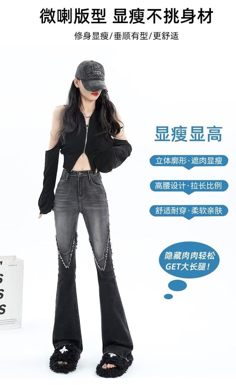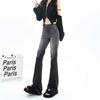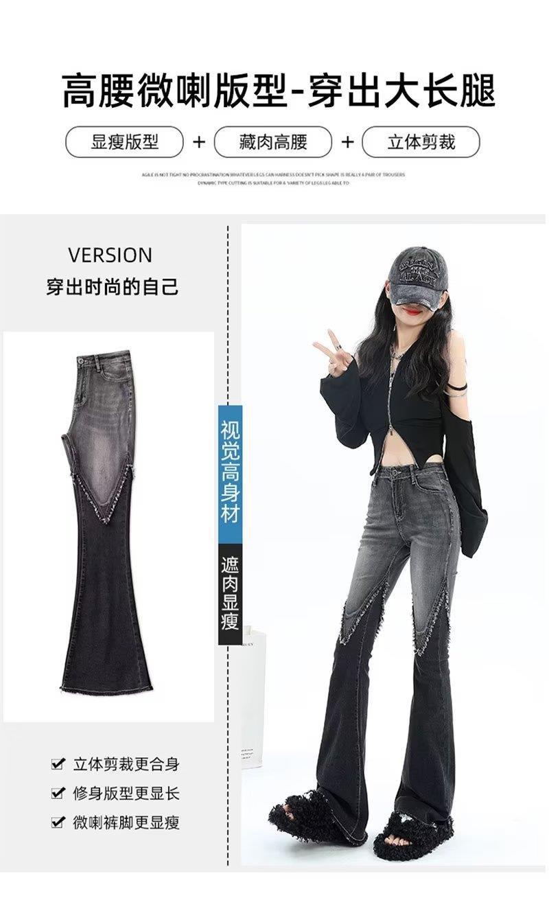 Jeans acampanados patchwork retro americano para mujer 2023 primavera nuevo diseño cintura alta slim acampanados pantalones para trapear