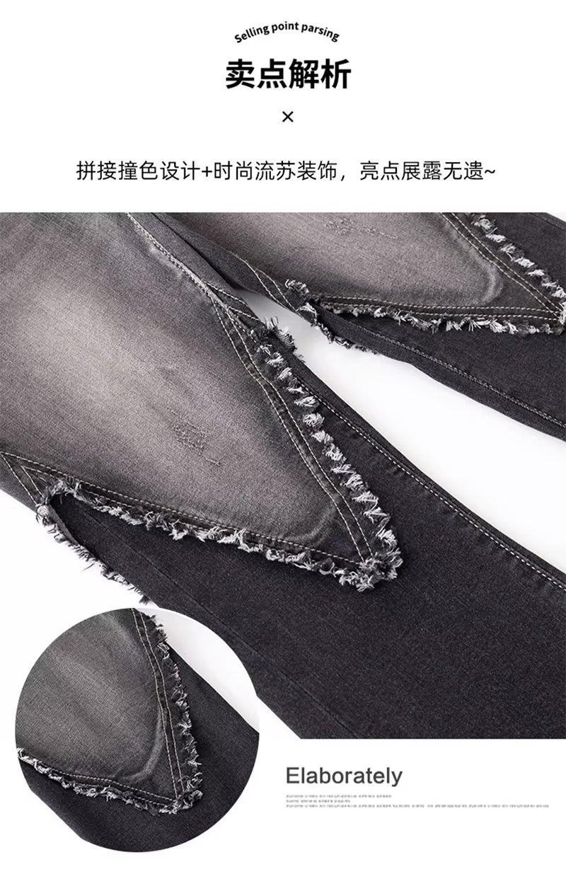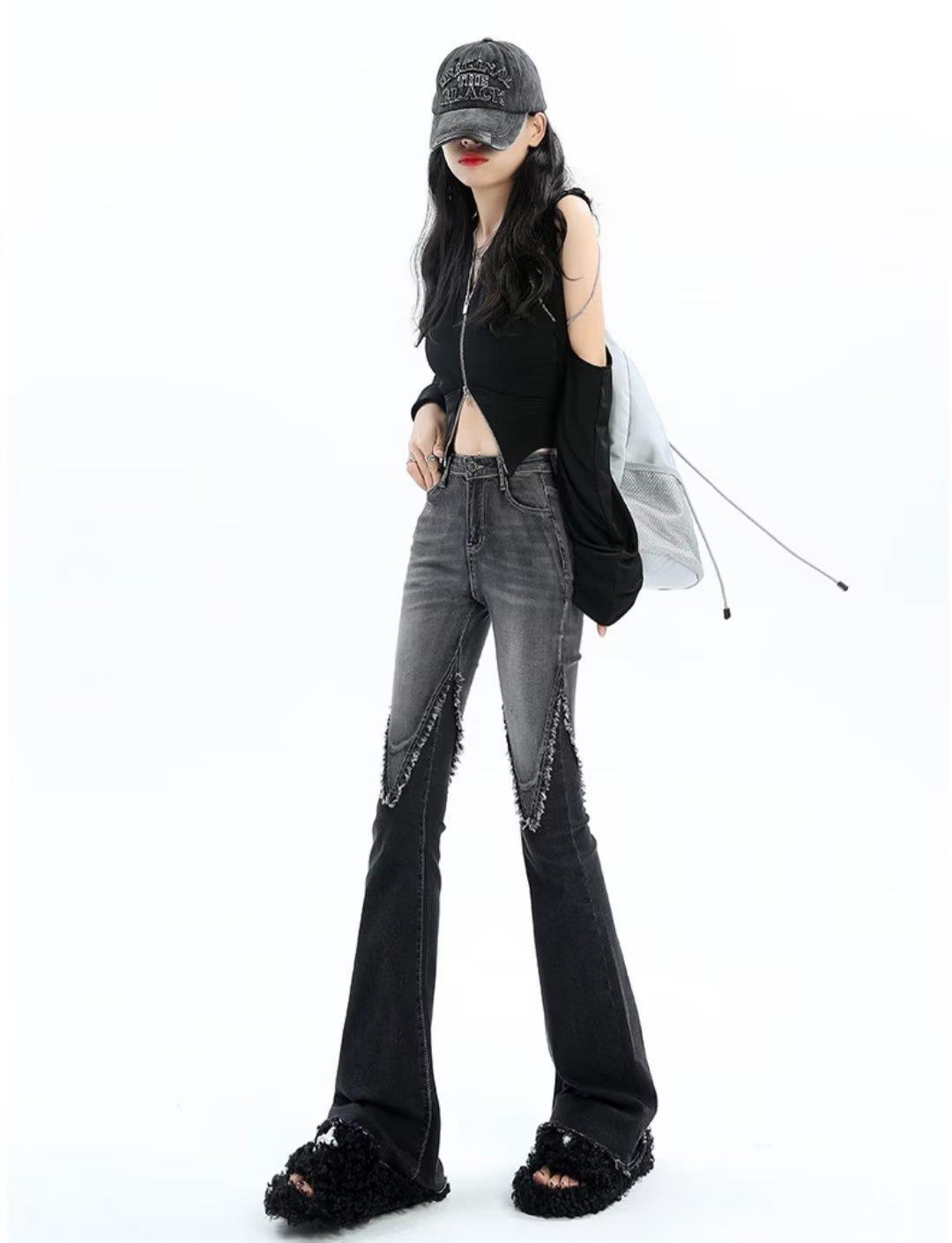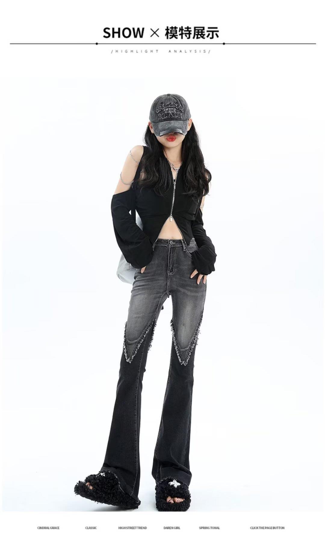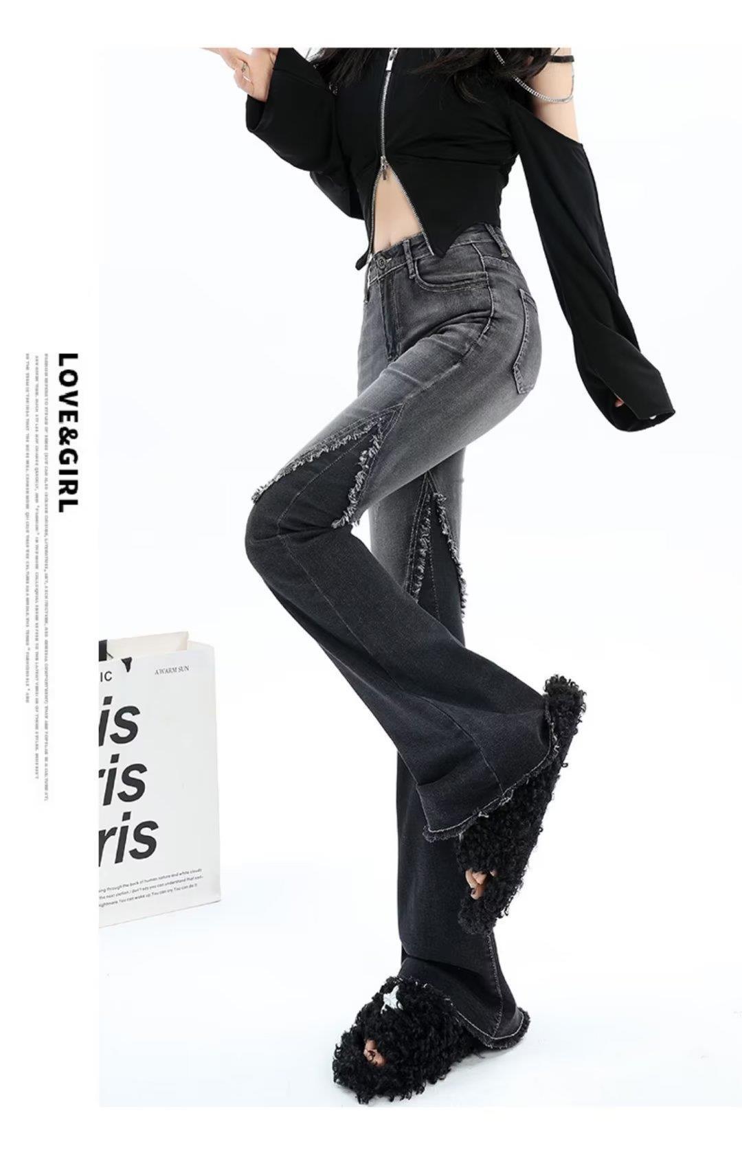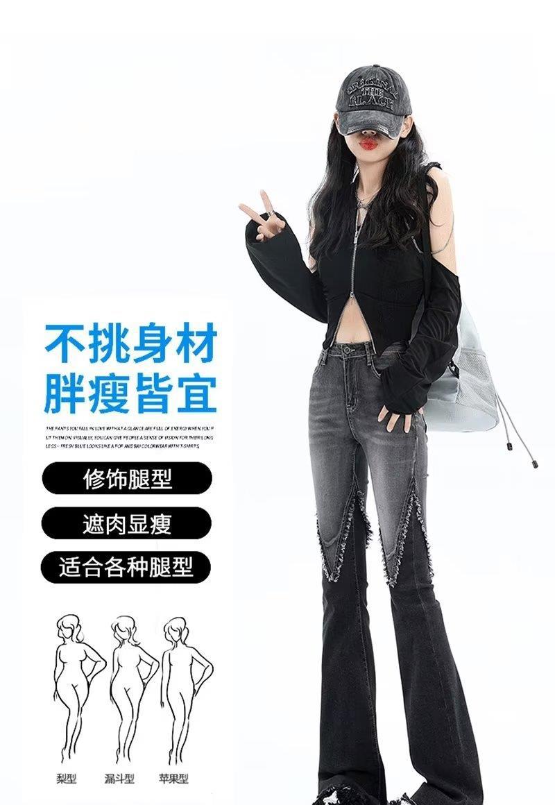 Vaqueros de otoño para mujer, ajustados, sexys y sexys, vaqueros retro con abertura y tiras con borde sin rematar para mujer, verano