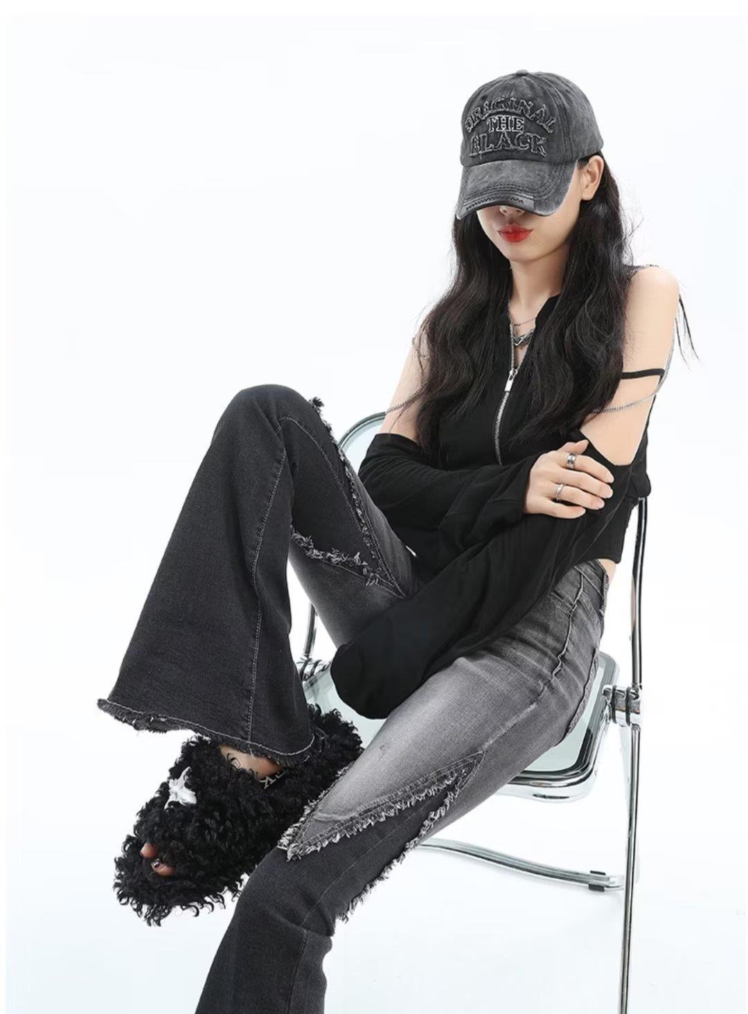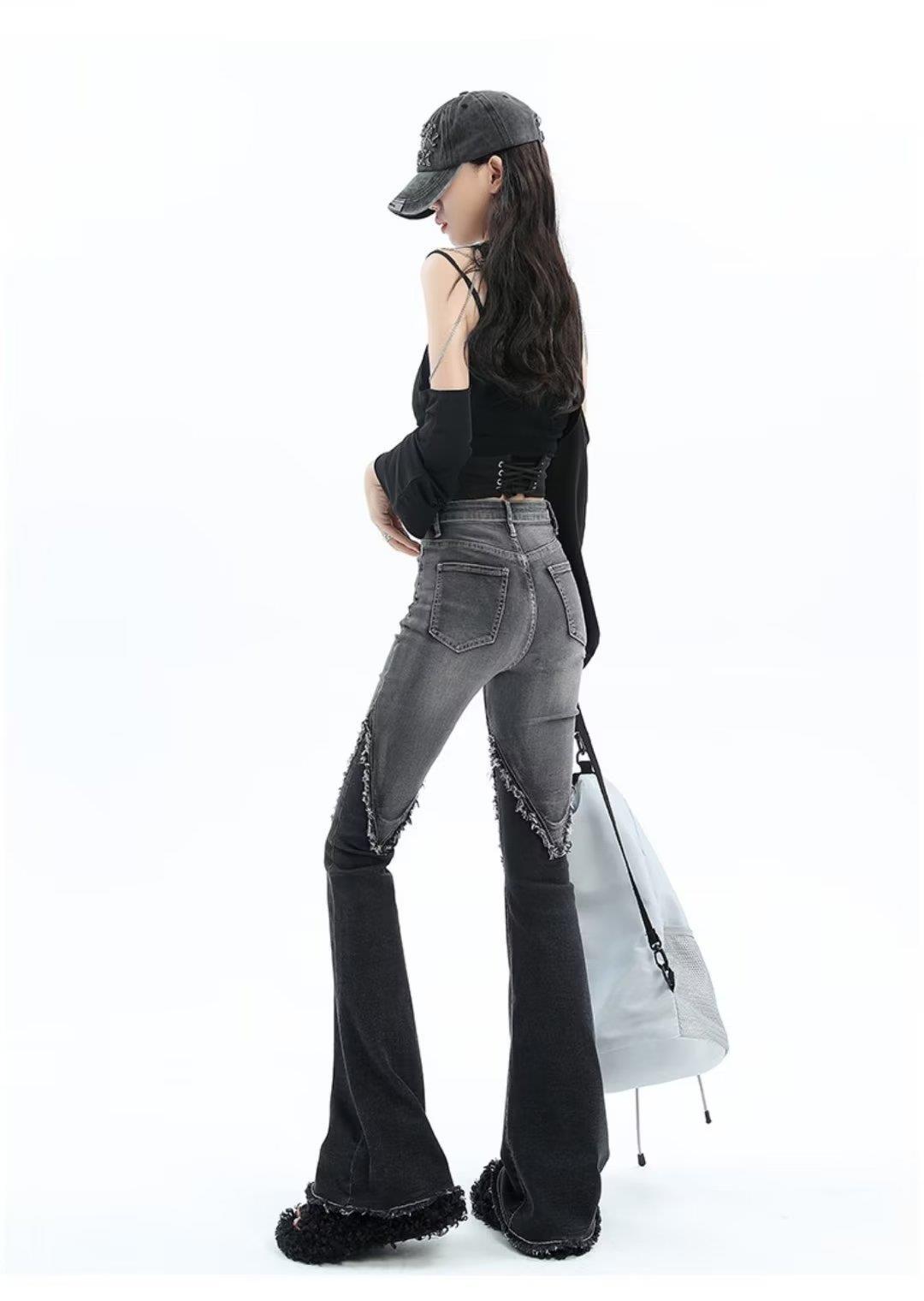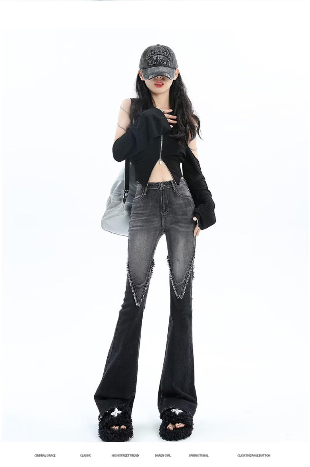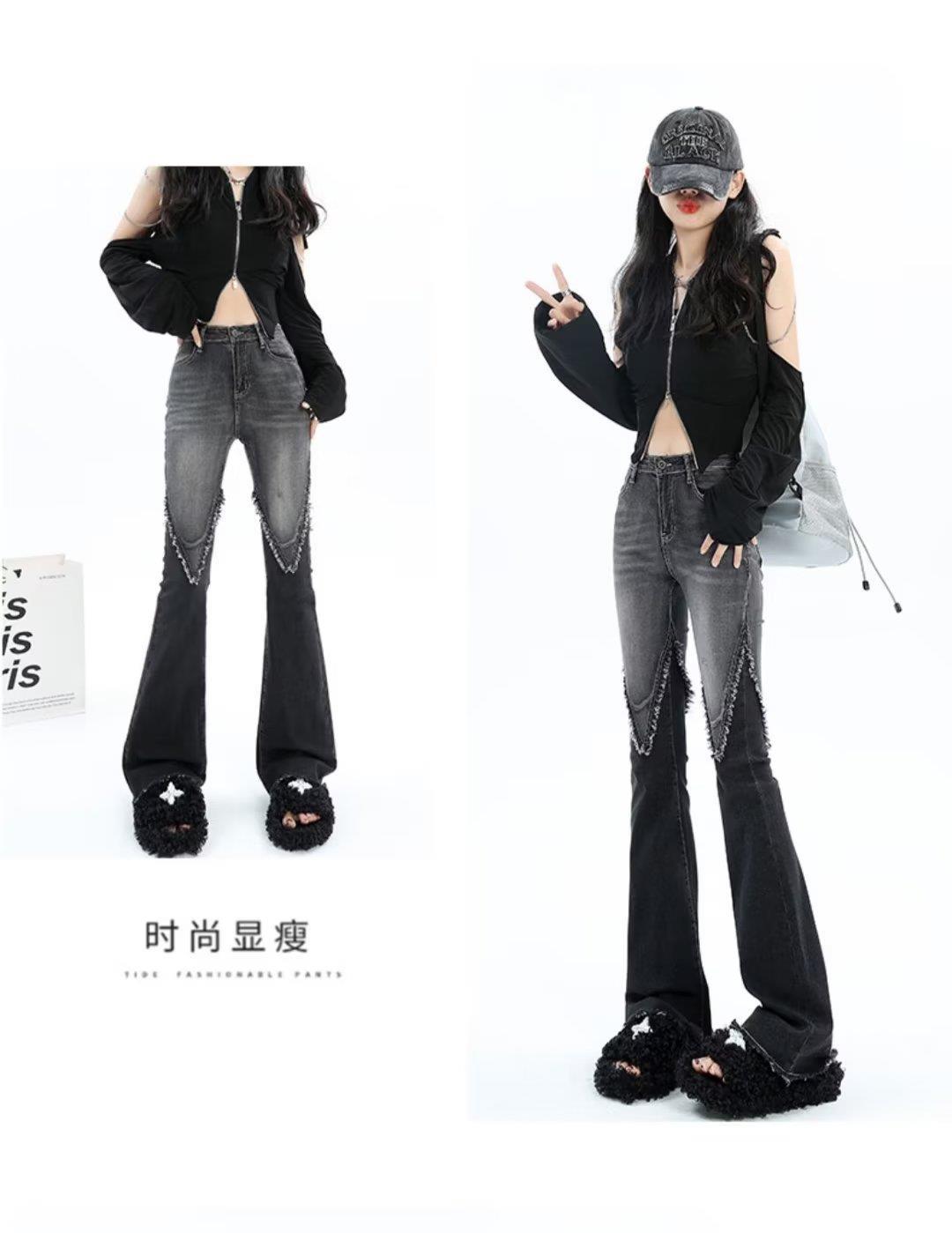 Vaqueros de otoño para mujer, ajustados, sexys y sexys, vaqueros retro con abertura y tiras con borde sin rematar para mujer, verano