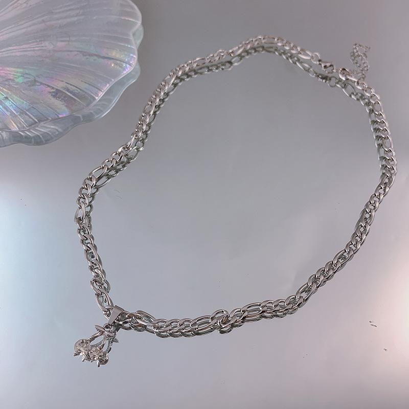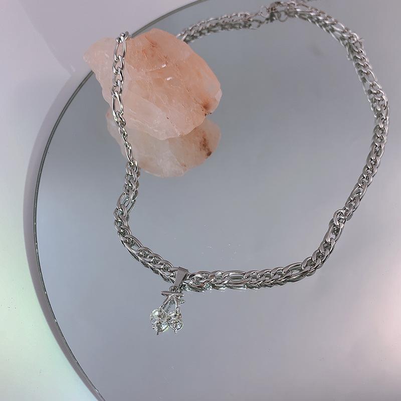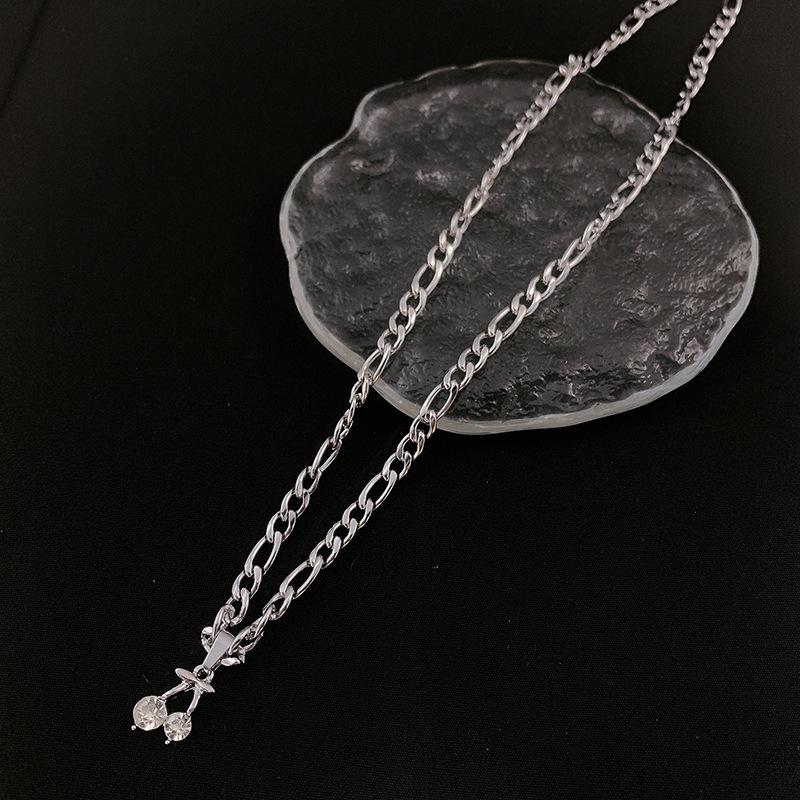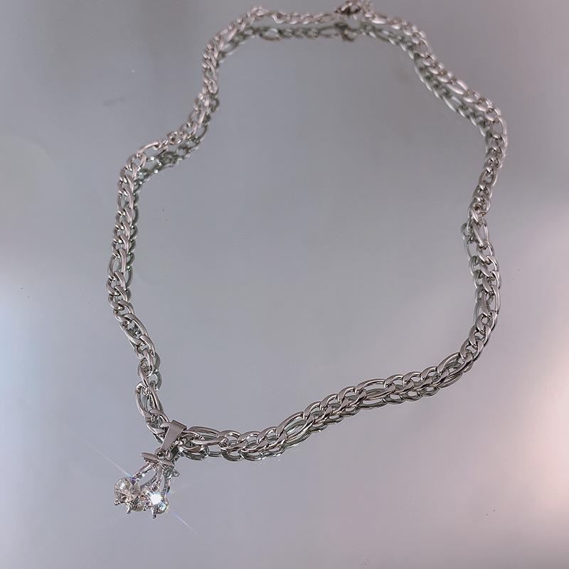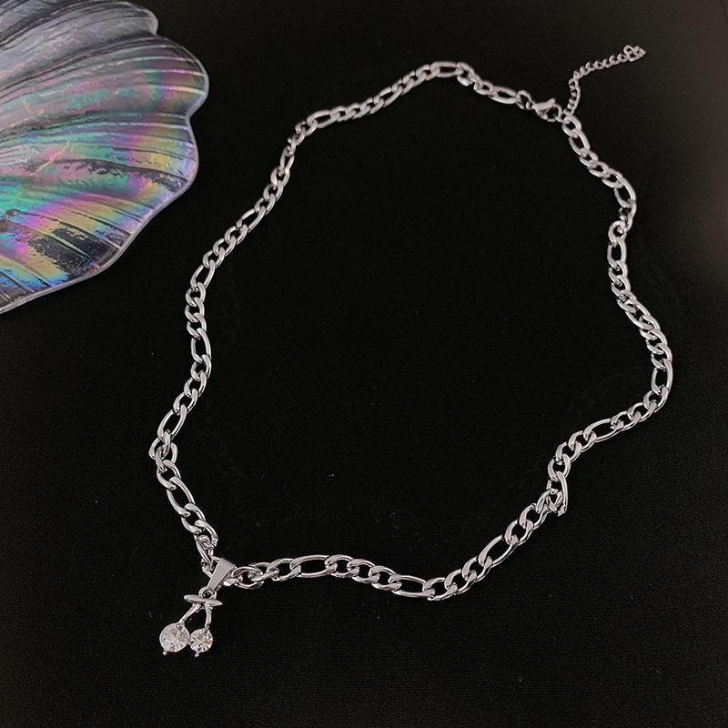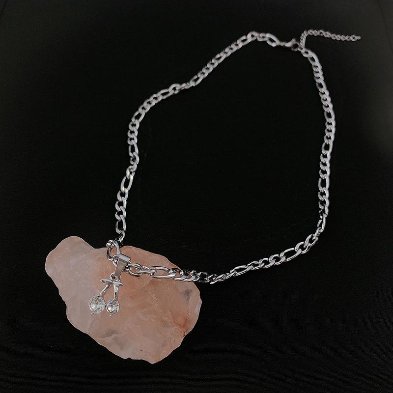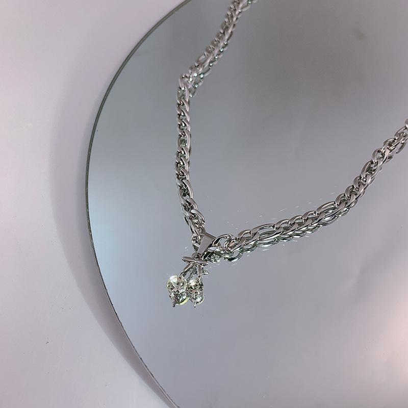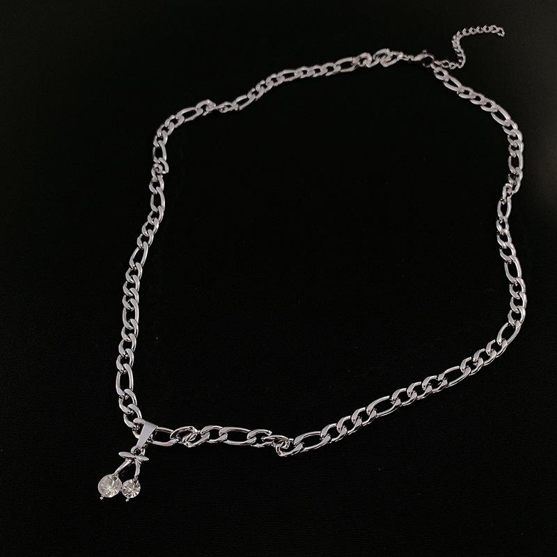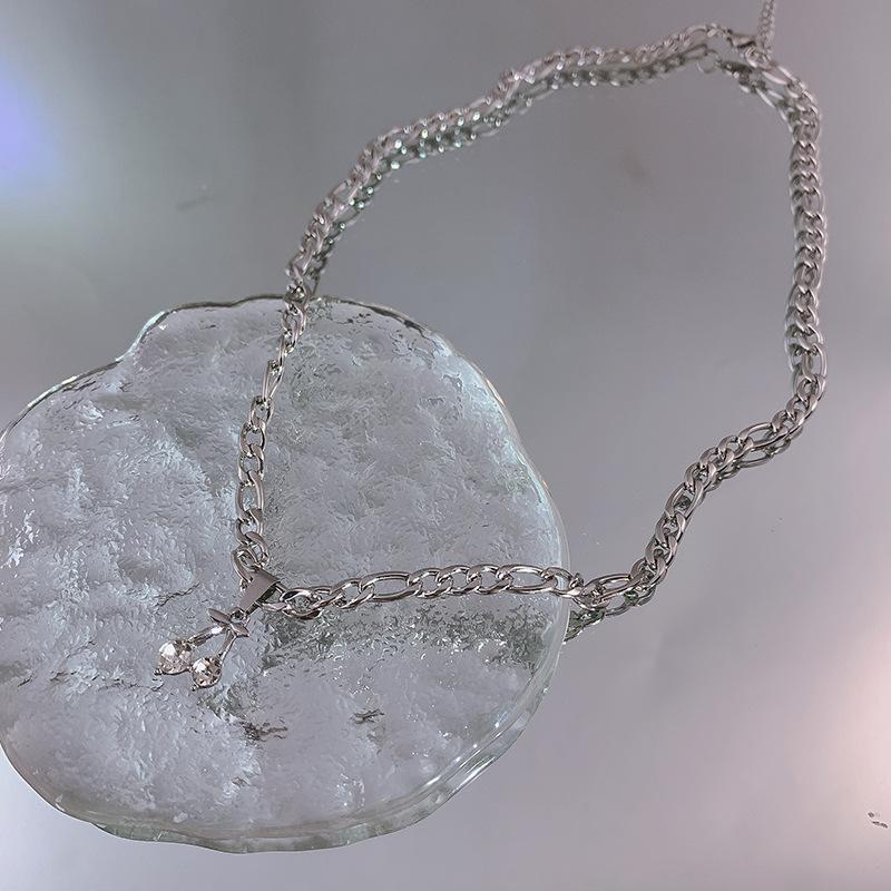 Collar de acero de titanio con diamantes de imitación color cereza, ligero, lujoso, sencillo, combinable con todo, cadena elegante y moderna para clavícula, cadena para cuello de suéter.