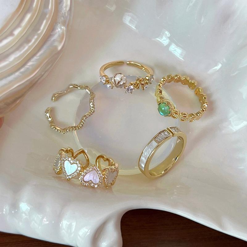 Flower zircon ring j0003 silver, Flower pearl zircon ring j0004 gold, Epoxy zircon ring j0005 silver, Epoxy zi...