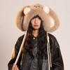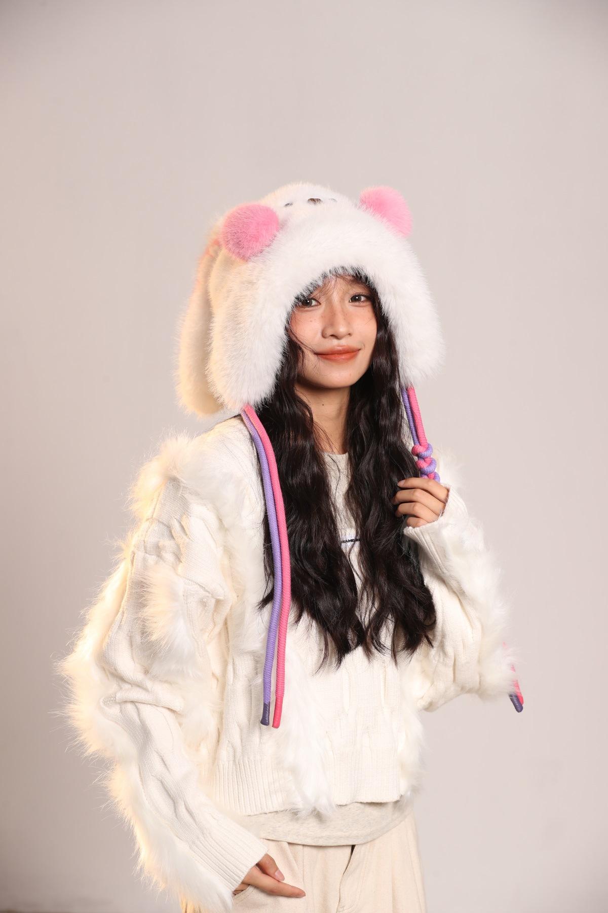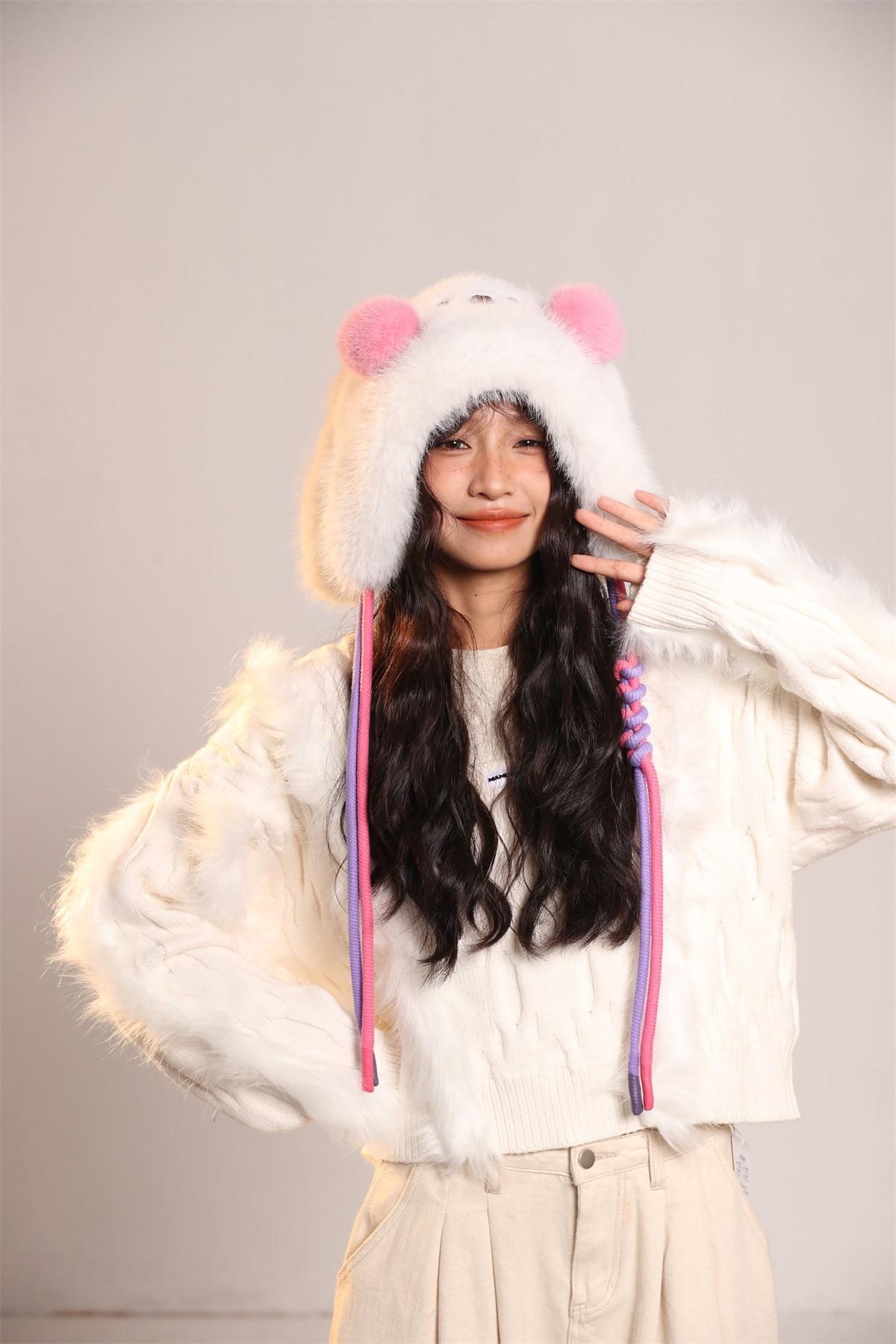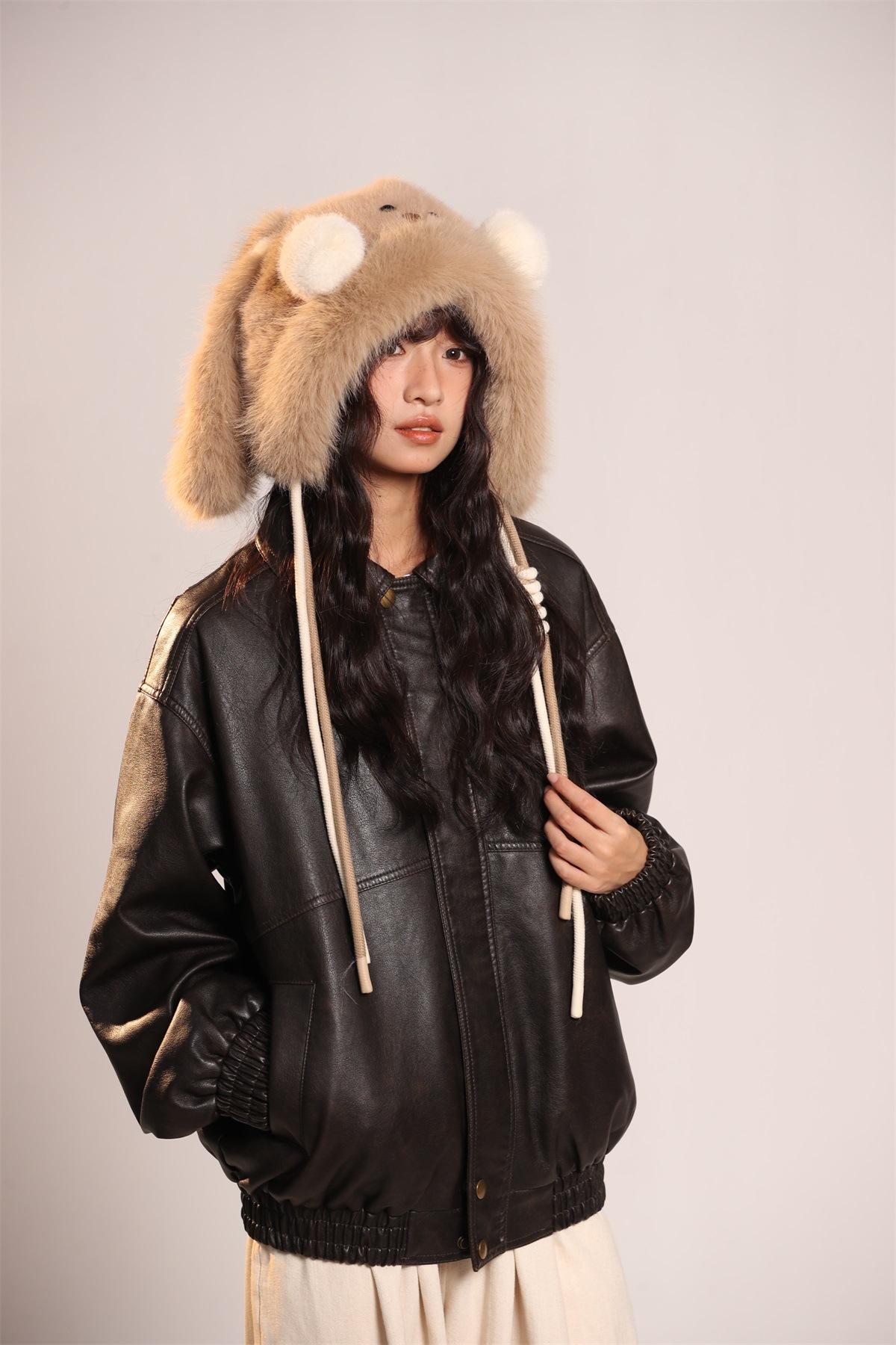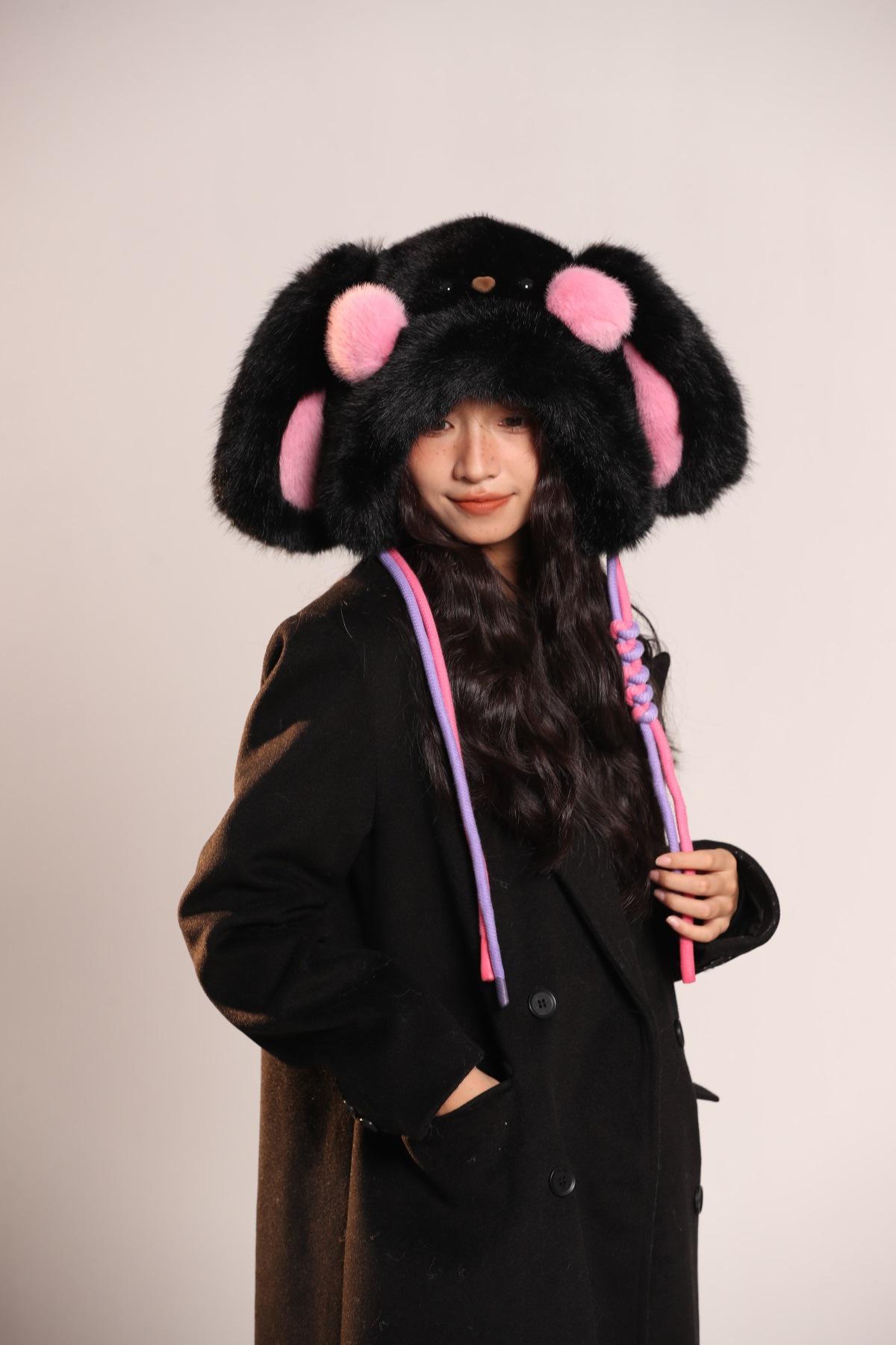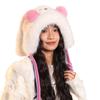 Gorro de felpa con orejas de conejo japonesas, bonito y dulce, para mujer, cálido, para otoño e invierno, con protección para las orejas, resistente al frío
