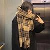 Bufanda de invierno de alta gama para mujer, estilo coreano, a la moda, a cuadros, combinable, larga, gruesa, con borlas, cálida, estilo coreano