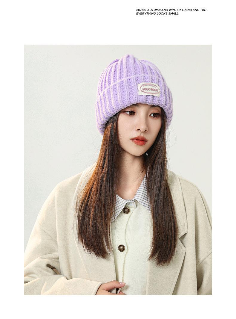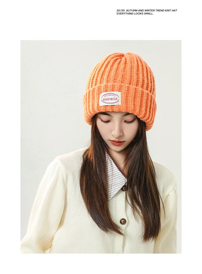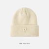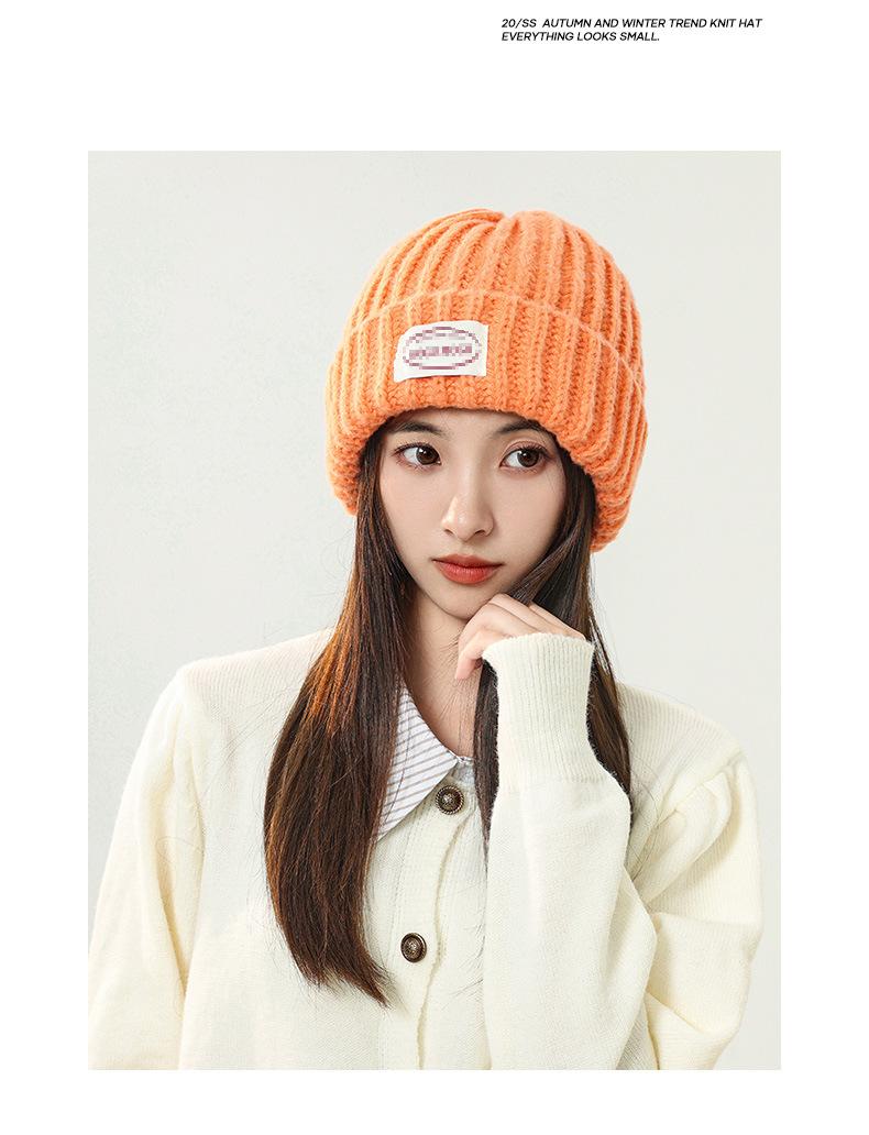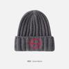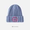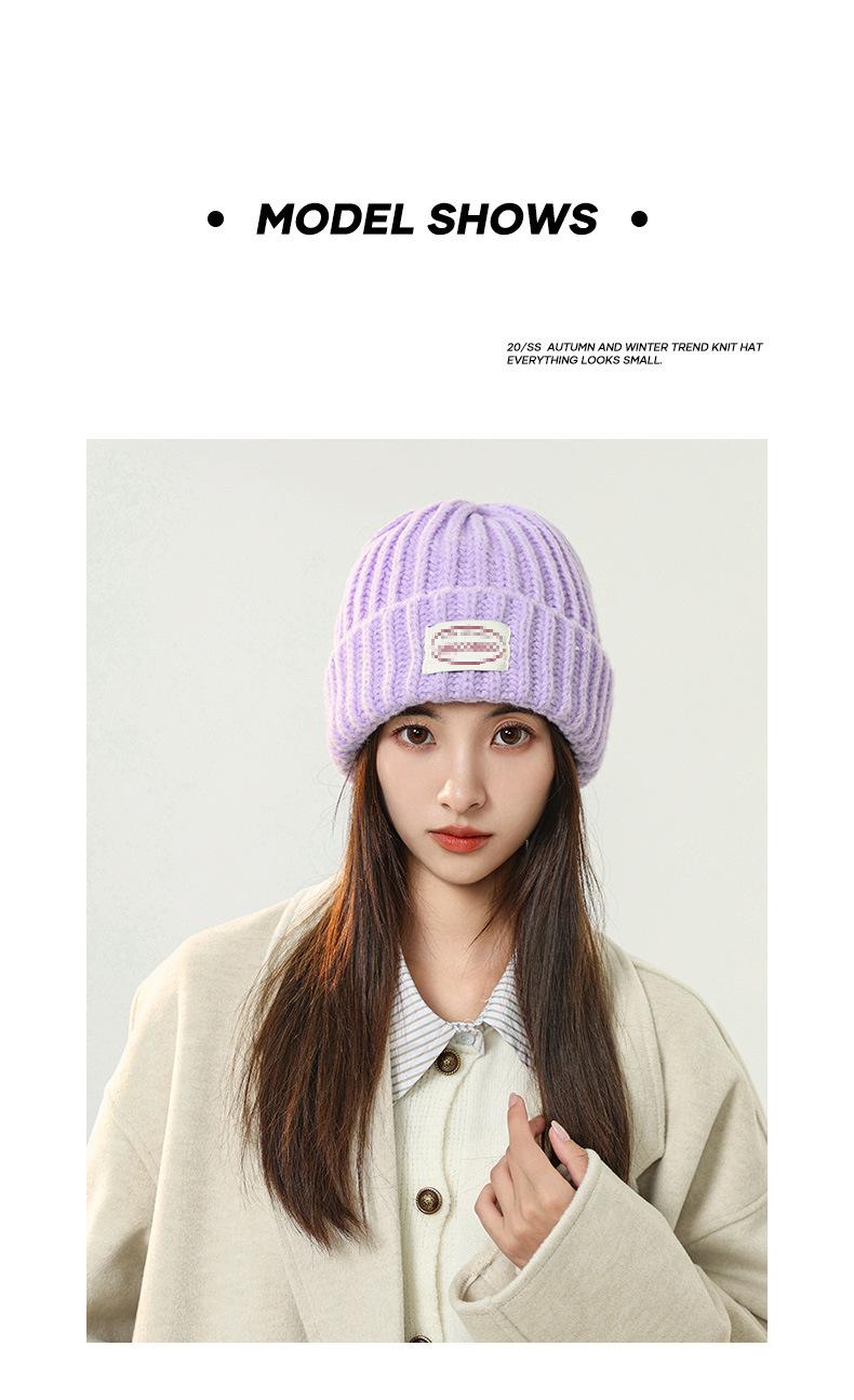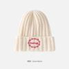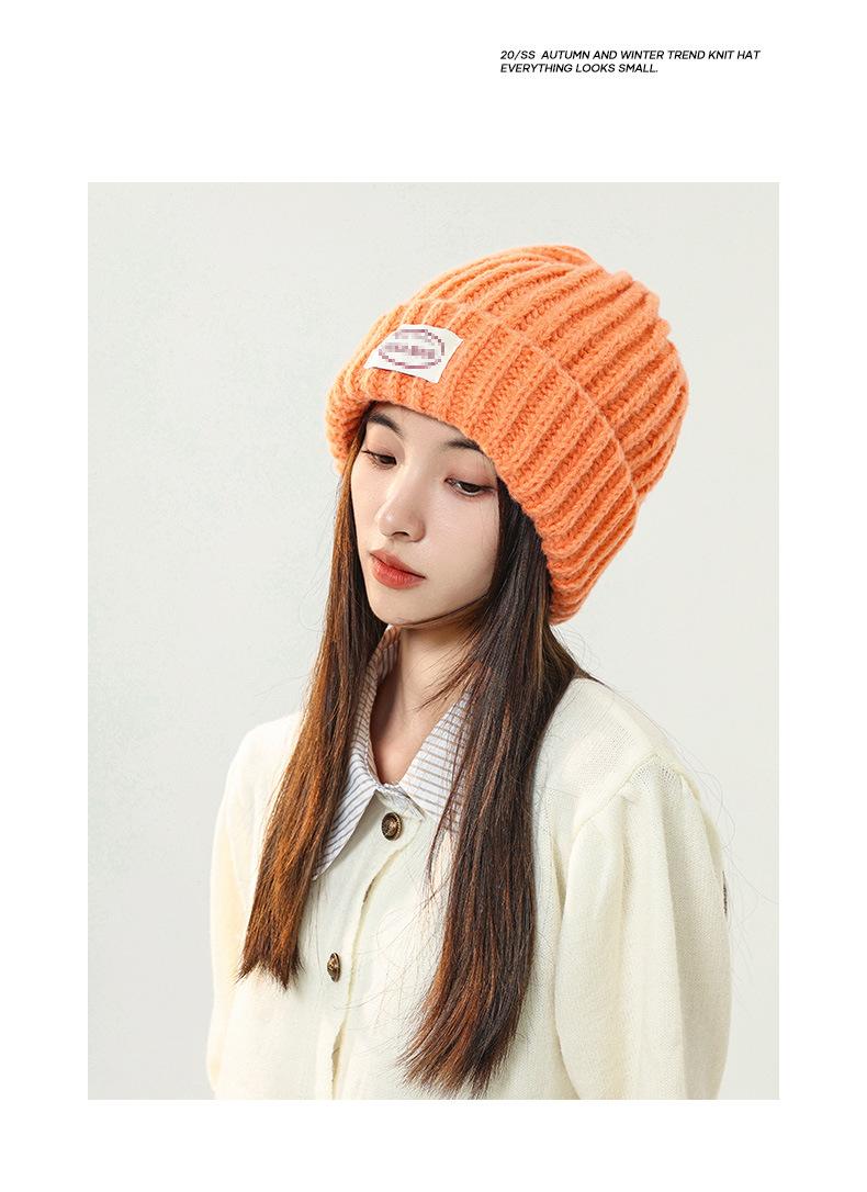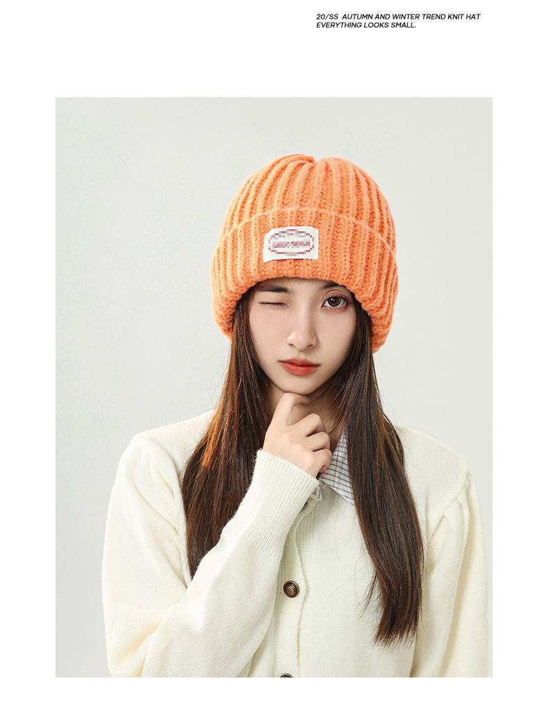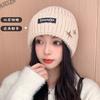 Gorro de lana con parche de letras para mujer, otoño e invierno, con aspecto de cara, pequeño, resistente al viento, con protección para los oídos, gorro de punto cálido y a la moda para todo tipo de ocasiones.