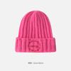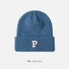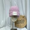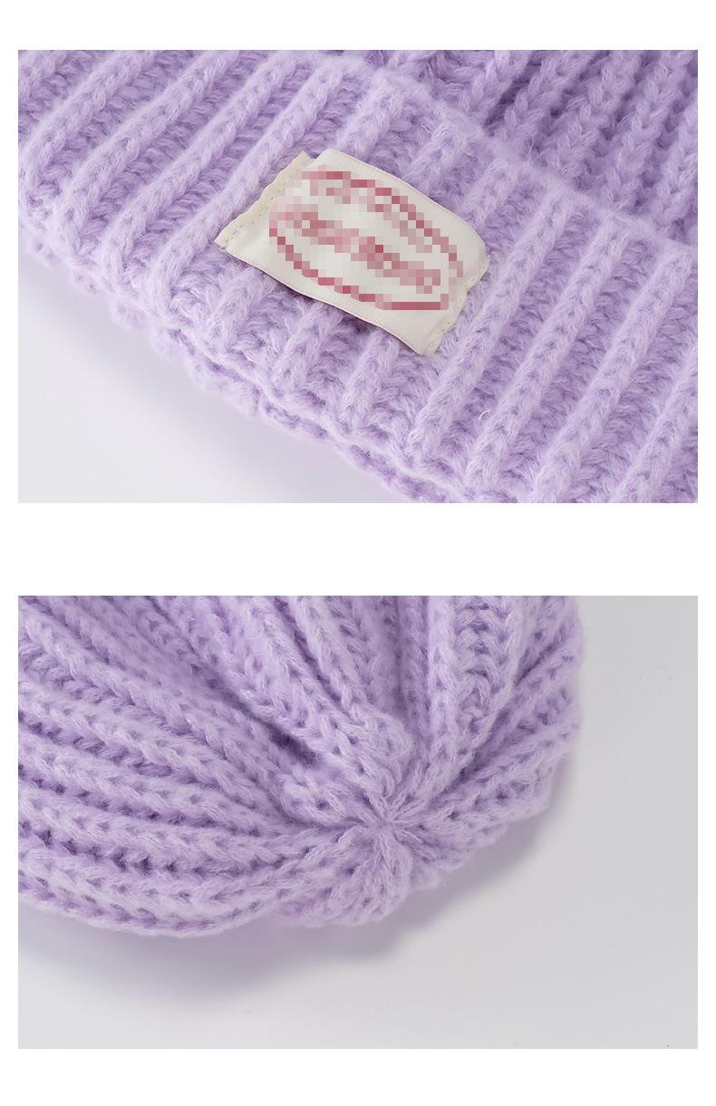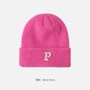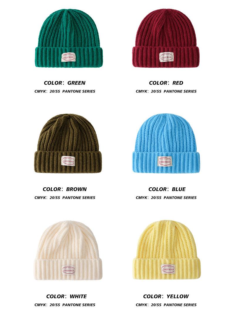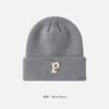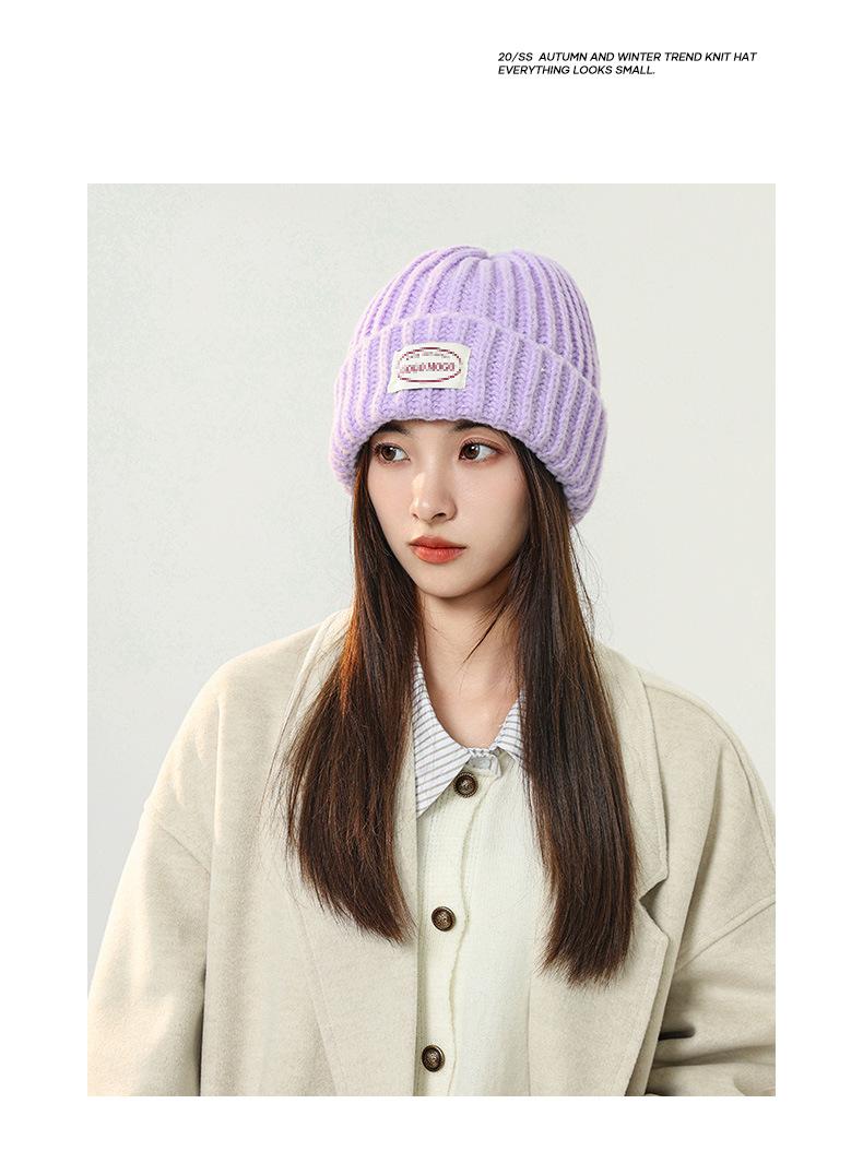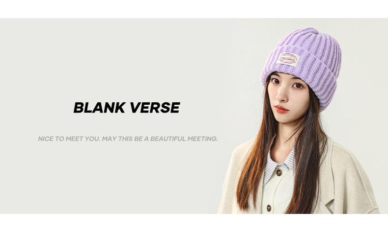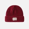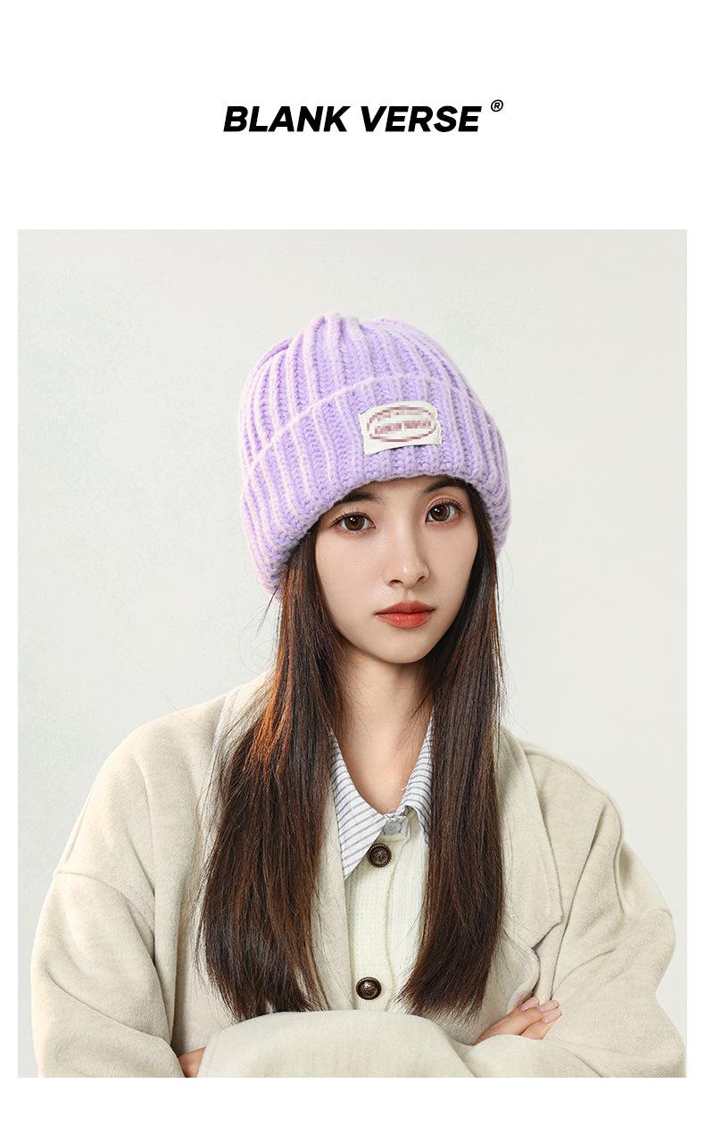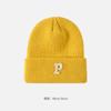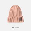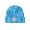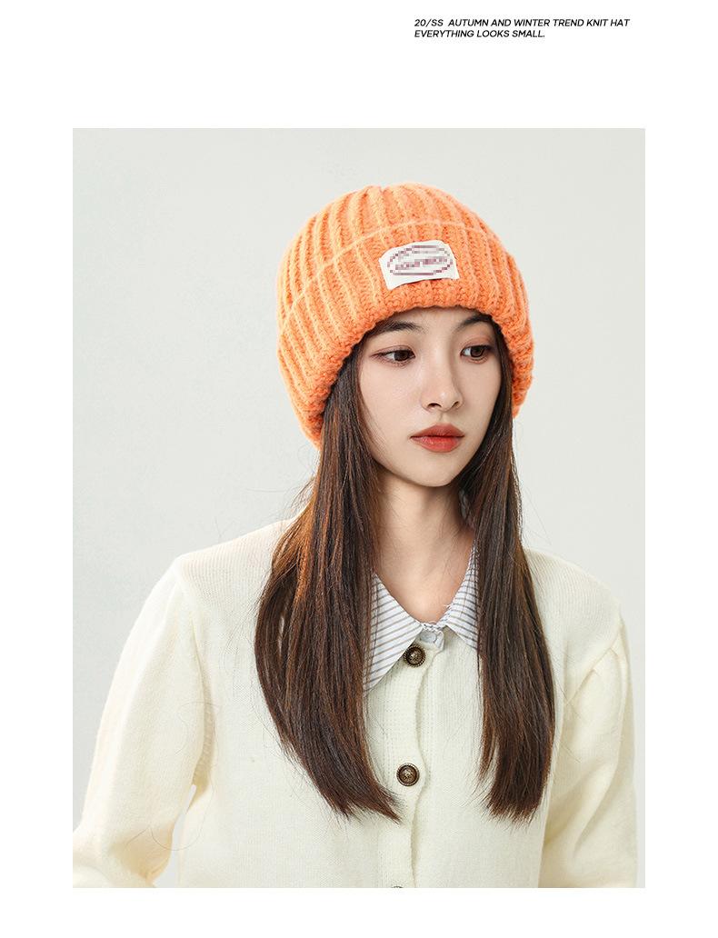 Gorro de lana con parche de letras para mujer, otoño e invierno, con aspecto de cara, pequeño, resistente al viento, con protección para los oídos, gorro de punto cálido y a la moda para todo tipo de ocasiones.