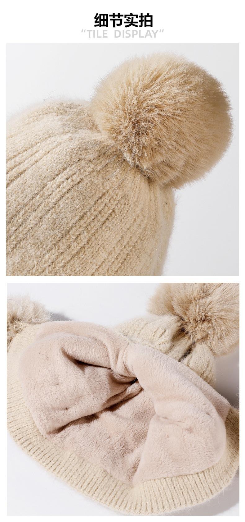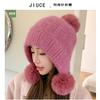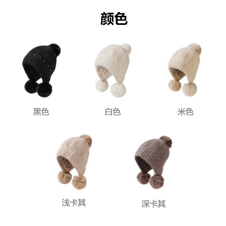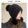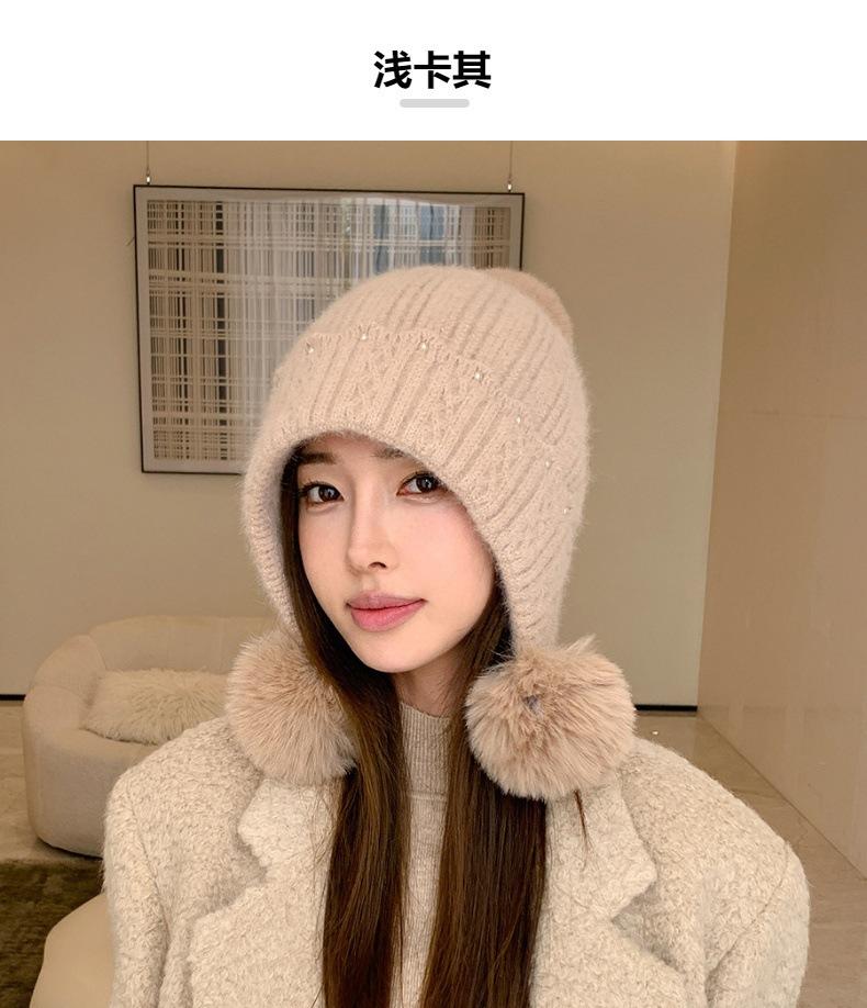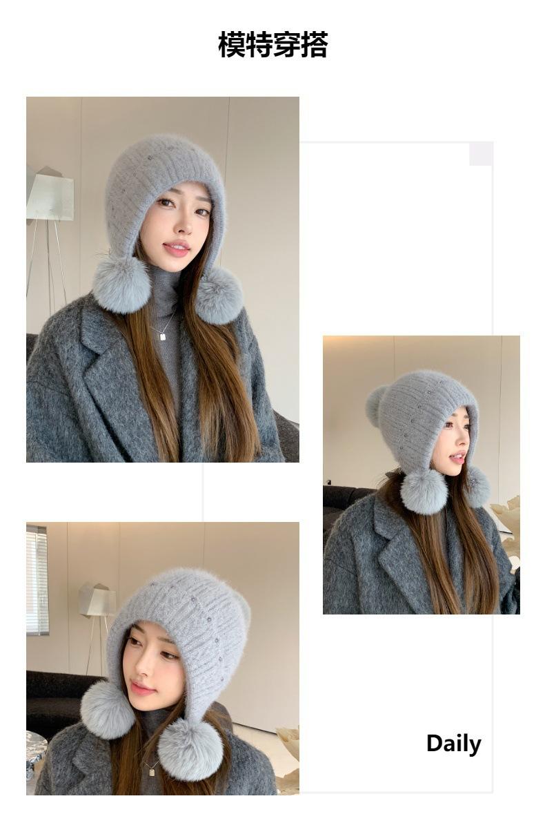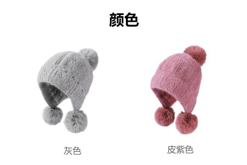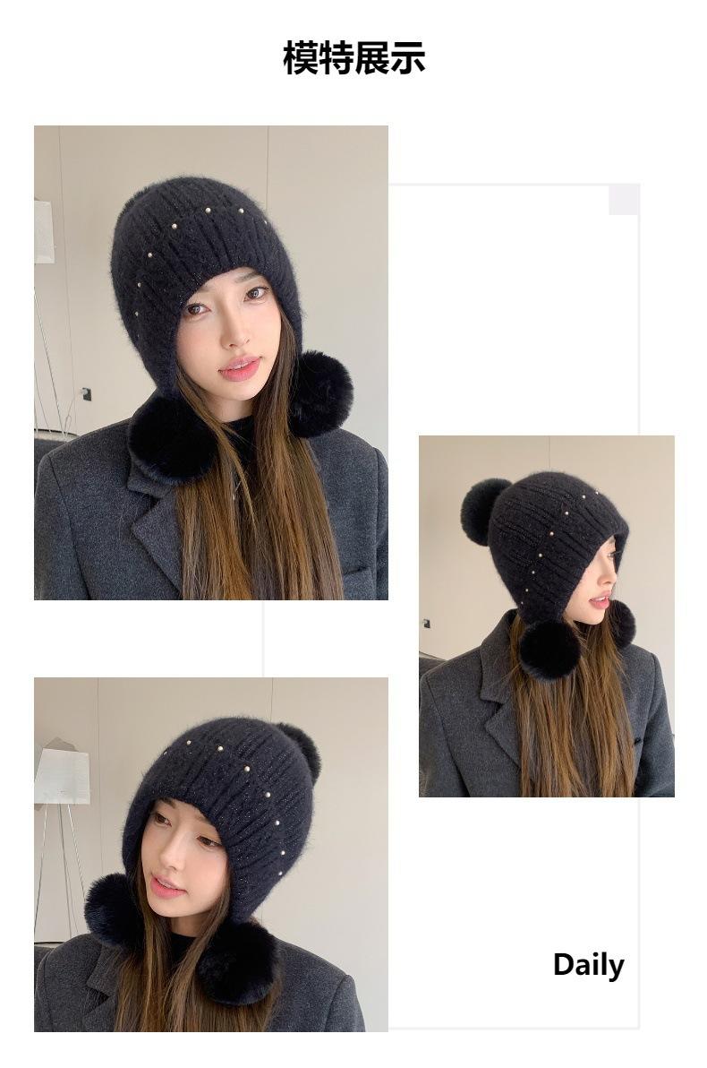Gorro Baotou de punto a rayas para mujer, gorro de invierno a la moda, para otoño e invierno, con protección para las orejas, cálido gorro de lana con forro polar y tres bolas de pelo.