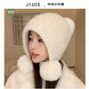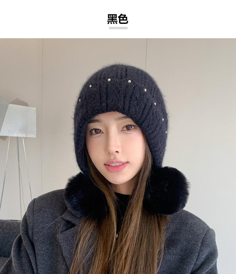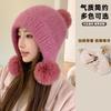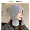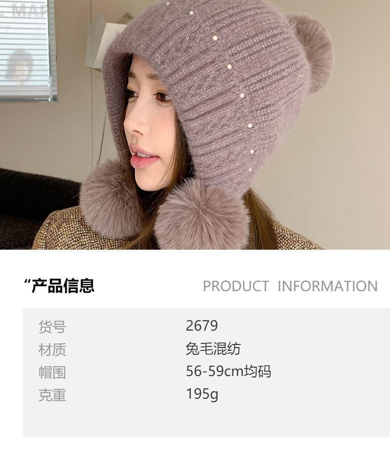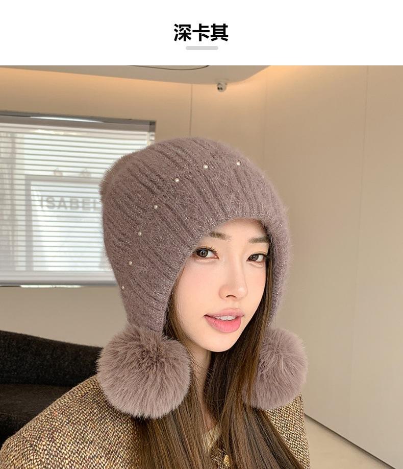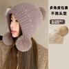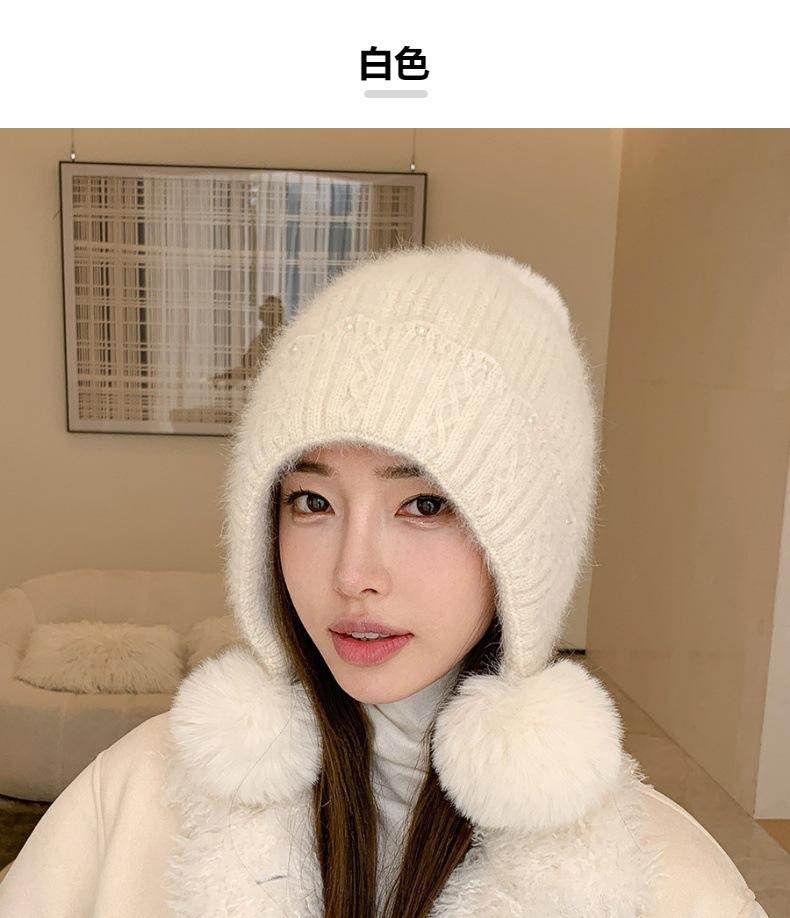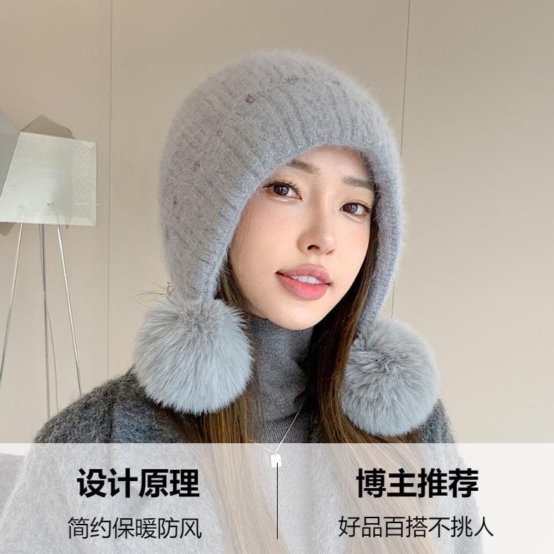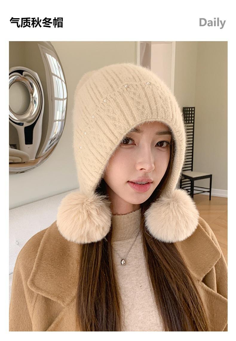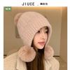 Gorro Baotou de punto a rayas para mujer, gorro de invierno a la moda, para otoño e invierno, con protección para las orejas, cálido gorro de lana con forro polar y tres bolas de pelo.