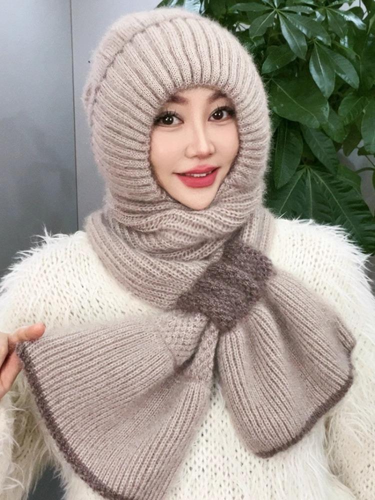 Versatile, Elegant, Minimalist, Casual style, Fashion ol, Minimalist, Hat scarf all-in-one neck protector ladieswear hat