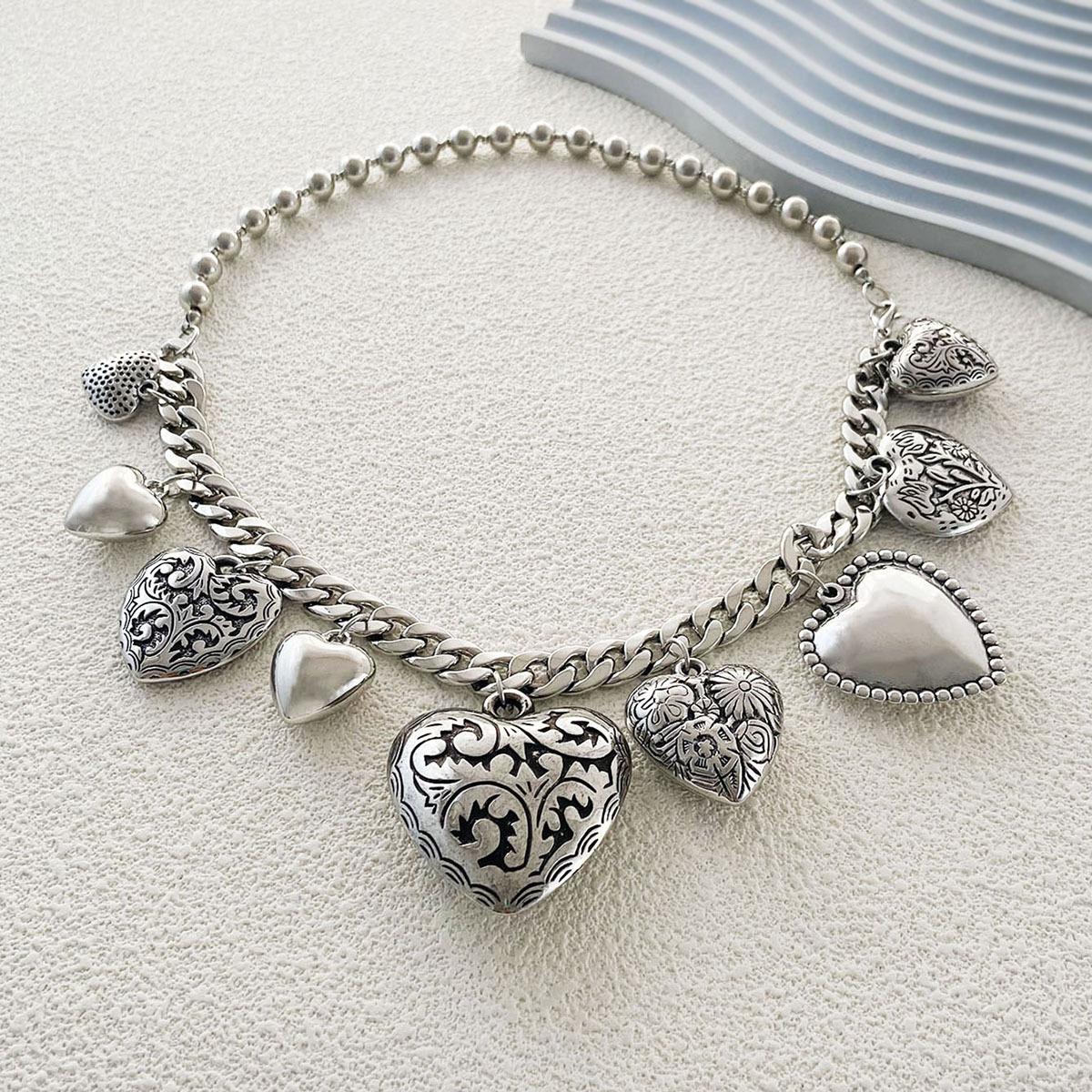 Collar con colgante de corazón multidimensional, estilo hip-hop, punk, retro y frío, estilo urbano sencillo para mujer.