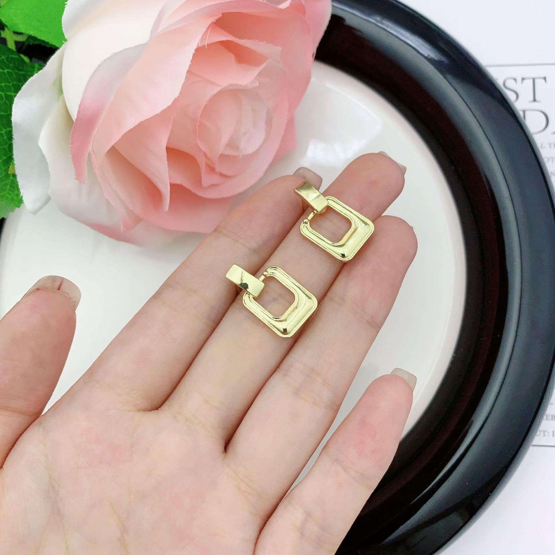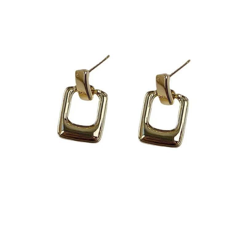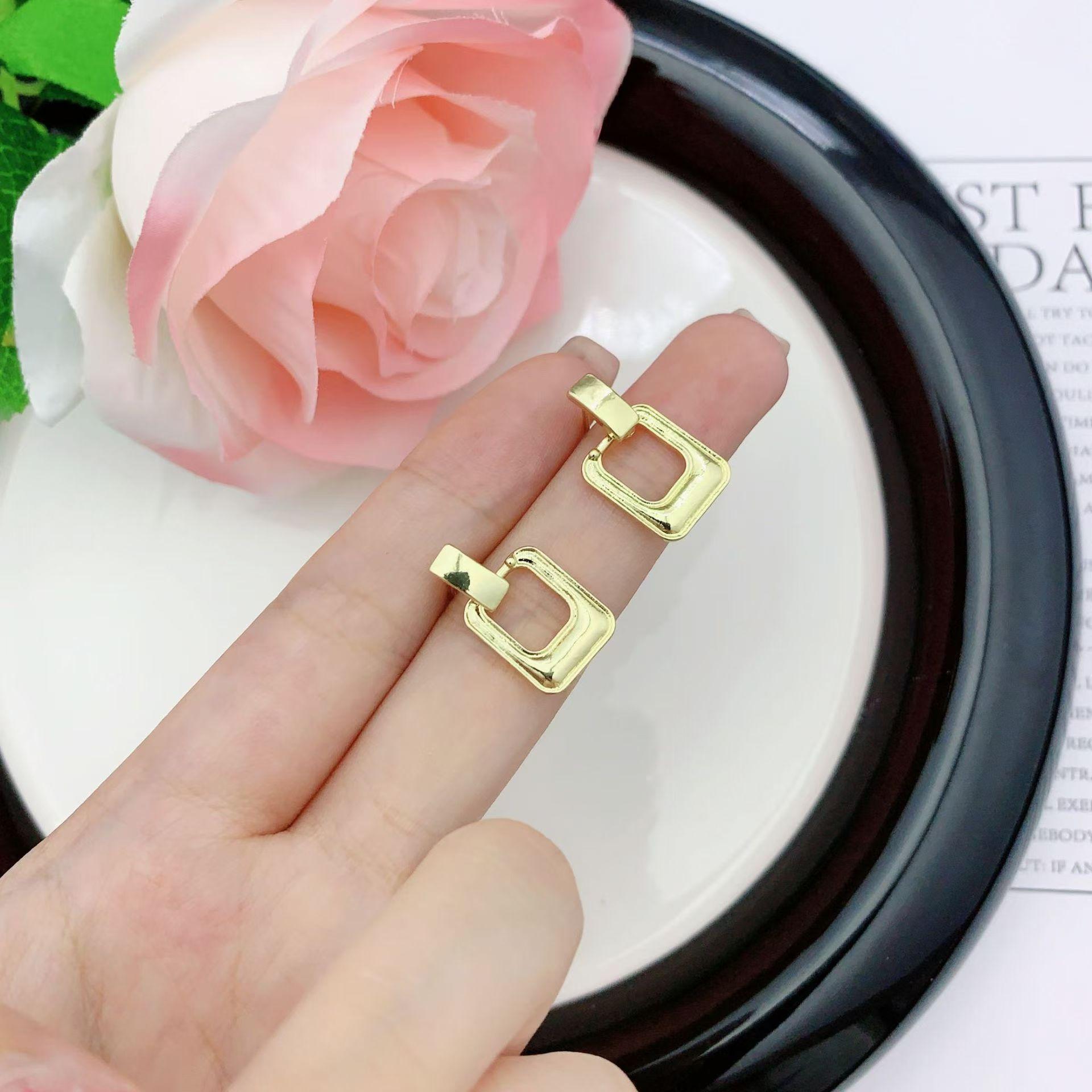 Pendientes cuadrados geométricos sencillos y elegantes para mujer, chapados en plata, con aguja hueca, ligeros, de lujo, combinables, exquisitos pendientes cuadrados pequeños.