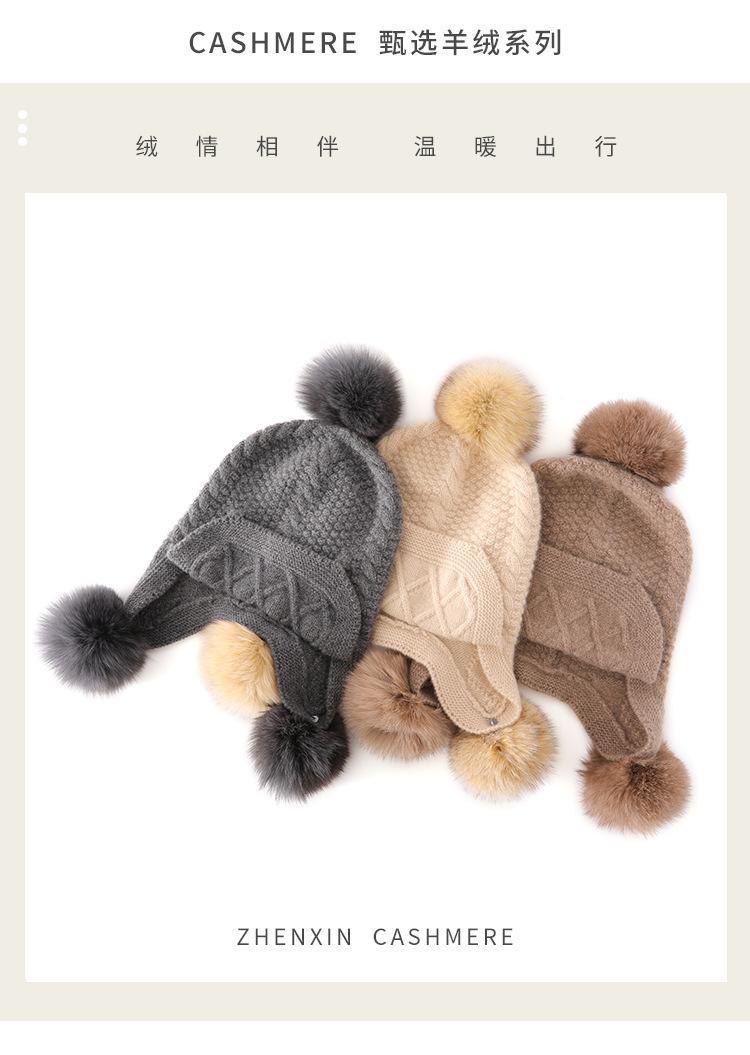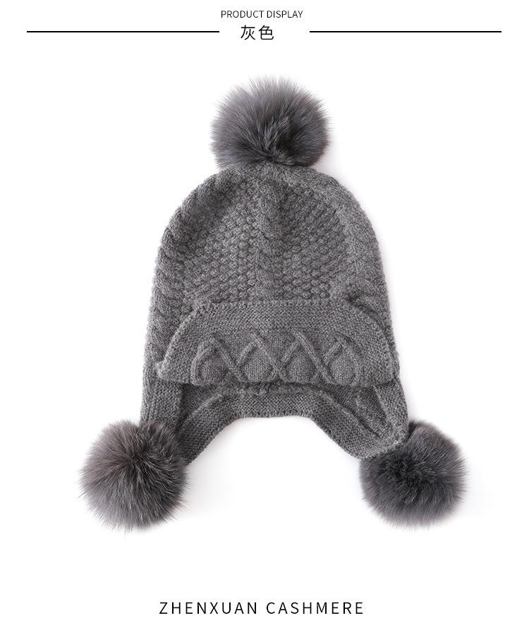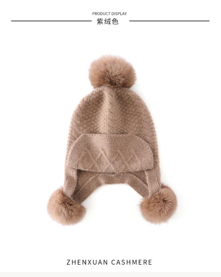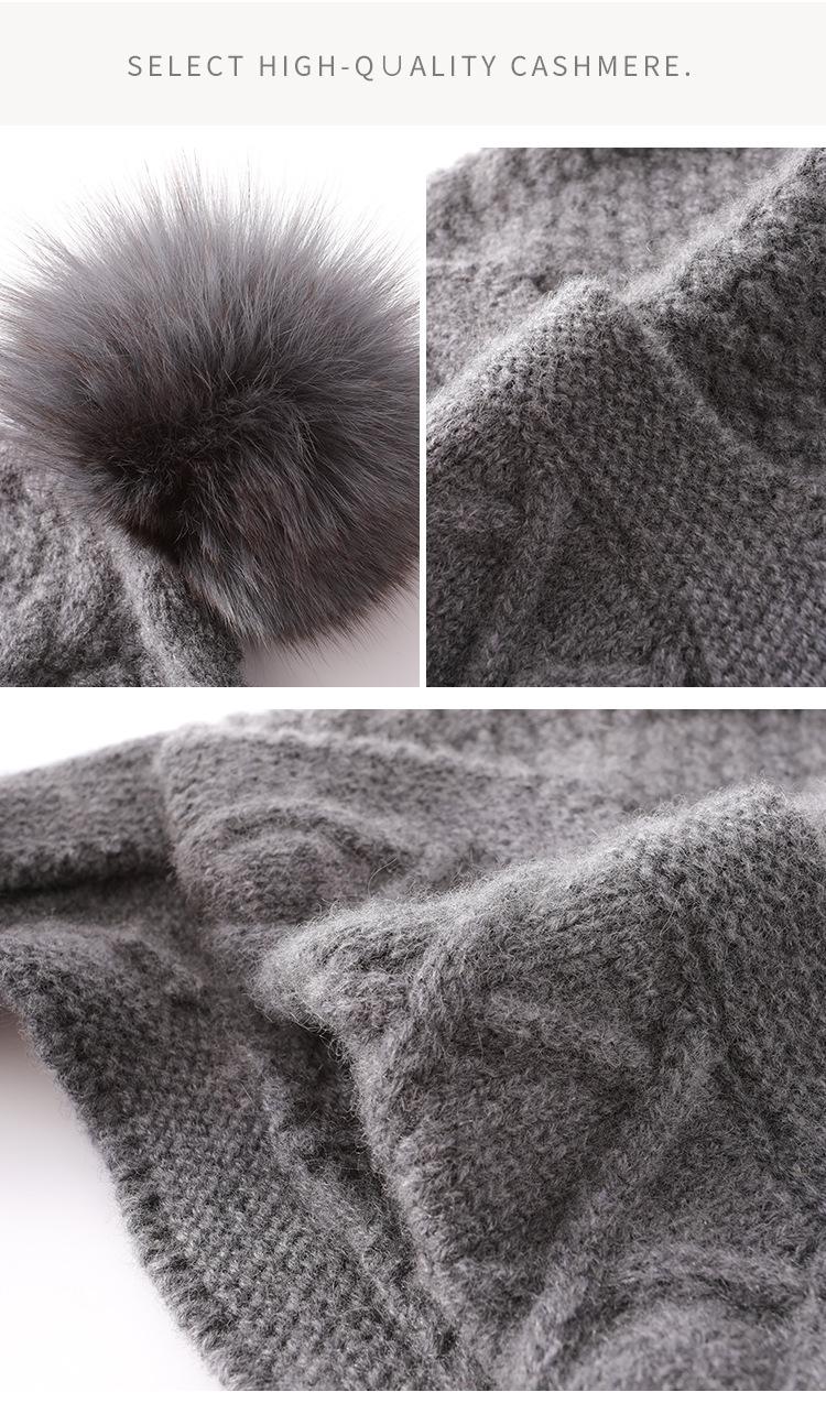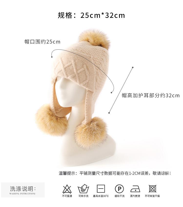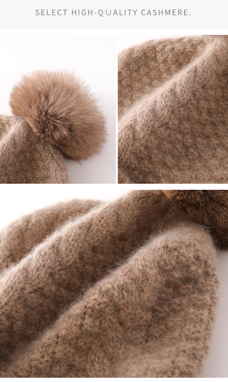 Gorro de Cachemira 2025 Otoño e Invierno Nuevo Gorro de Pila Casual Trenzado con Bola de Piel para Protección de Orejas Gorro de Punto Engrosado