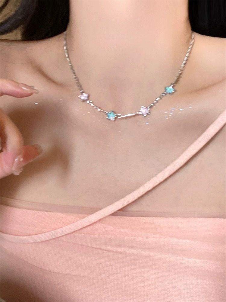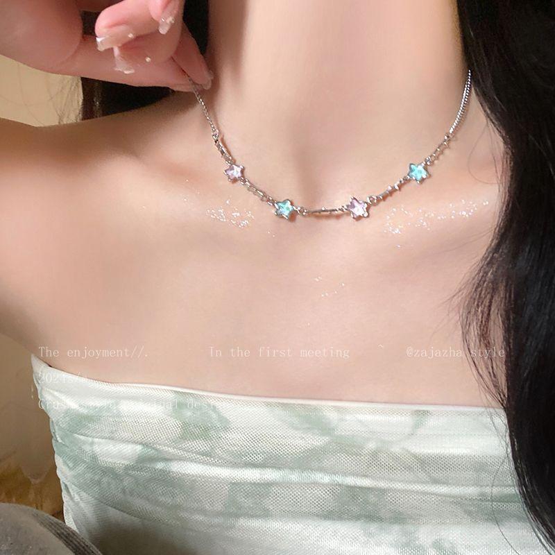 Collar de diamantes con destellos de estrellas coloridas para mujer, estilo dopamina de verano, cadena de clavícula con nicho, collar elegante y moderno.