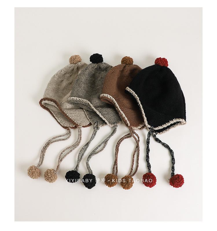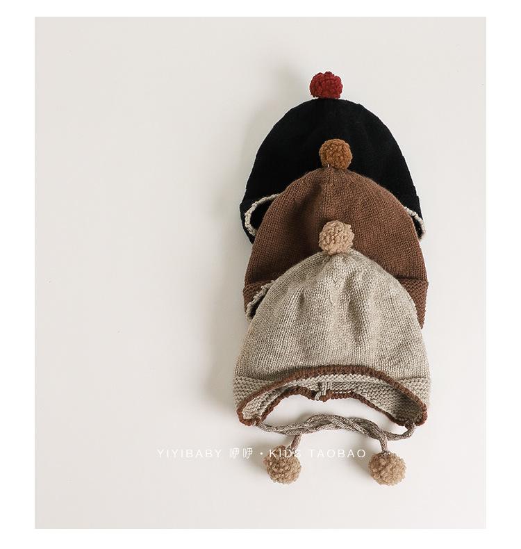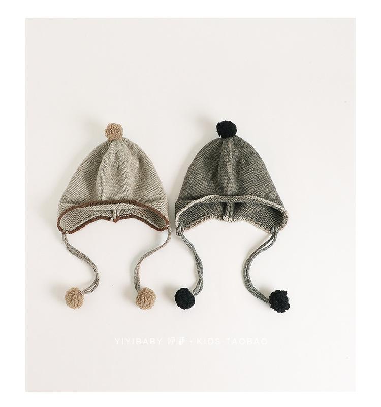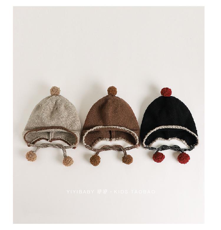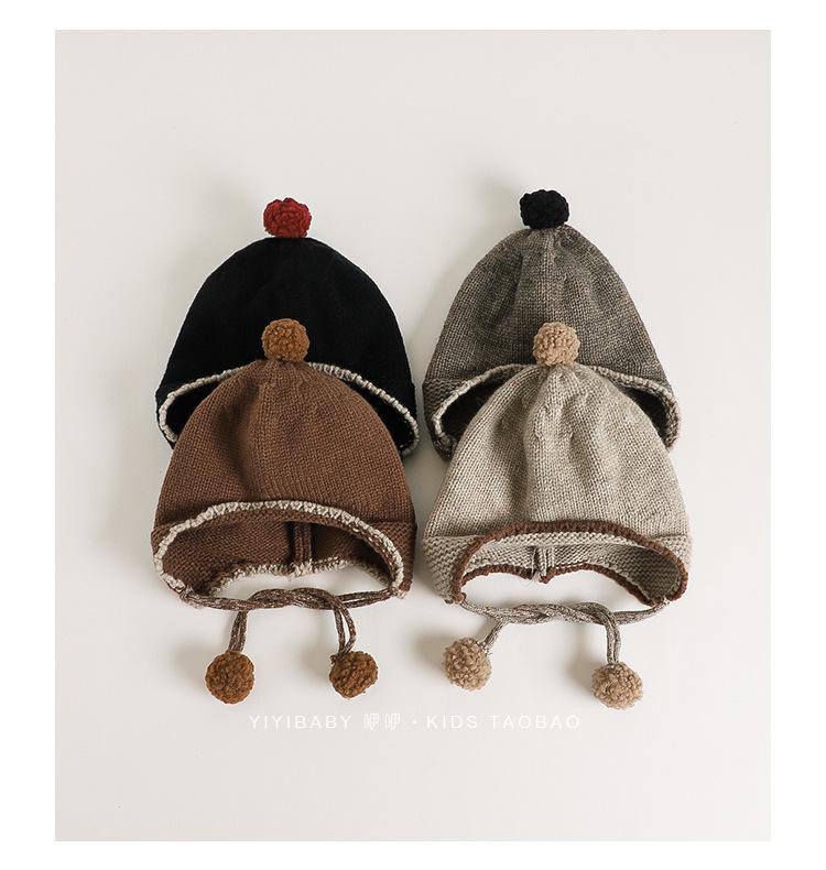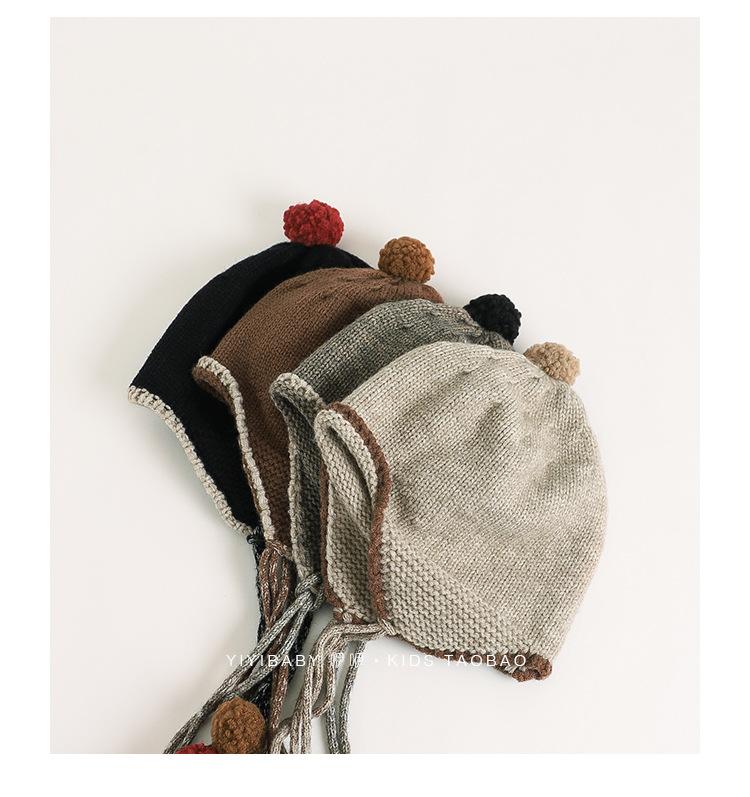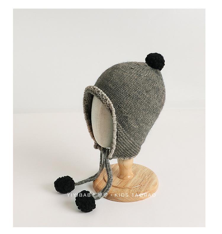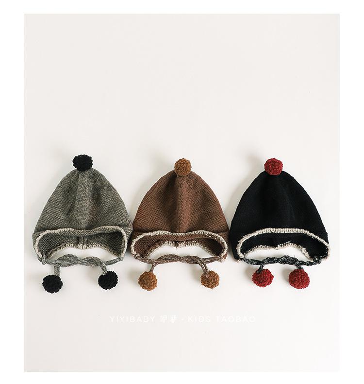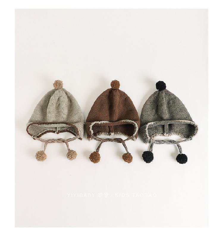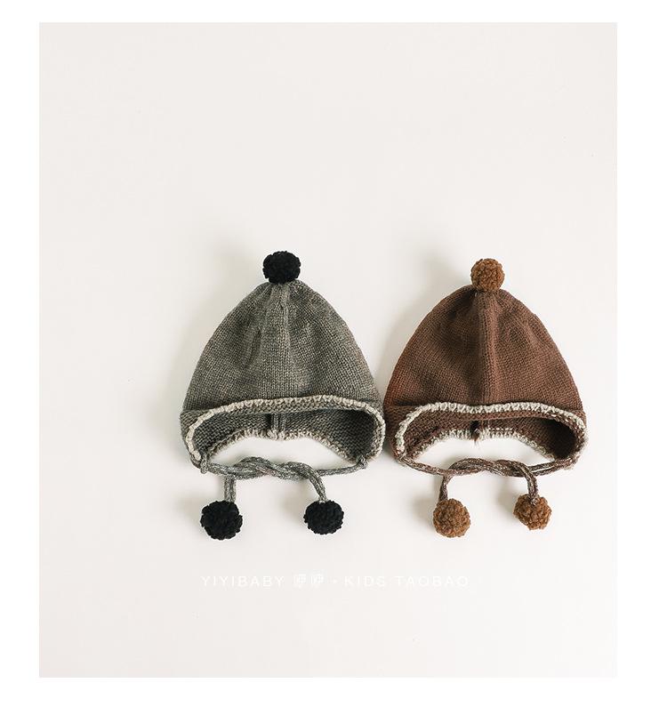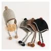 Sombrero para Niños Otoño e Invierno Estilo Coreano Estilo Extranjero Protección para las Orejas Gorro de Punto Lindo Pompon de Pelo Sombrero Cálido de Lana para Bebé para Niños y Niñas