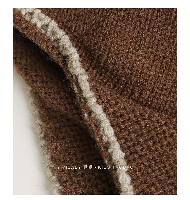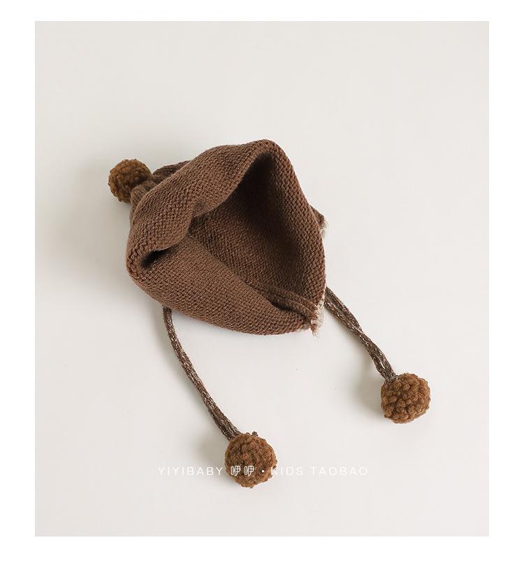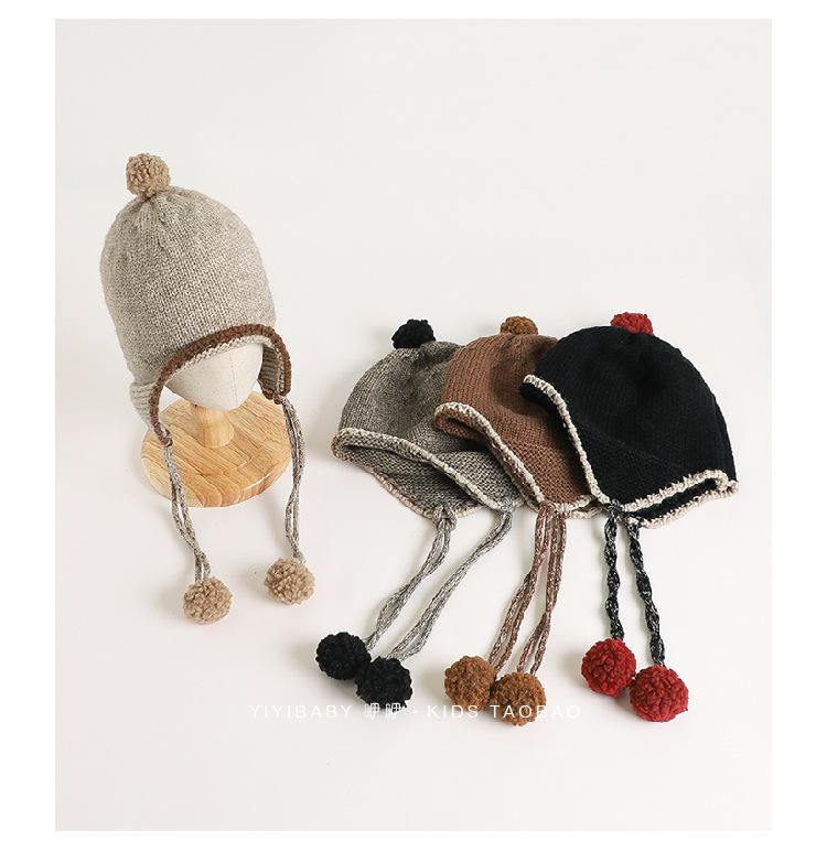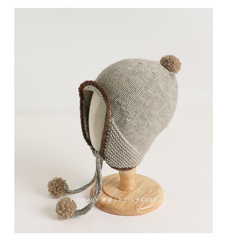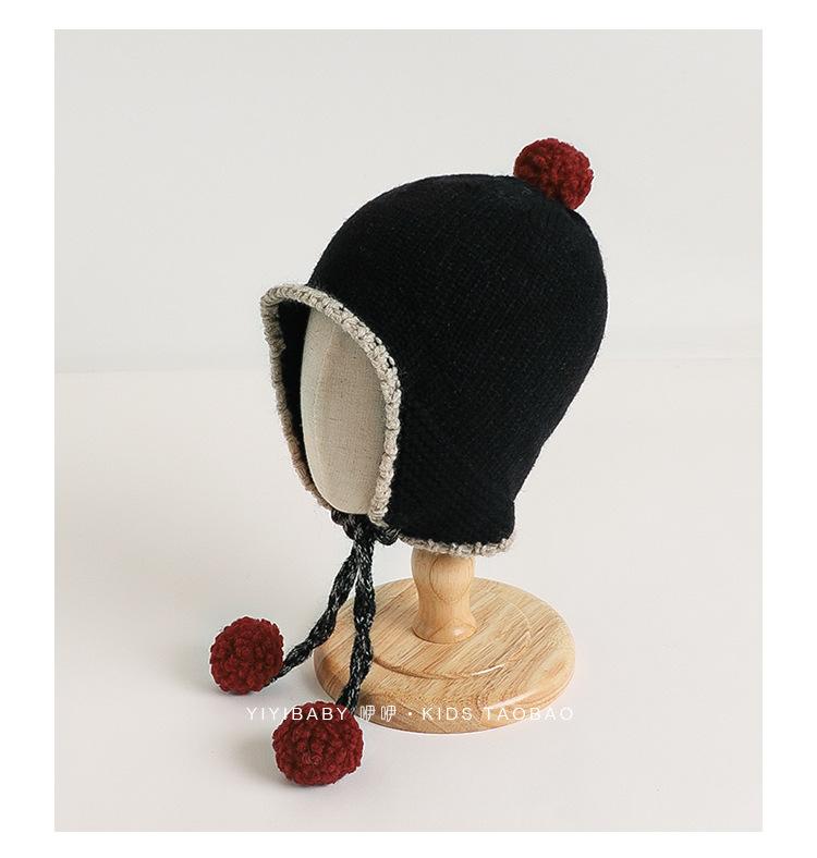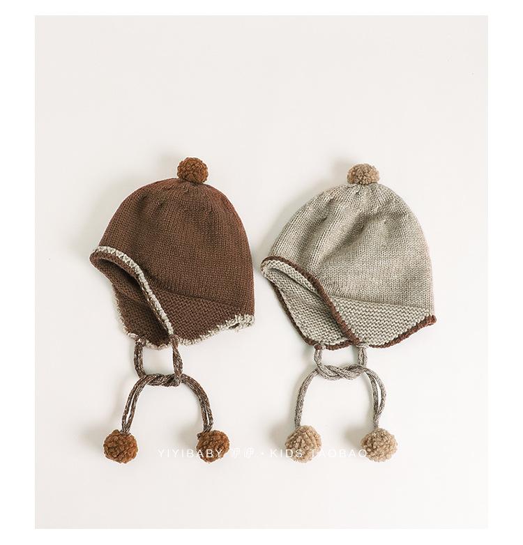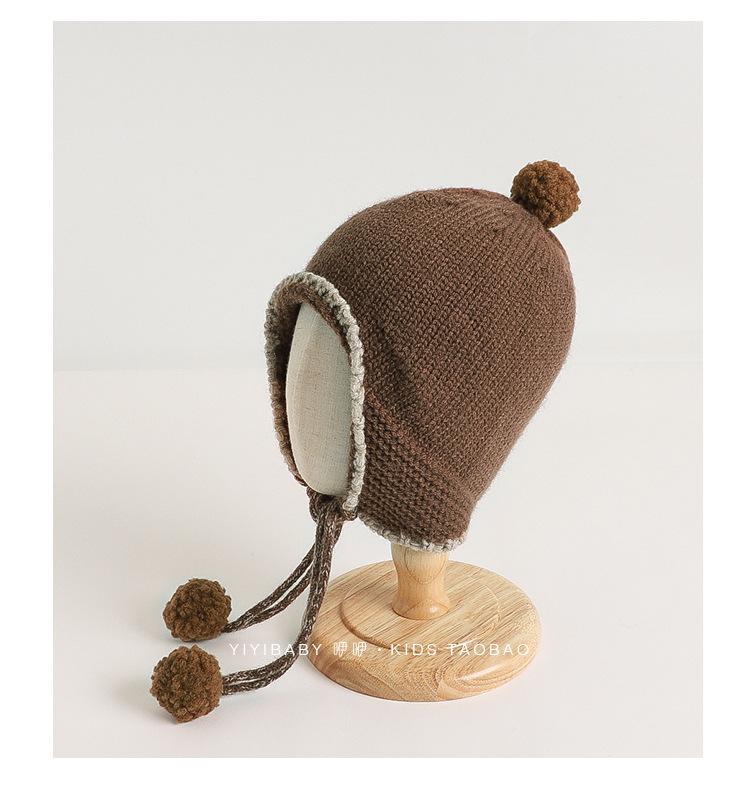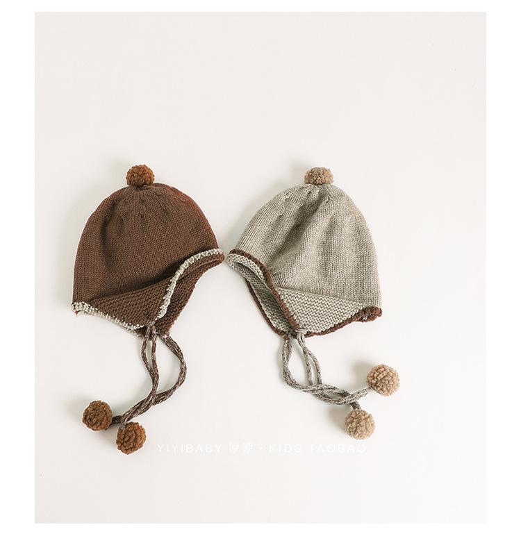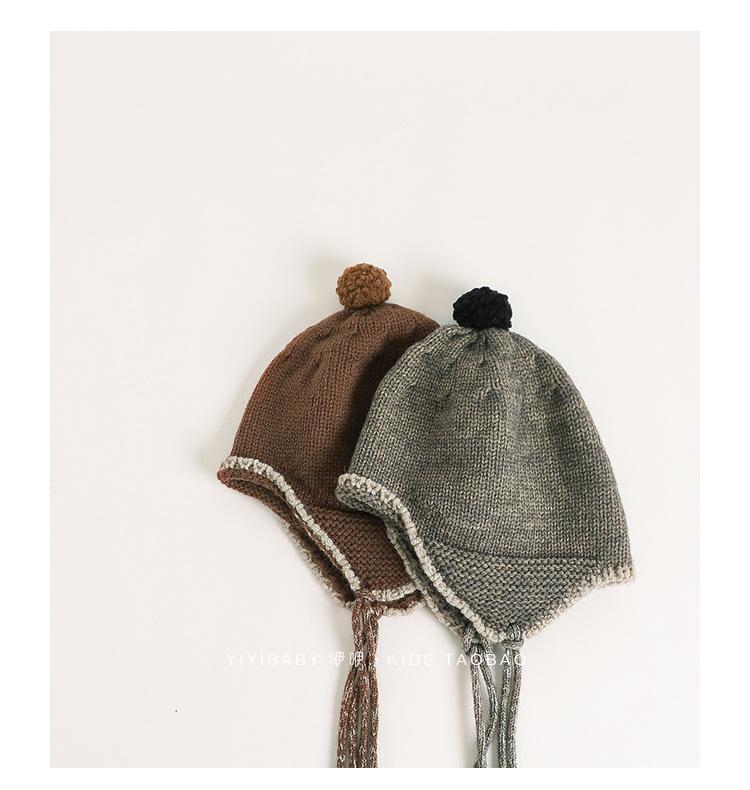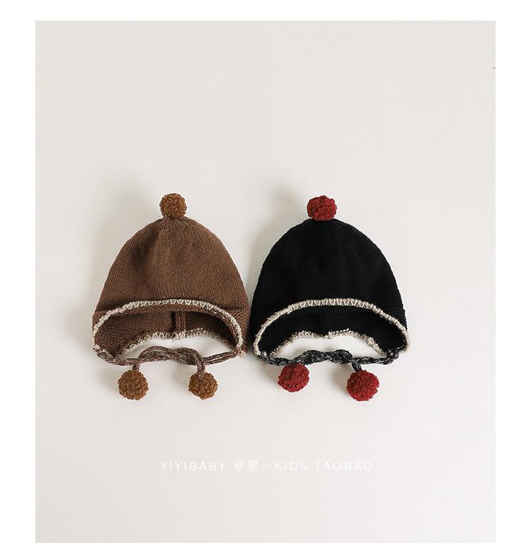Sombrero para Niños Otoño e Invierno Estilo Coreano Estilo Extranjero Protección para las Orejas Gorro de Punto Lindo Pompon de Pelo Sombrero Cálido de Lana para Bebé para Niños y Niñas