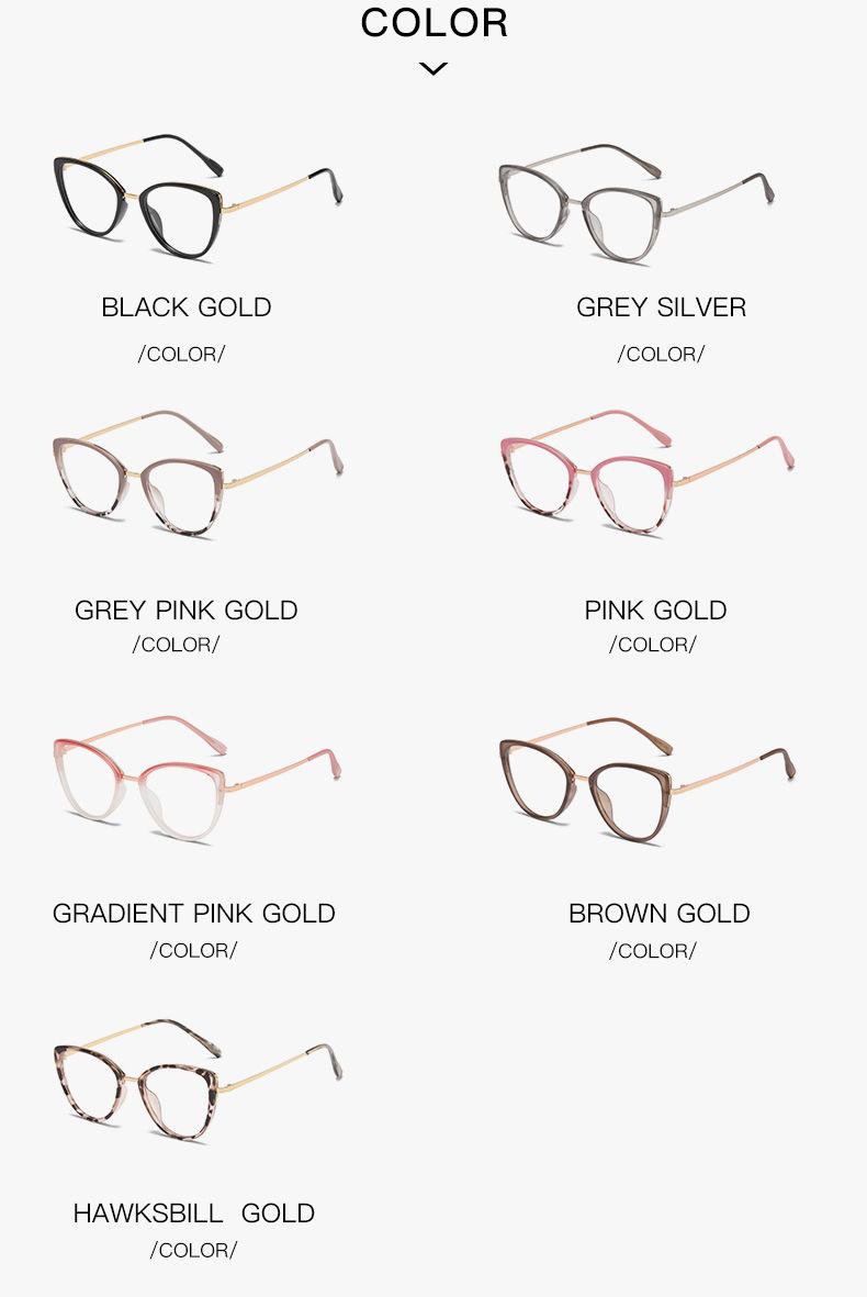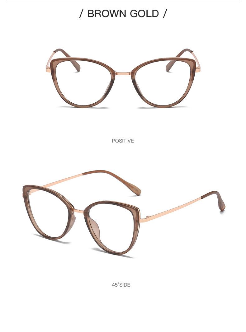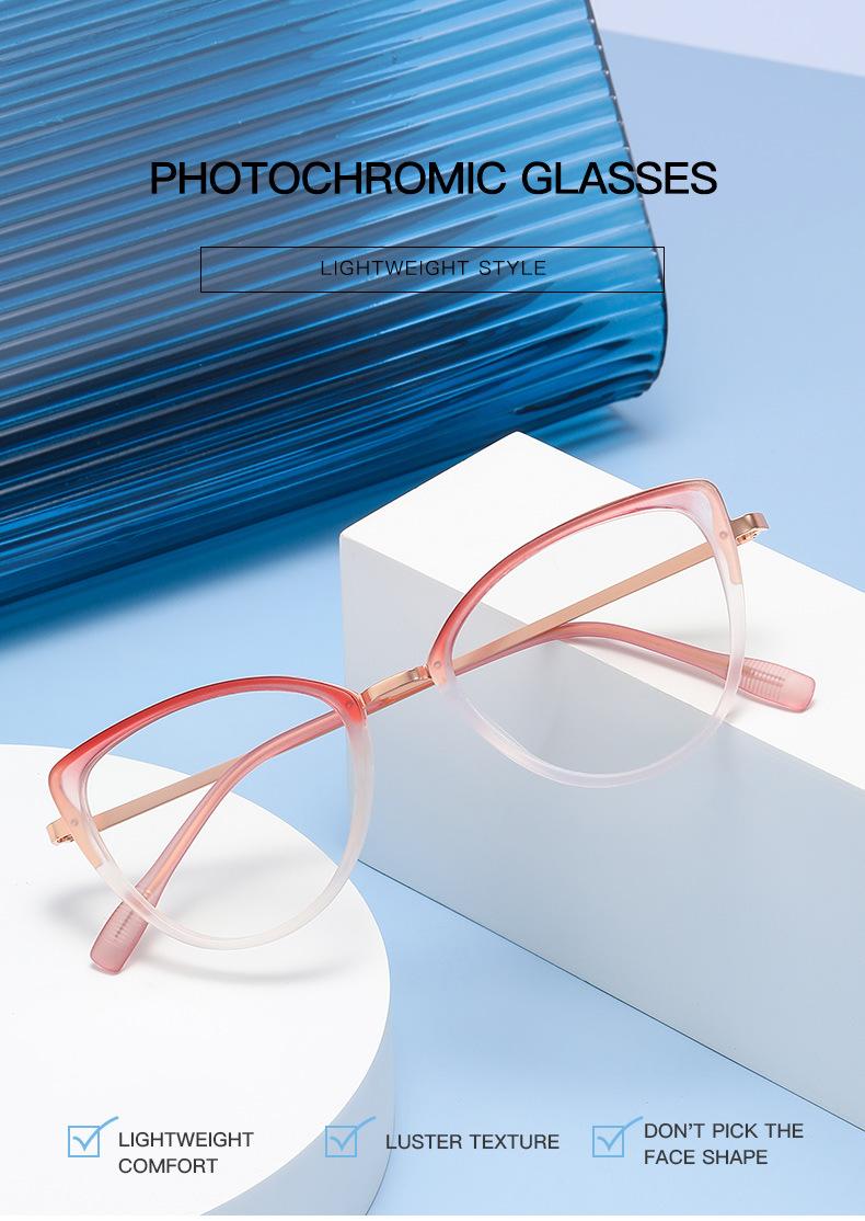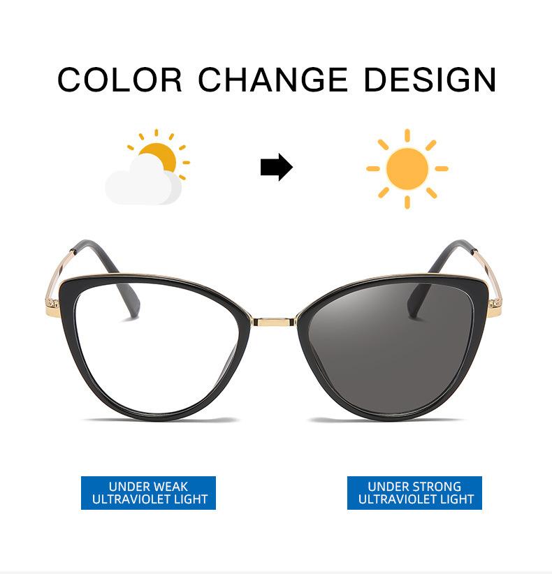 Montura de gafas de ojo de gato transfronterizas, montura de gafas de contraste de color de moda para mujer, gafas antiazules que cambian de color, gafas planas europeas y americanas