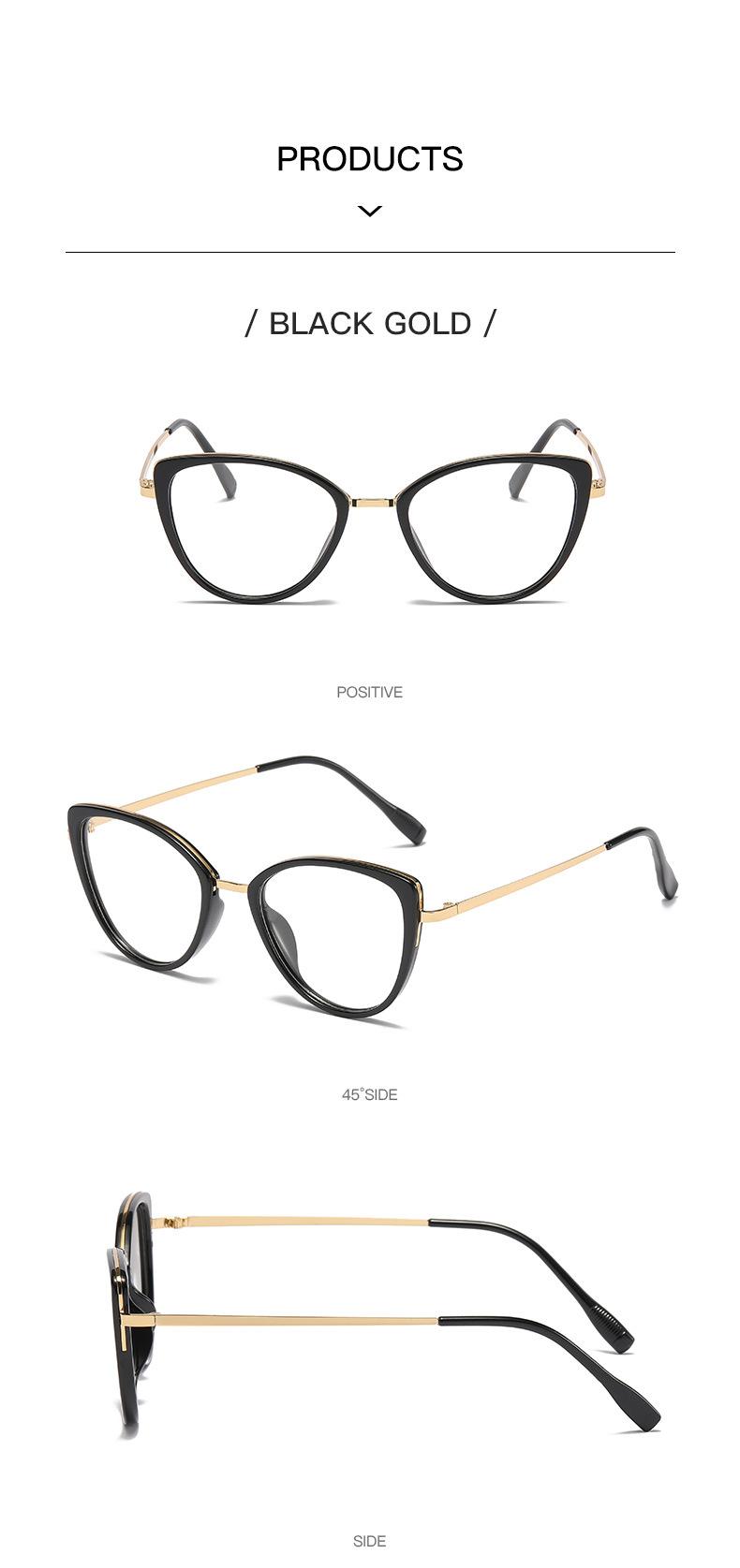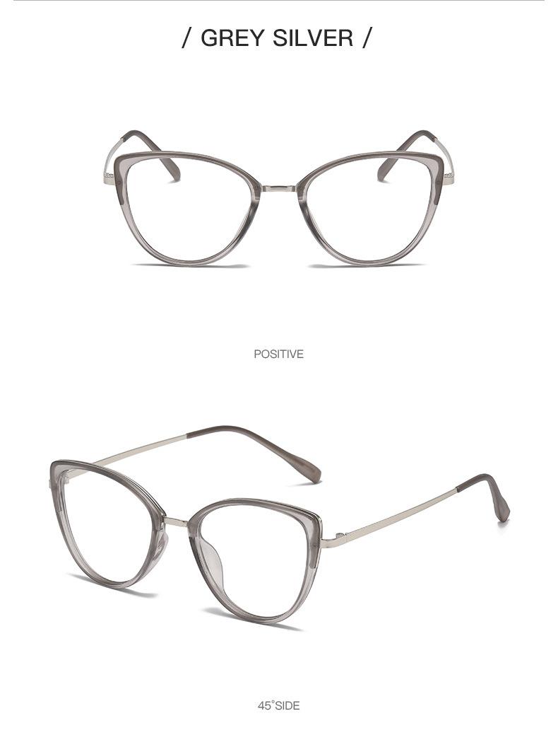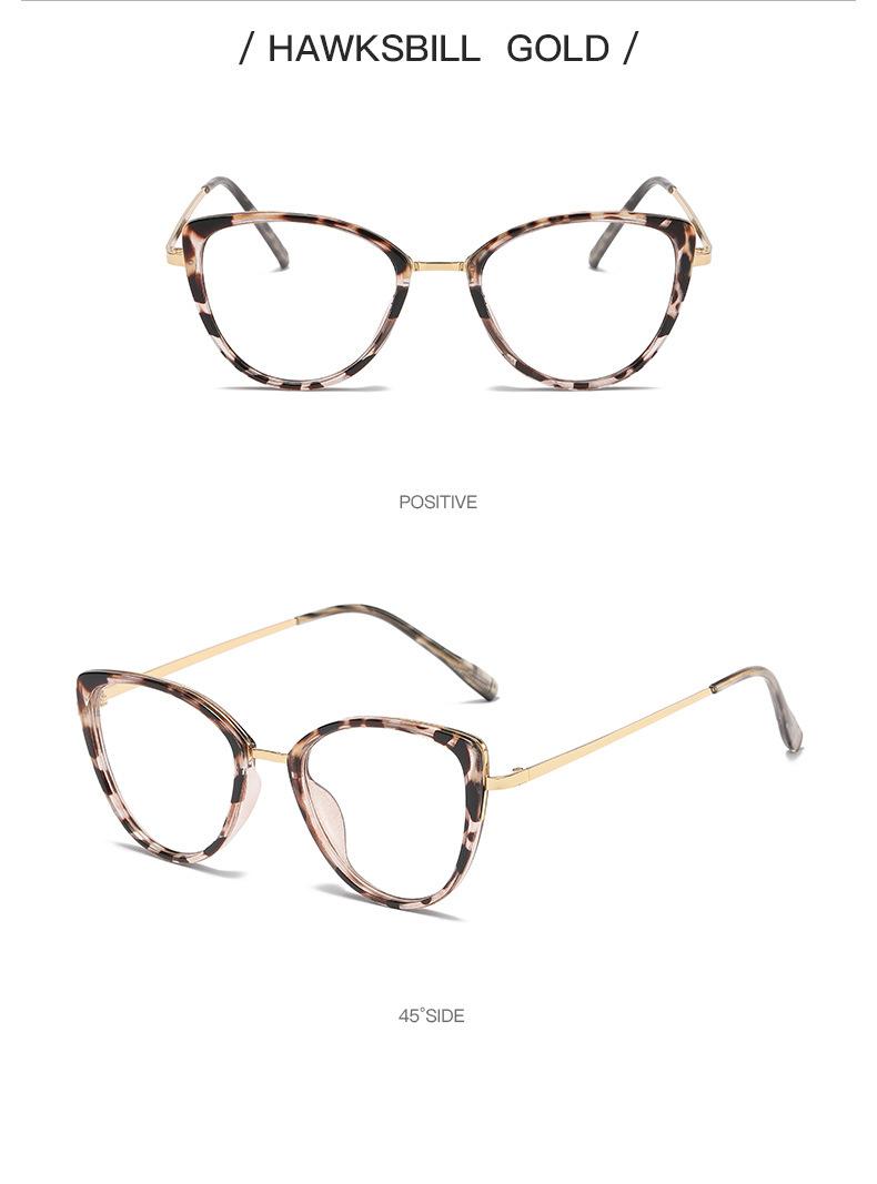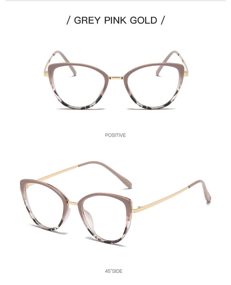 Montura de gafas de ojo de gato transfronterizas, montura de gafas de contraste de color de moda para mujer, gafas antiazules que cambian de color, gafas planas europeas y americanas