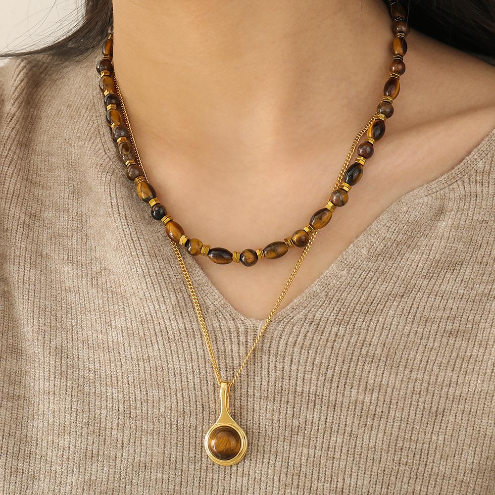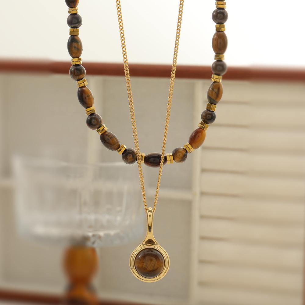 Tiger eye necklace [exquisite], Tiger eye stone pendant, Stacked necklace