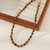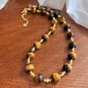Collar de cuentas de ojo de tigre Maillard retro europeo y americano, hecho a mano, ligero, de lujo, étnico, de alta gama, con cadena de clavícula de ámbar