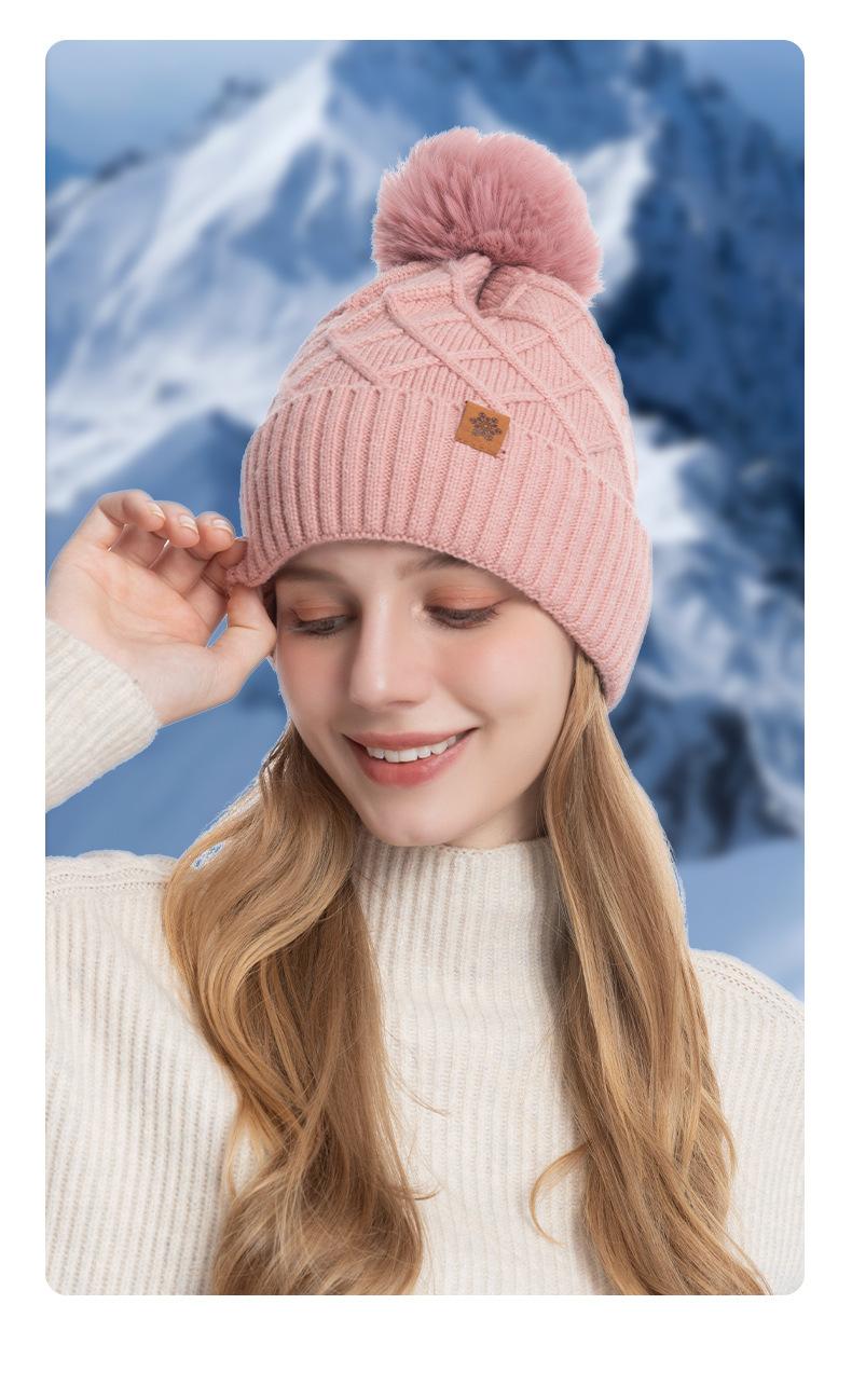 Gorro de Punto para Mujer en Invierno, Color Sólido, Cálido, Doble Capa, Forrado con Polar, Protección para las Orejas para Ciclismo al Aire Libre, Lana de Alpaca para Adulto