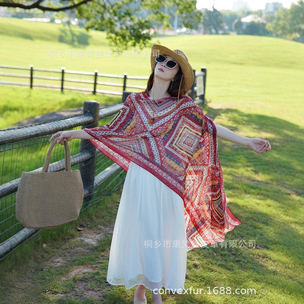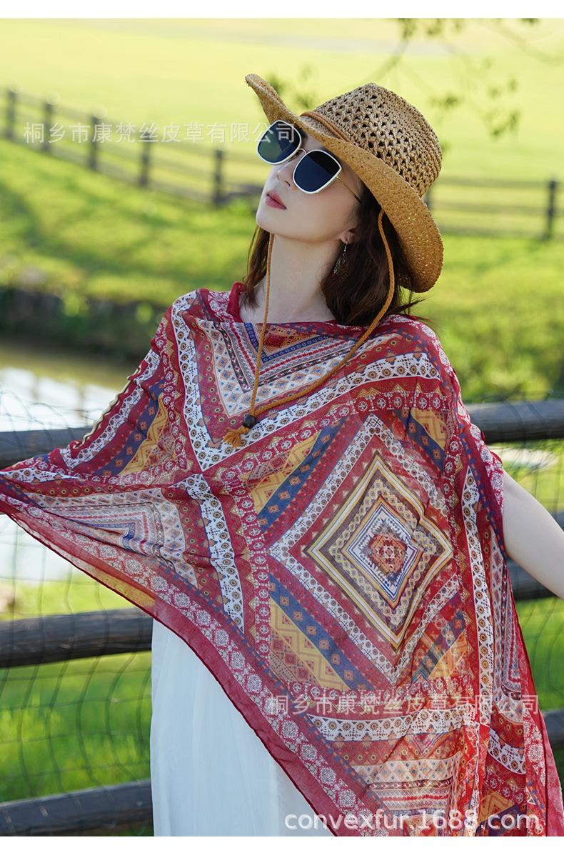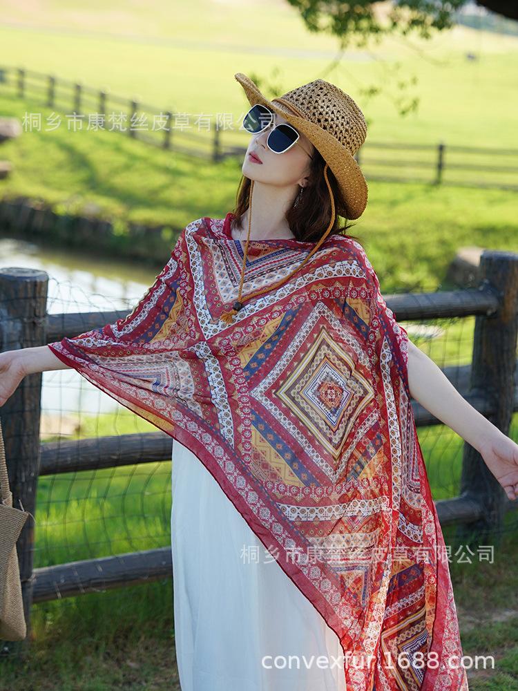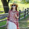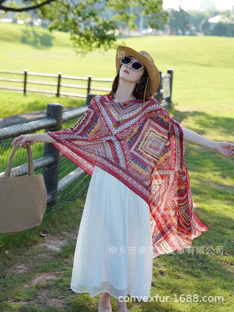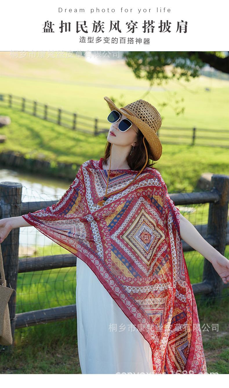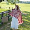 [Chal Gong Pei] Chal con hebilla de estilo étnico rojo para mujer, chal de viaje de alta gama.