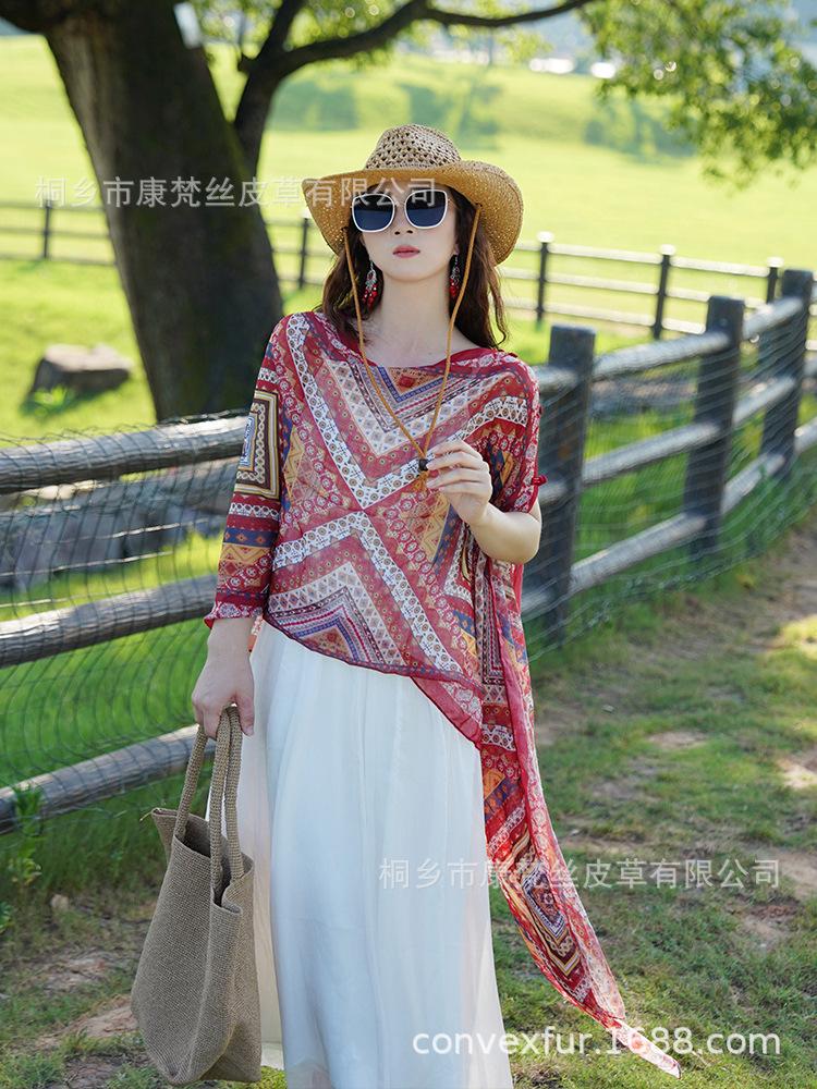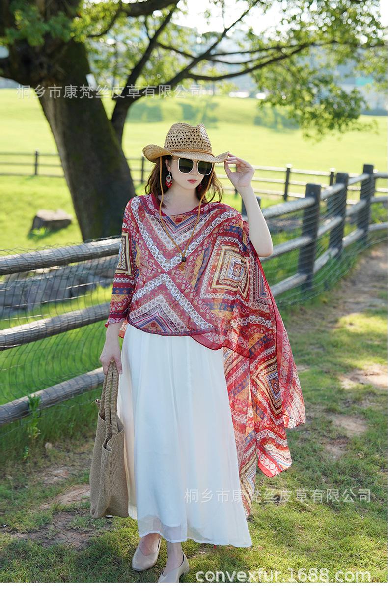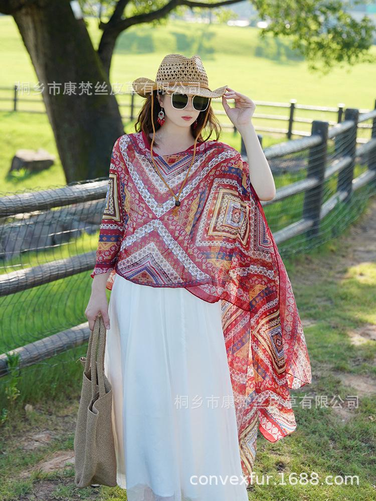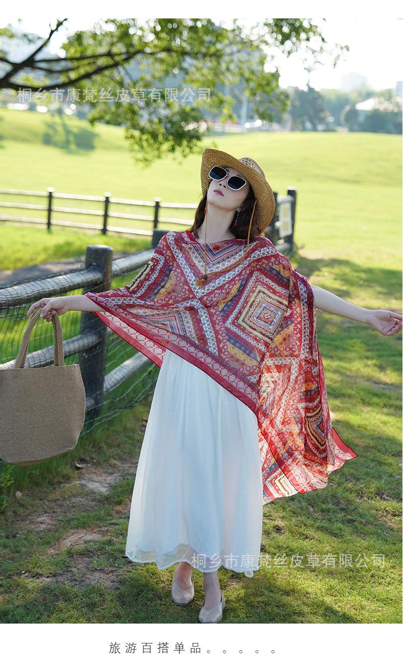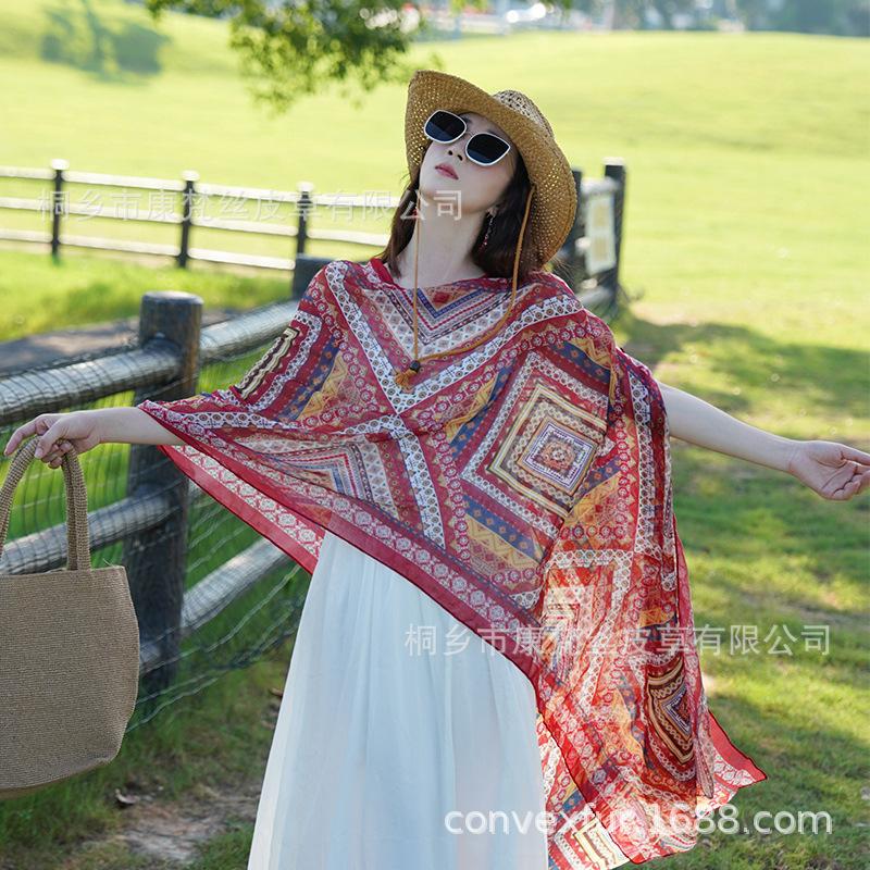 [Chal Gong Pei] Chal con hebilla de estilo étnico rojo para mujer, chal de viaje de alta gama.