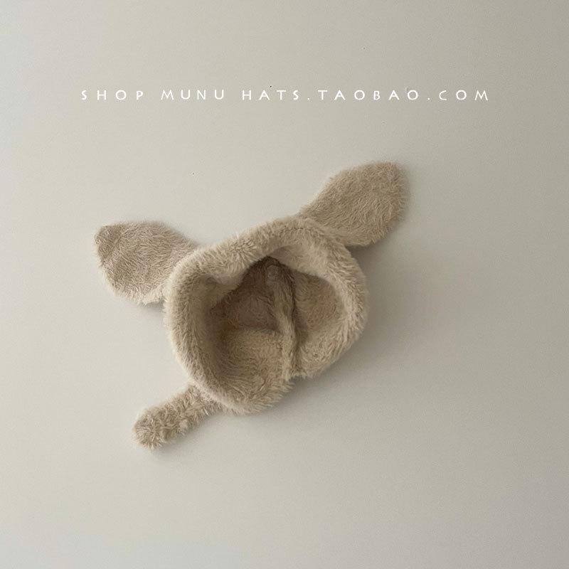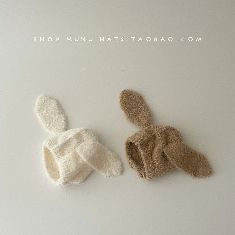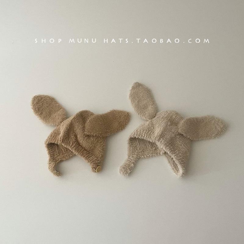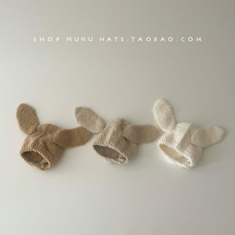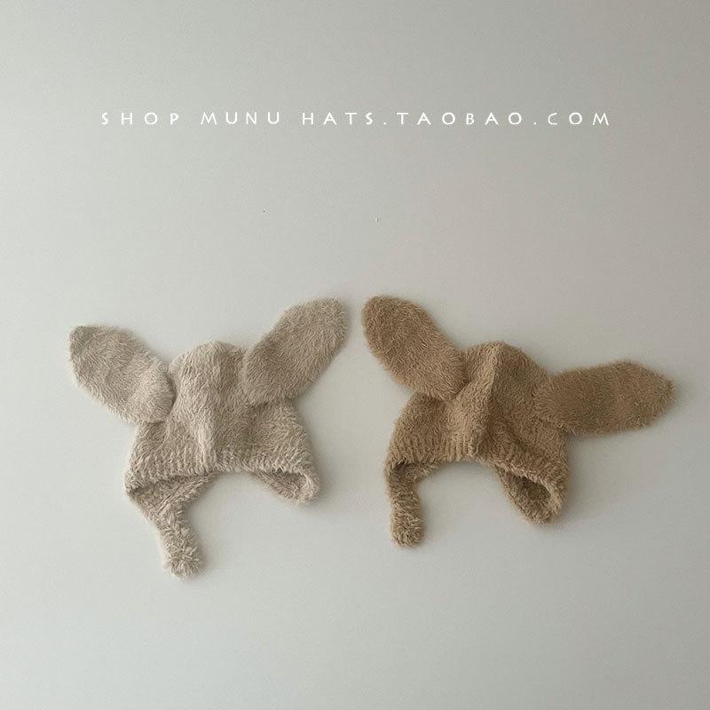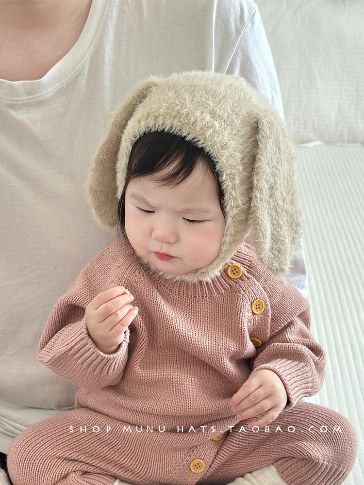 Gorro de lana para bebé, de otoño e invierno, con orejas de conejo de estilo coreano, de felpa, protector para los oídos, de punto grueso y cálido.