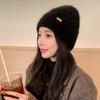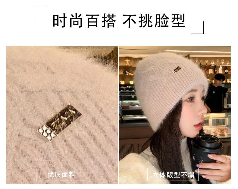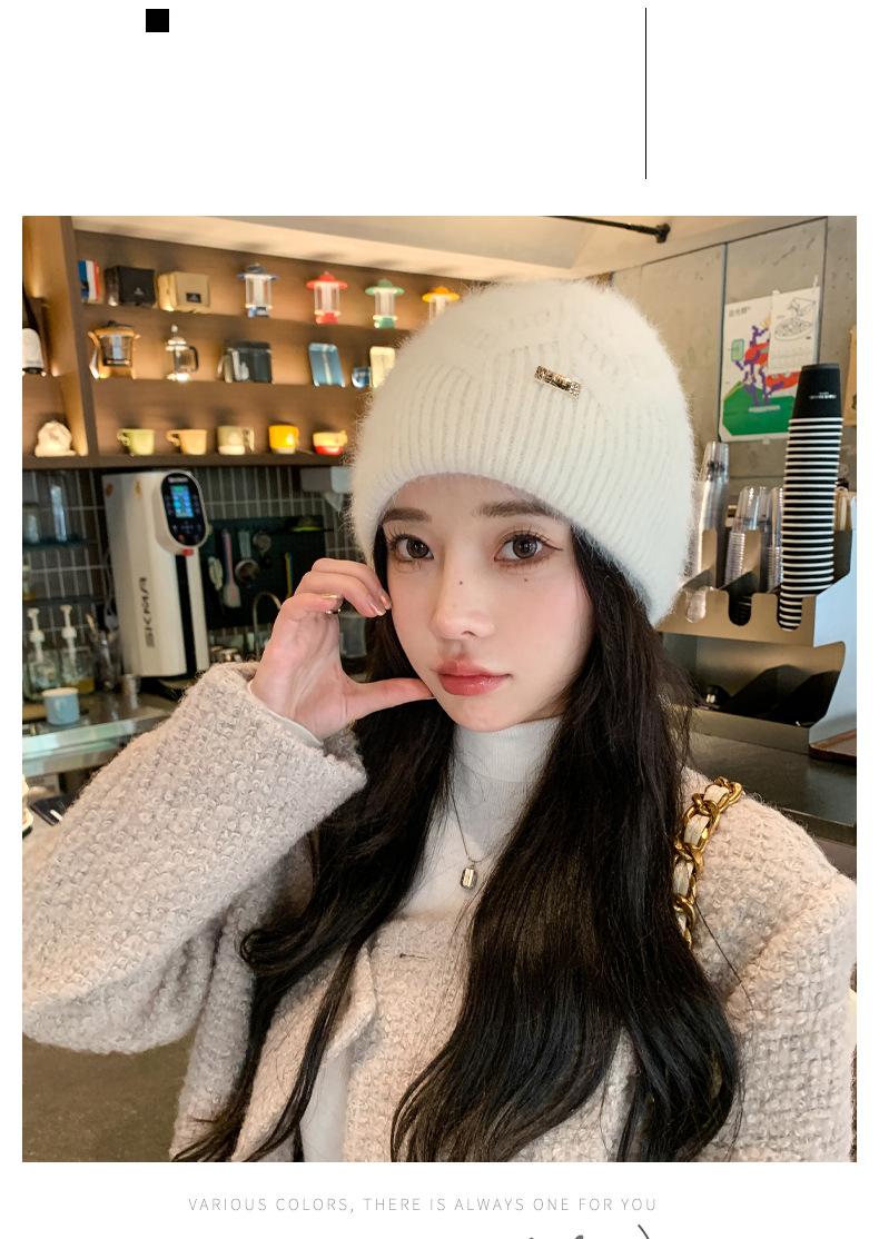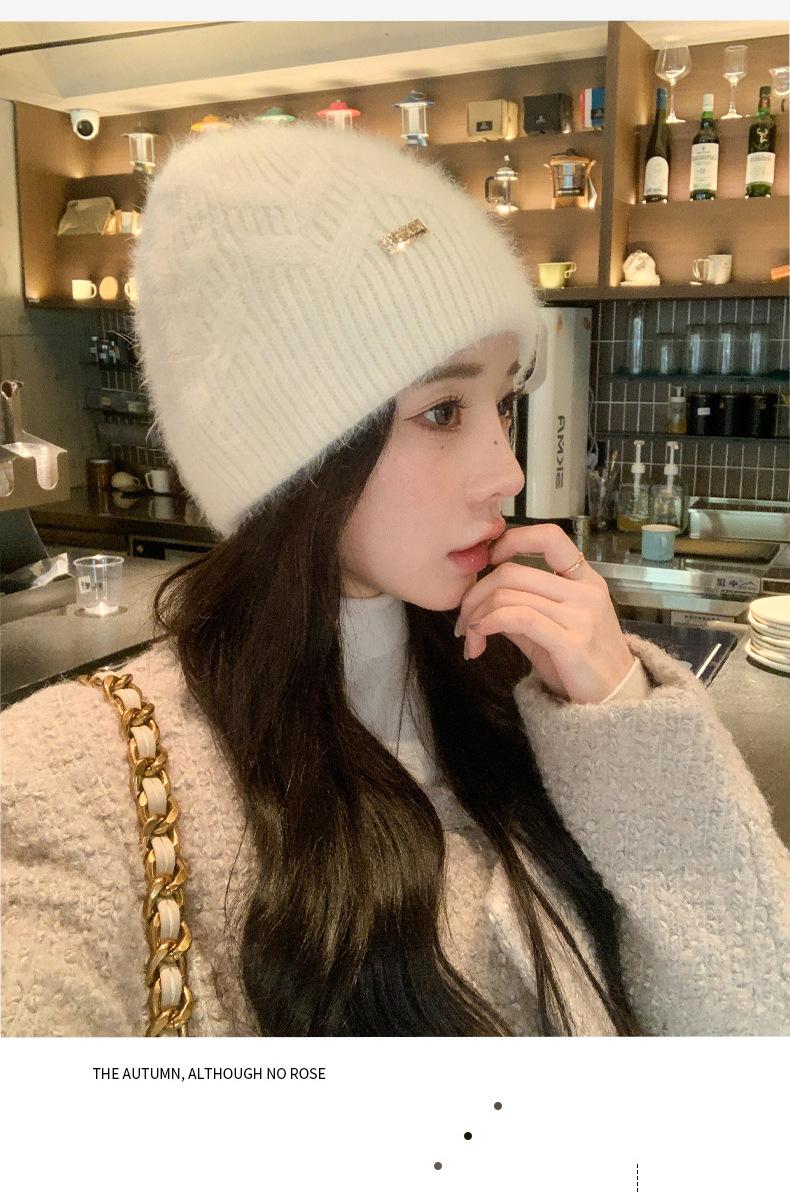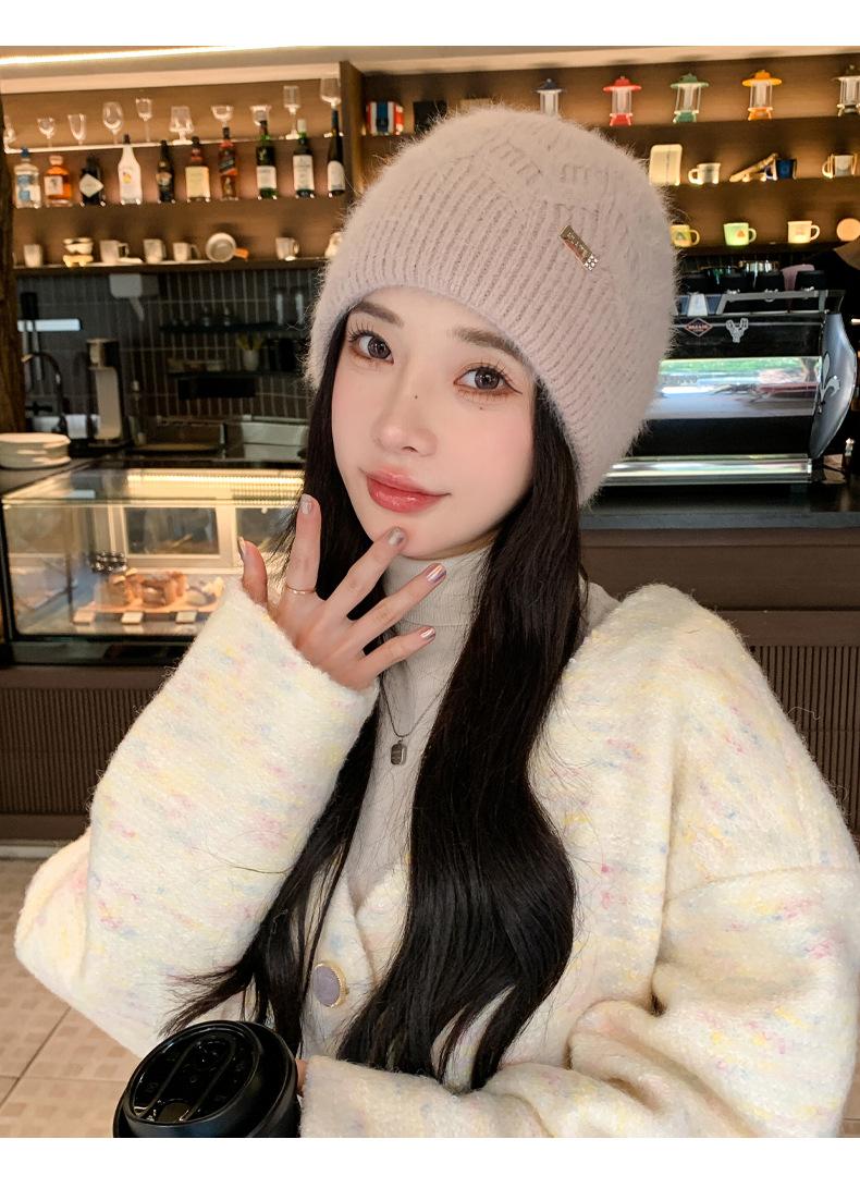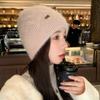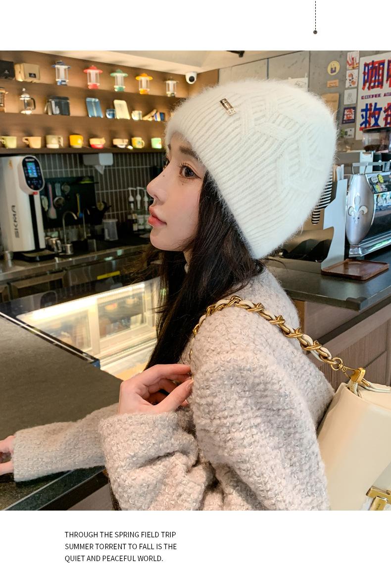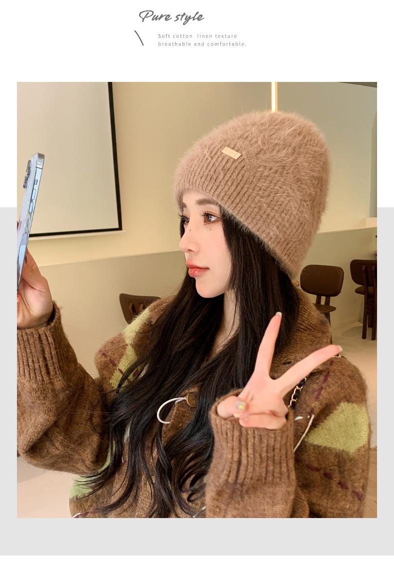 Sombrero nuevo de otoño e invierno versión coreana 2024 para mujer, color sólido, combinable con todo, sombrero de lana de punto de pelo de conejo, gorro de invierno cálido y grueso