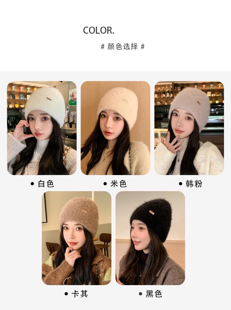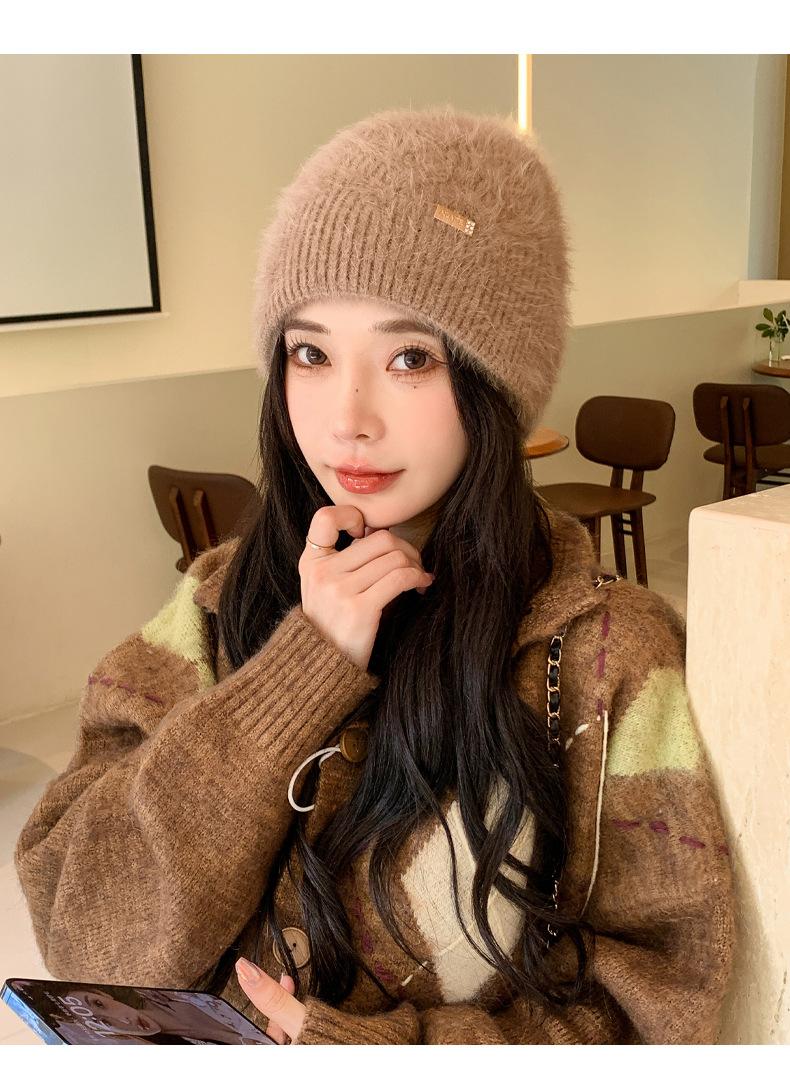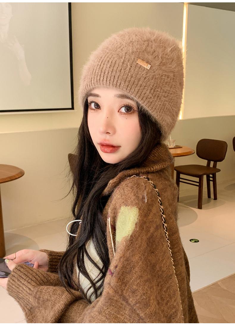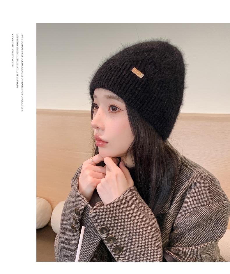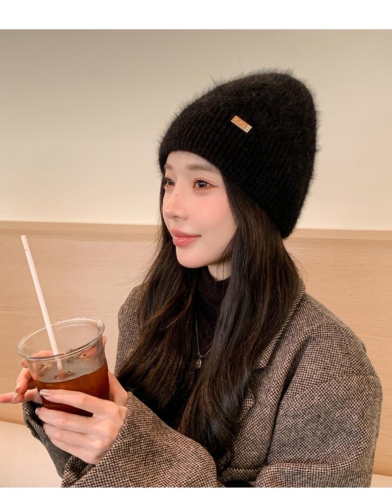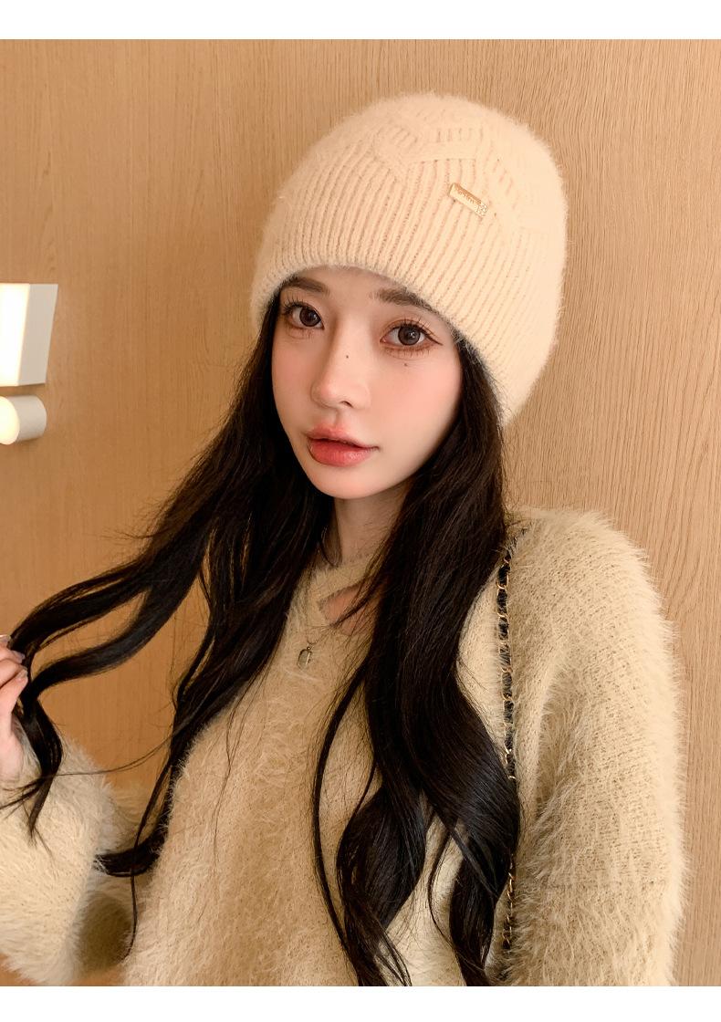 Sombrero nuevo de otoño e invierno versión coreana 2024 para mujer, color sólido, combinable con todo, sombrero de lana de punto de pelo de conejo, gorro de invierno cálido y grueso